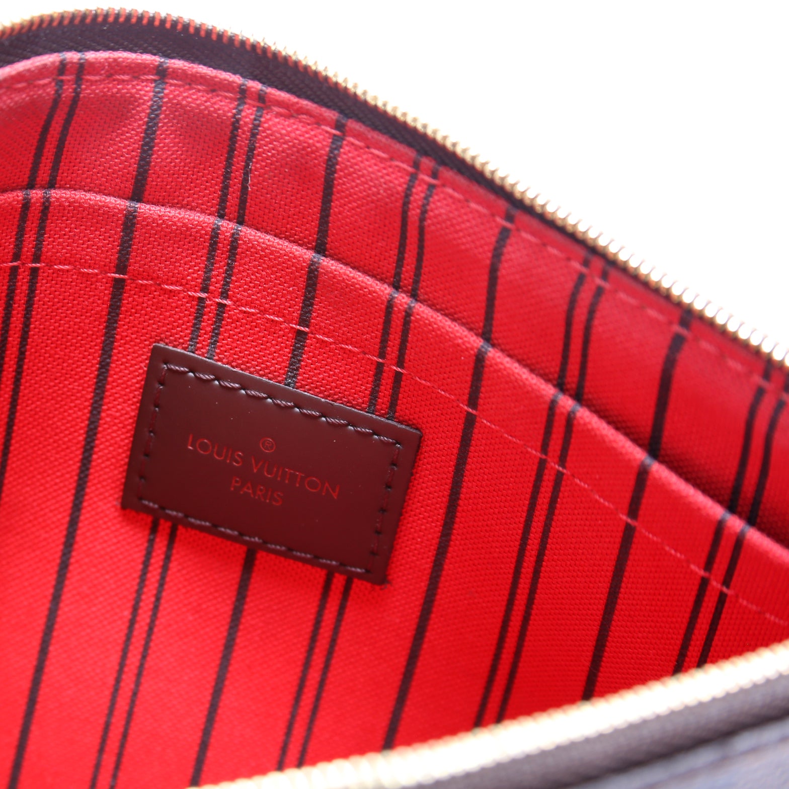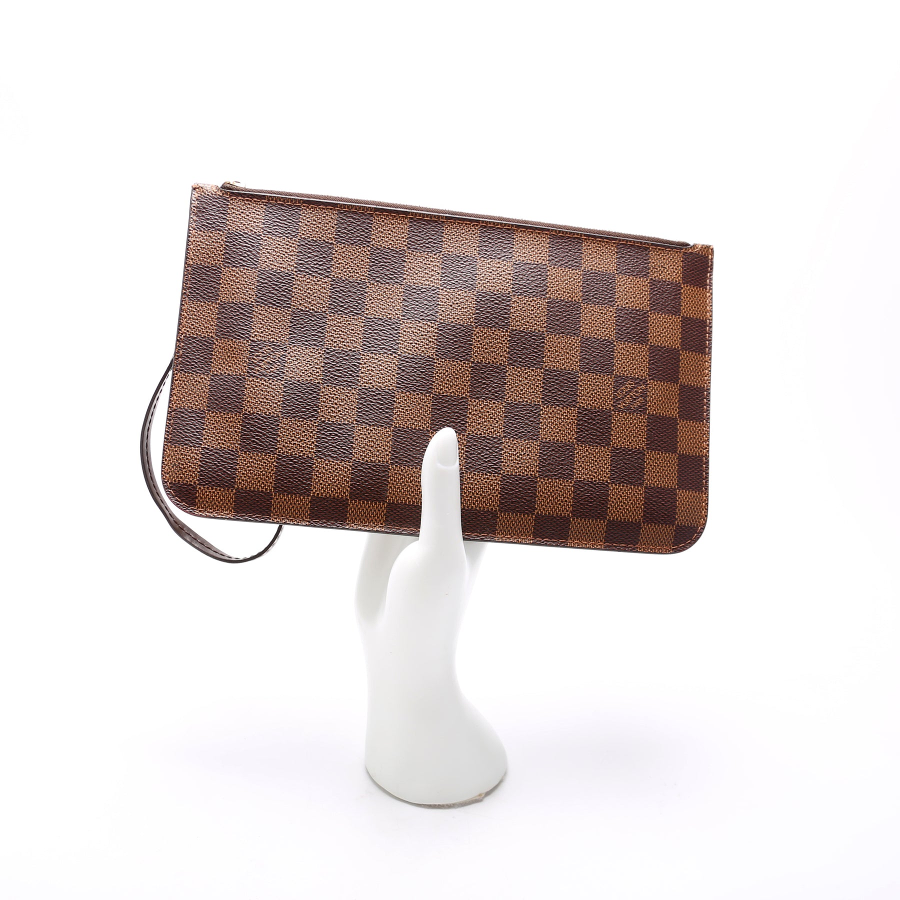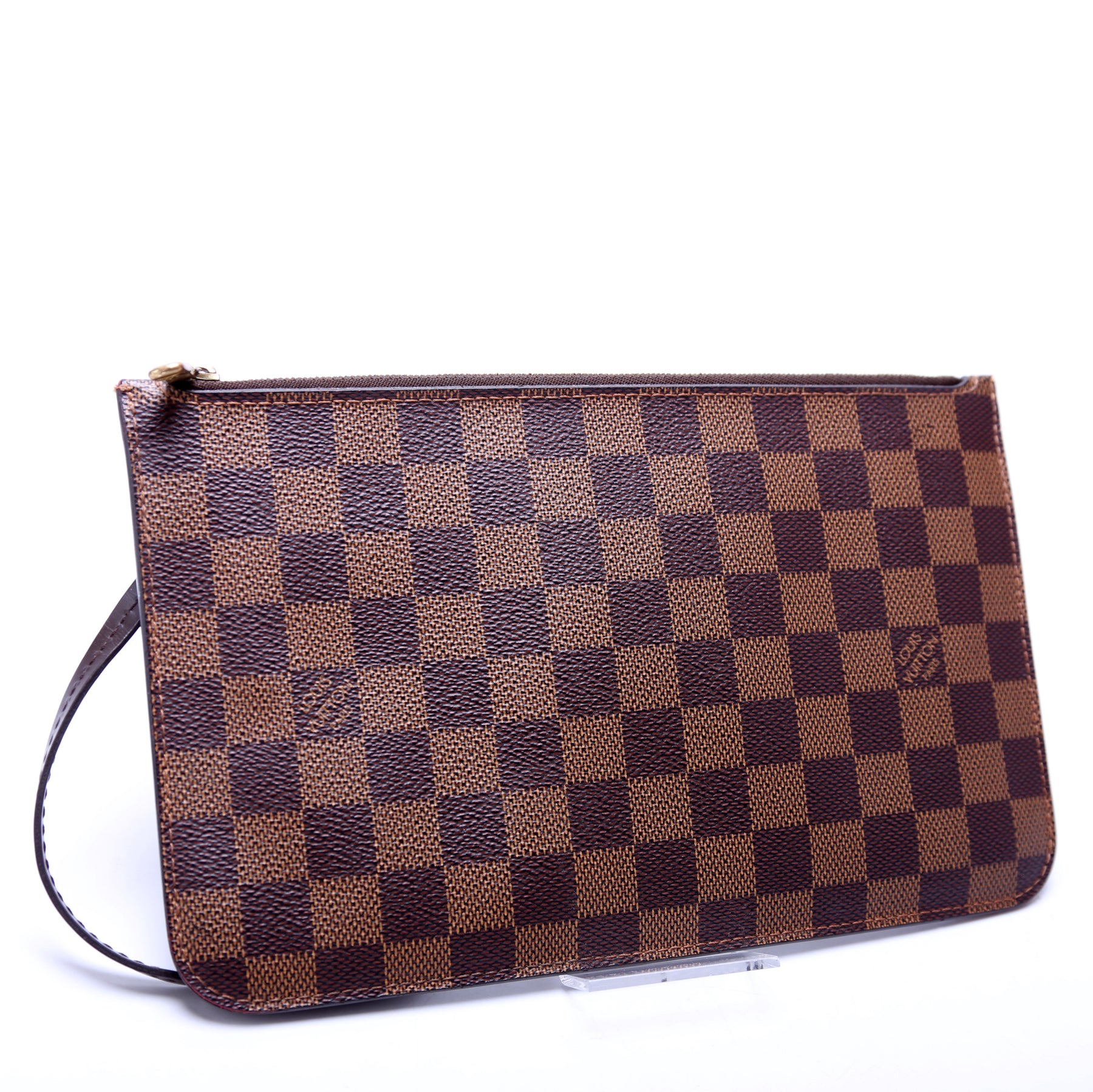 This pre-owned Louis Vuitton Pochette Only Neverfull is guaranteed 100% authentic. The exterior is in the classic Louis Vuitton Damier Ebene coated canvas.