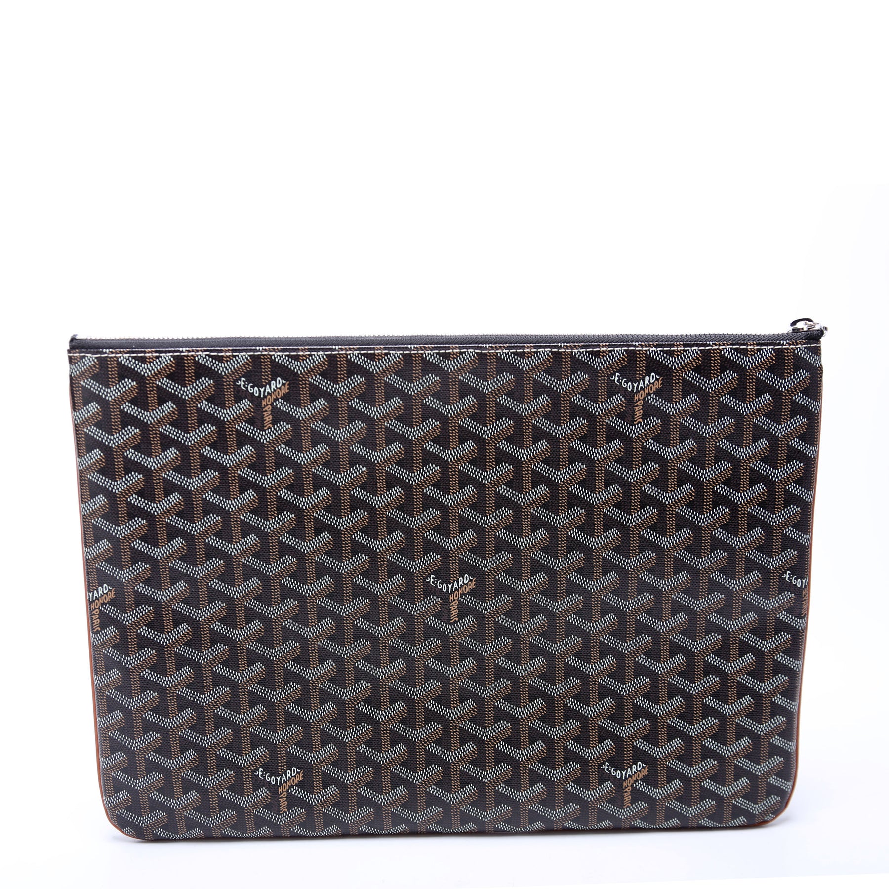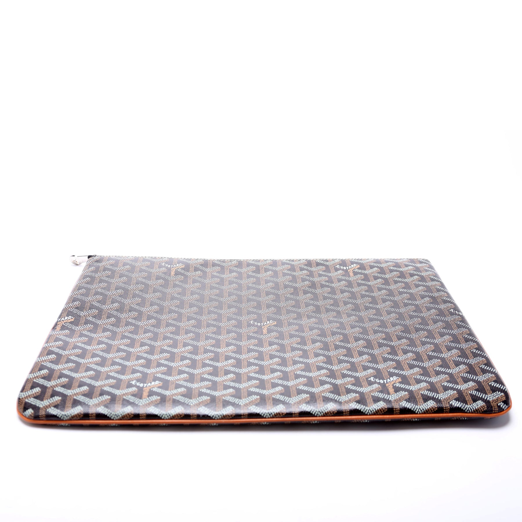 This pre-owned Goyard Senat Pouch MGM is guaranteed 100% authentic. The exterior is in the classic Goyard Goyardine coated canvas.