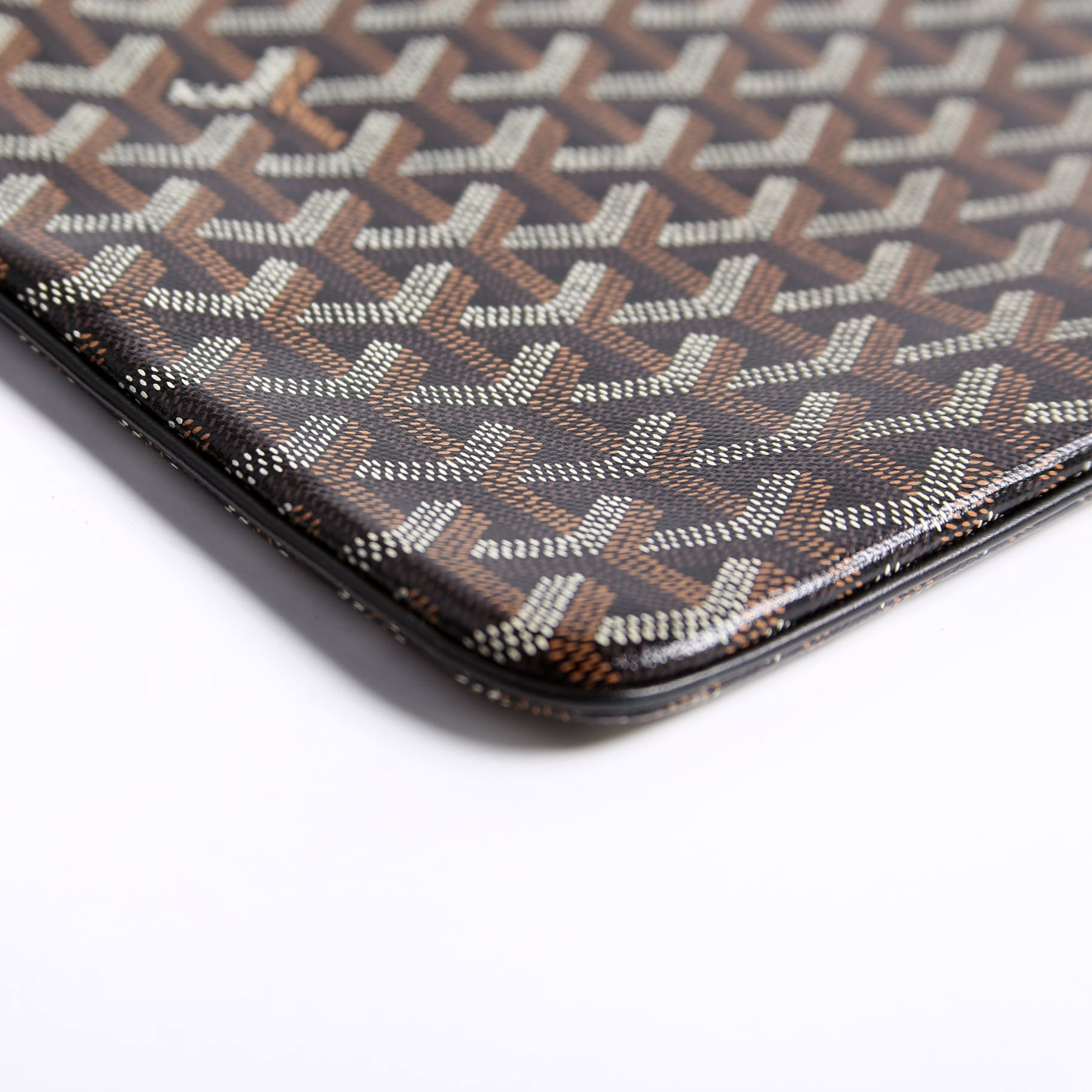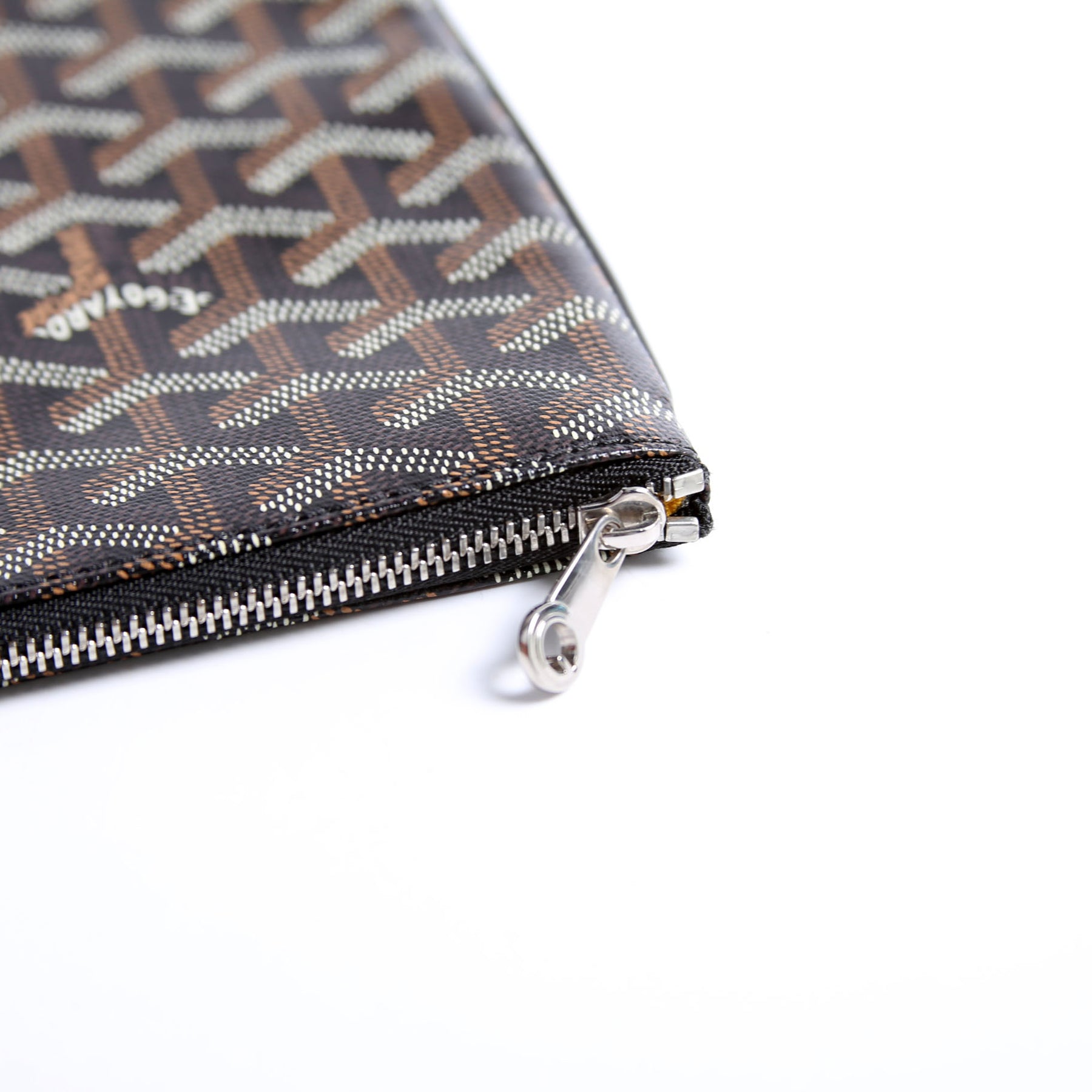This pre-owned Goyard Senat Pouch MM is guaranteed 100% authentic. The exterior is in the classic Goyard Goyardine coated canvas.