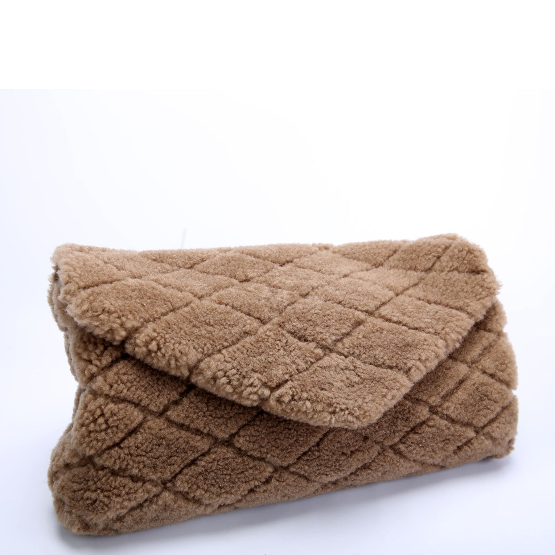 Shearling Sade Puffer Envelope Clutch 655004 Brown