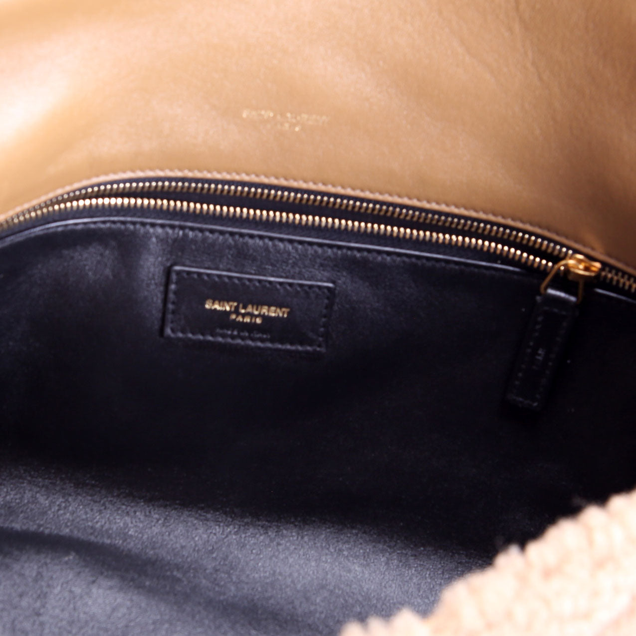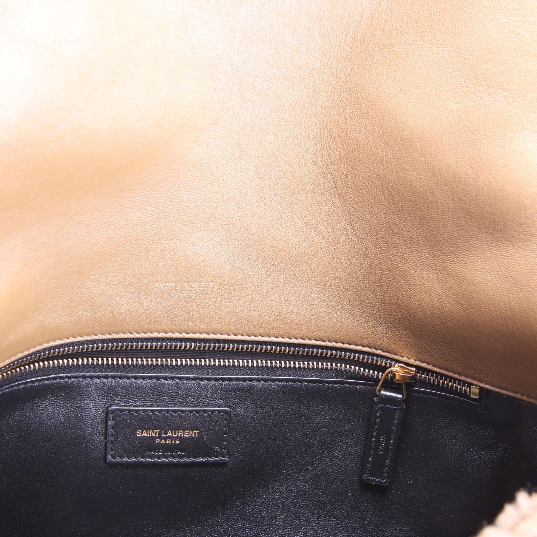 This pre-owned Saint Laurent Shearling Sade Puffer Envelope Clutch is guaranteed 100% authentic.