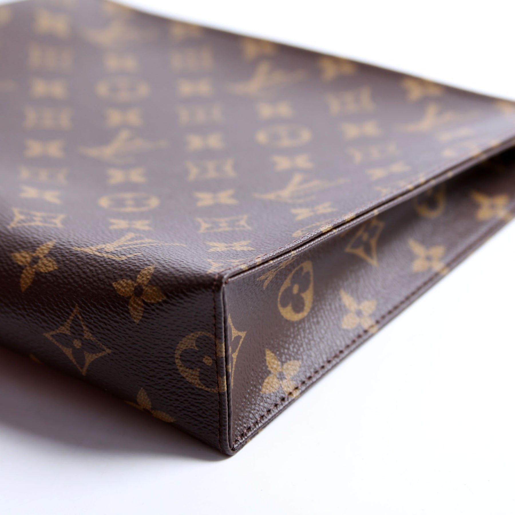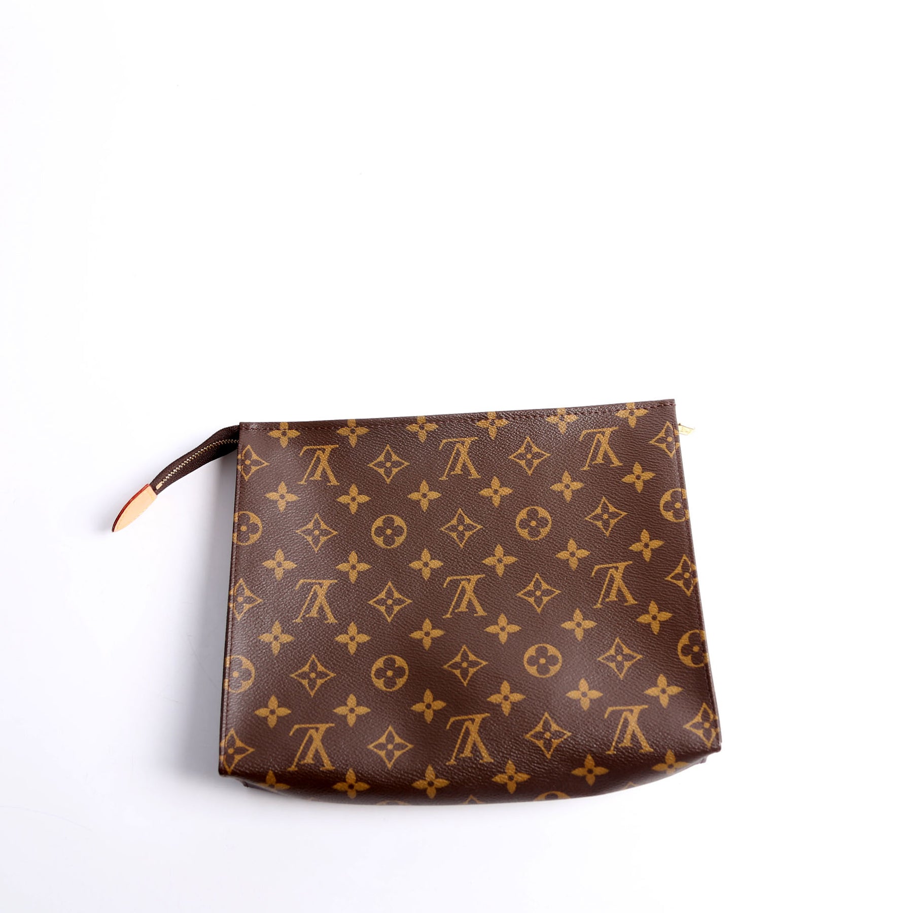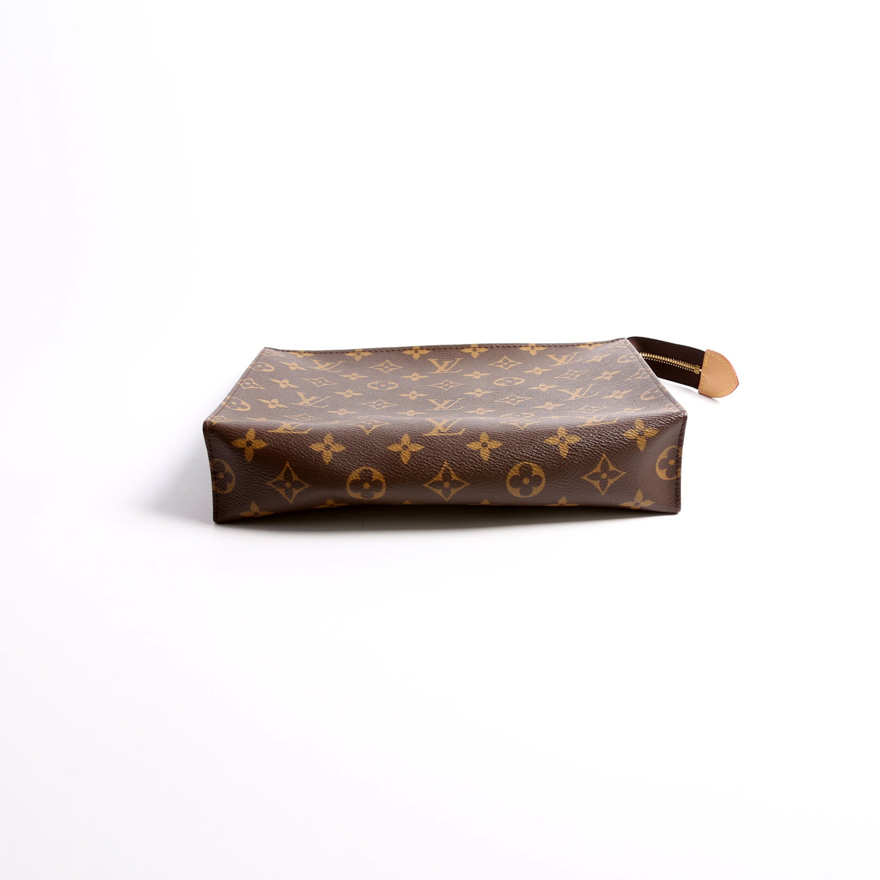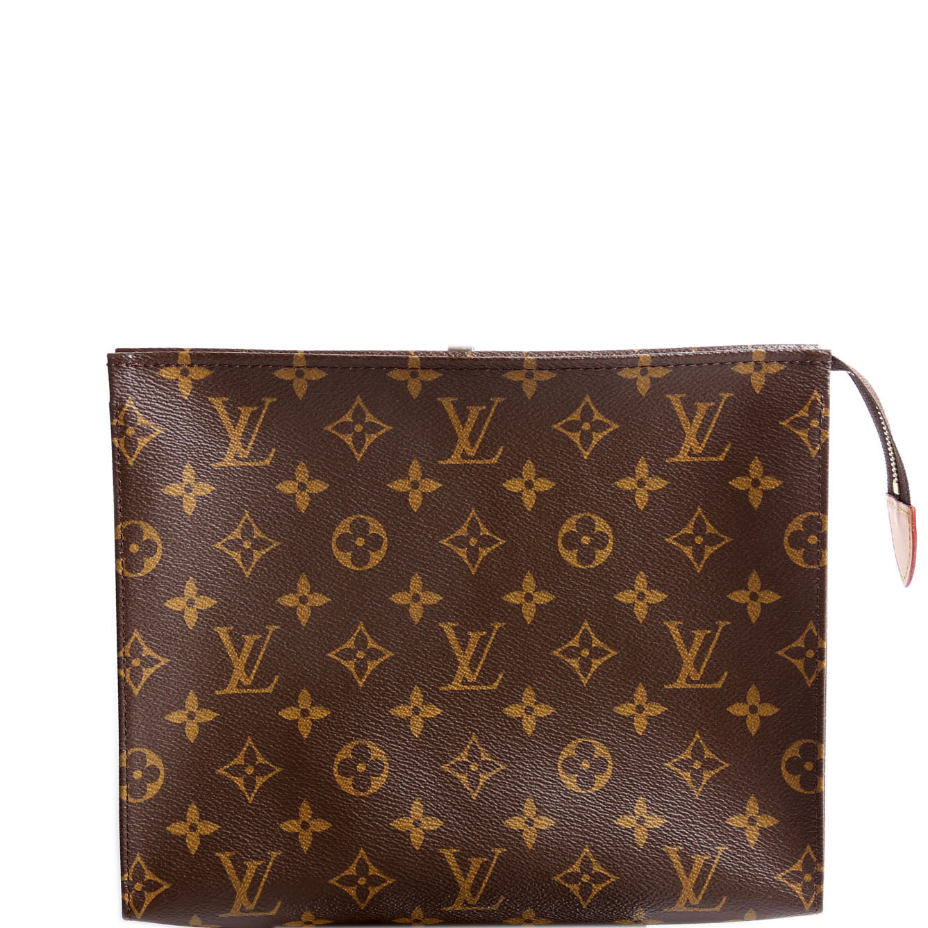 This pre-owned Louis Vuitton Toiletry Pouch 26 Newer is guaranteed 100% authentic. The exterior is in the classic Monogram coated canvas.