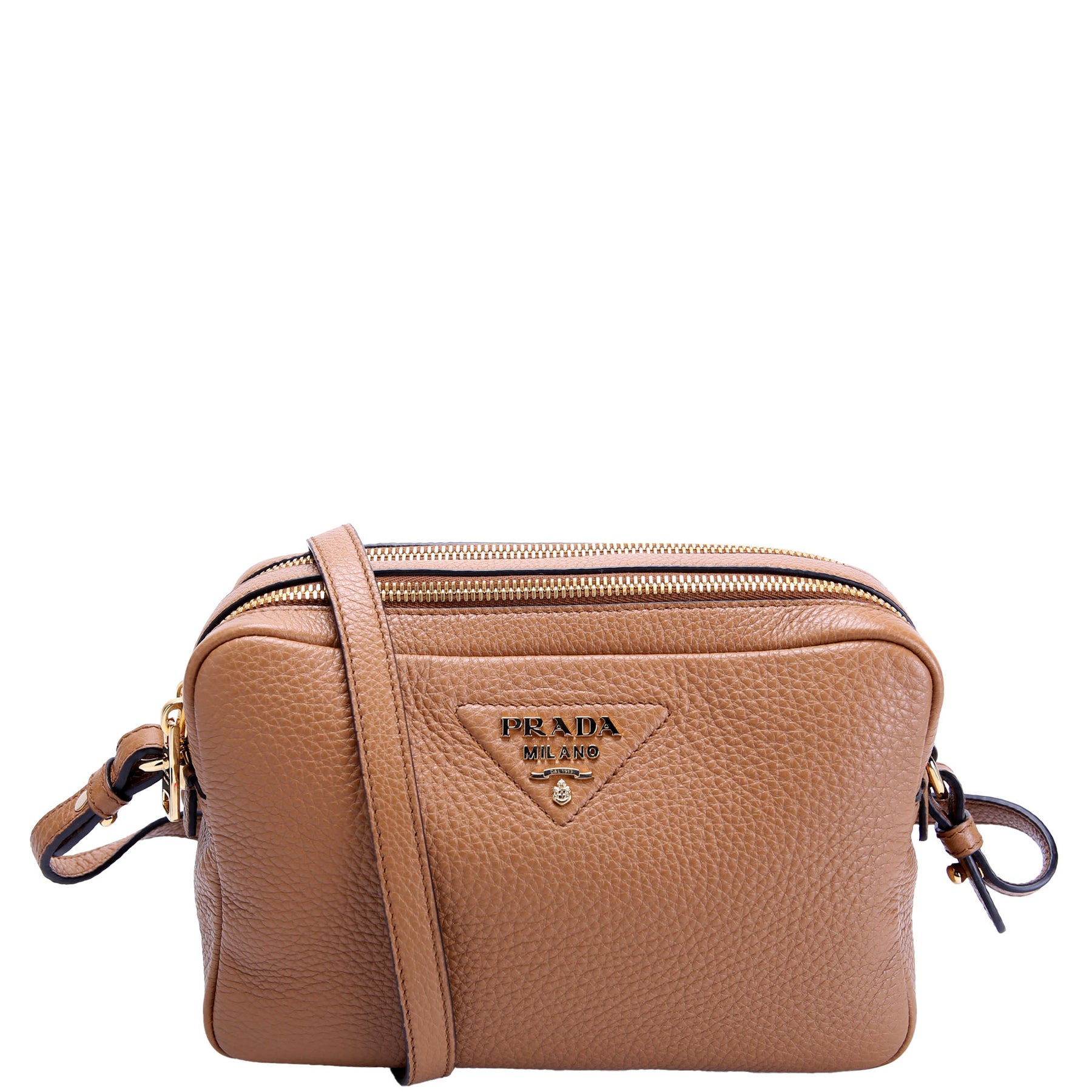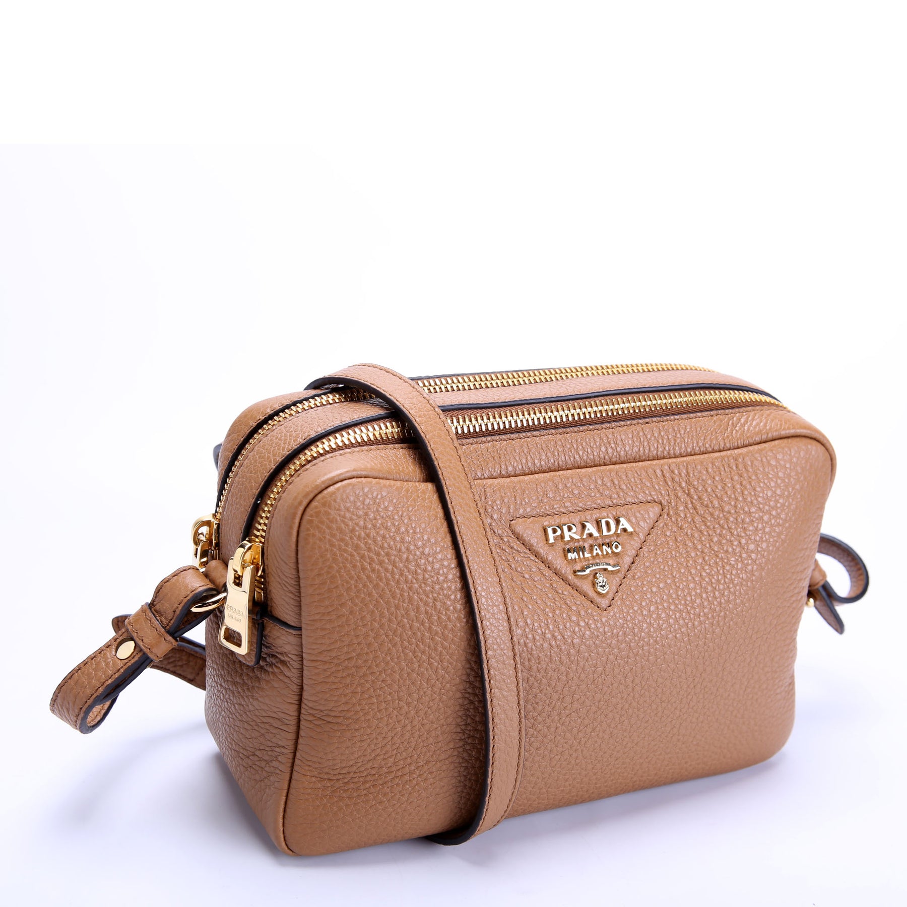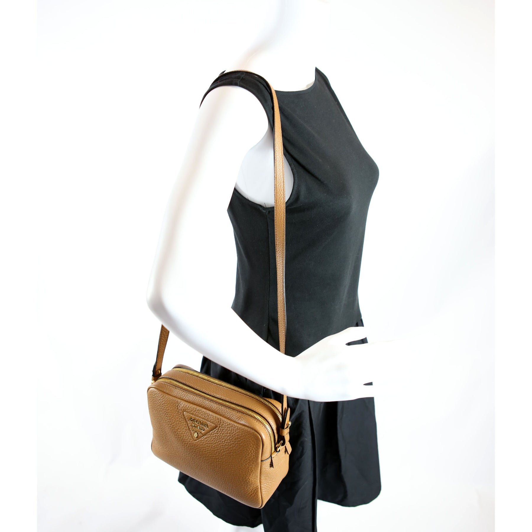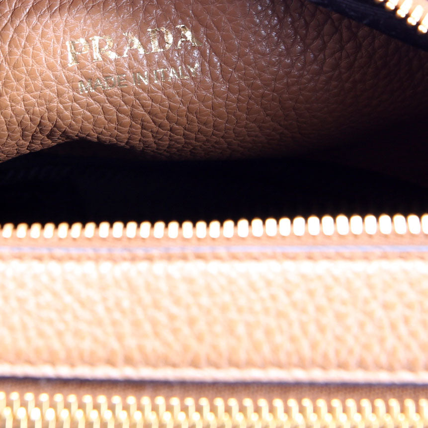 This pre-owned Prada Double Zip Small Shoulder Bag is guaranteed 100% authentic. The exterior is in the classic Prada Saffiano Leather.