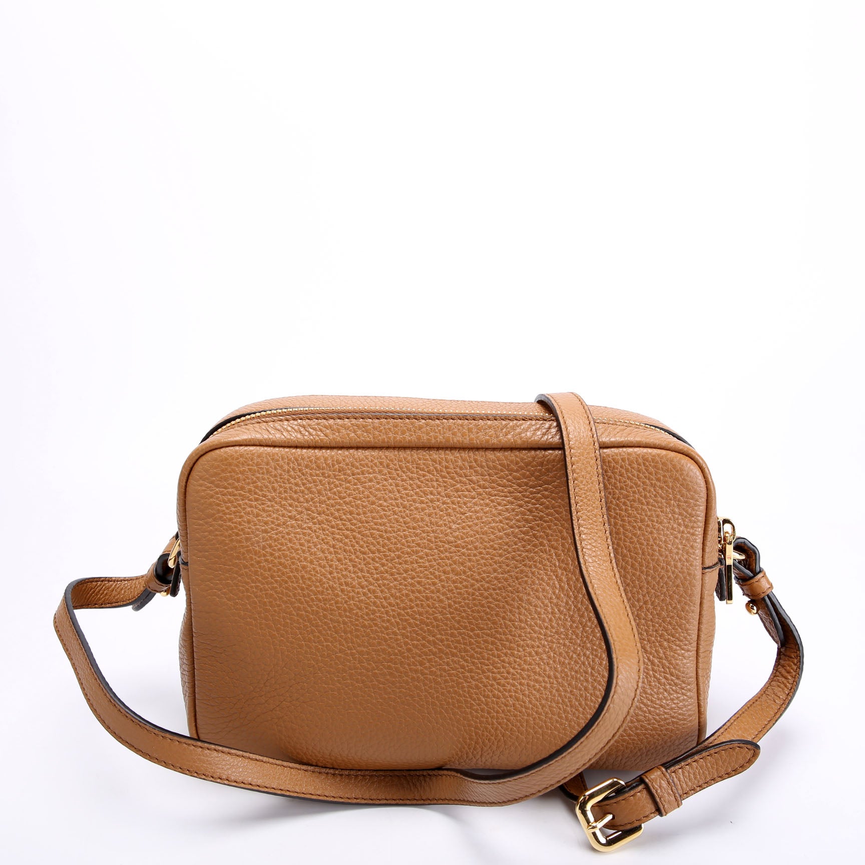 1BH082 Double Zip Small Shoulder Bag Brown