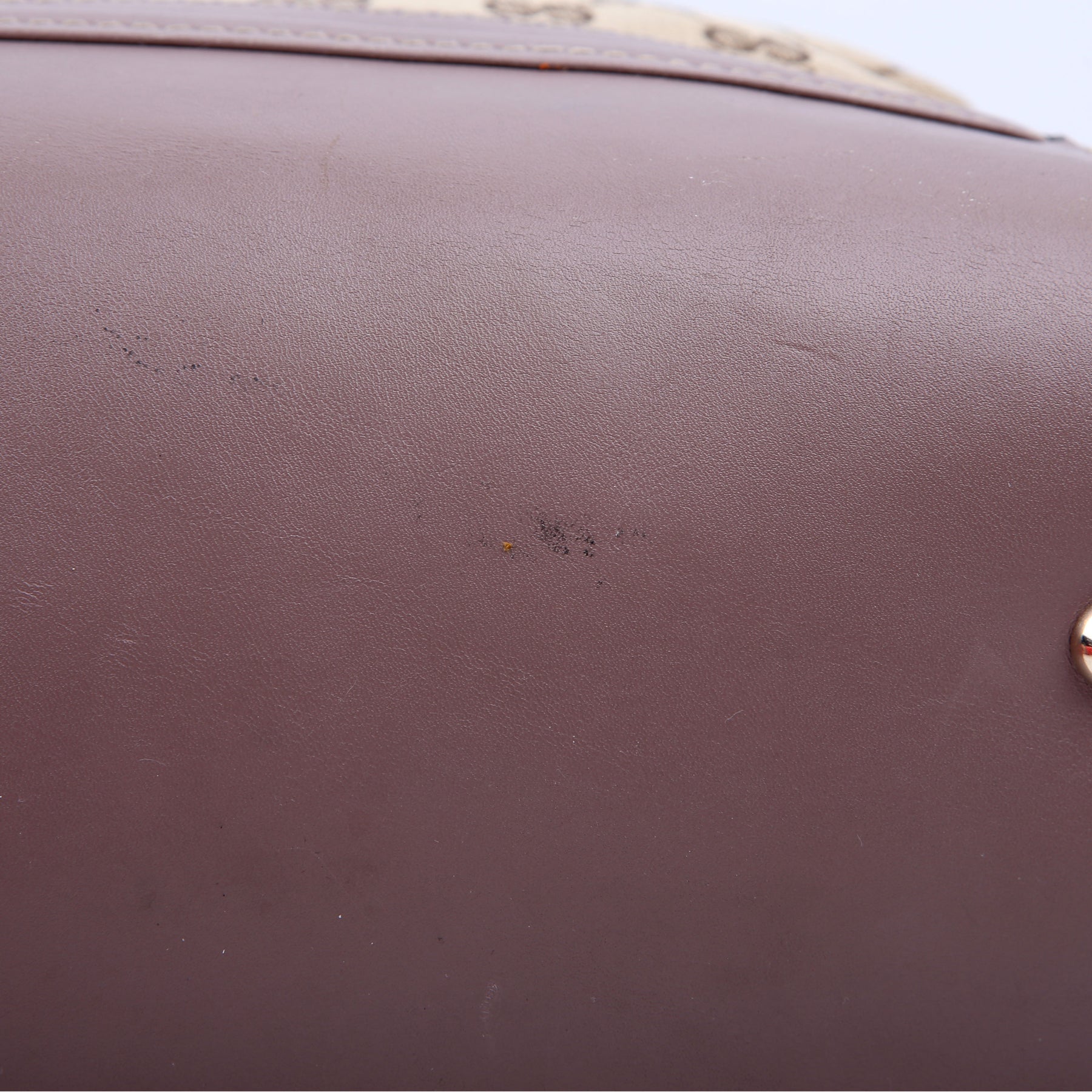 Exterior: The exterior leather trim has minor marks and signs of wear throughout. The corners and edges show minor rubbing.