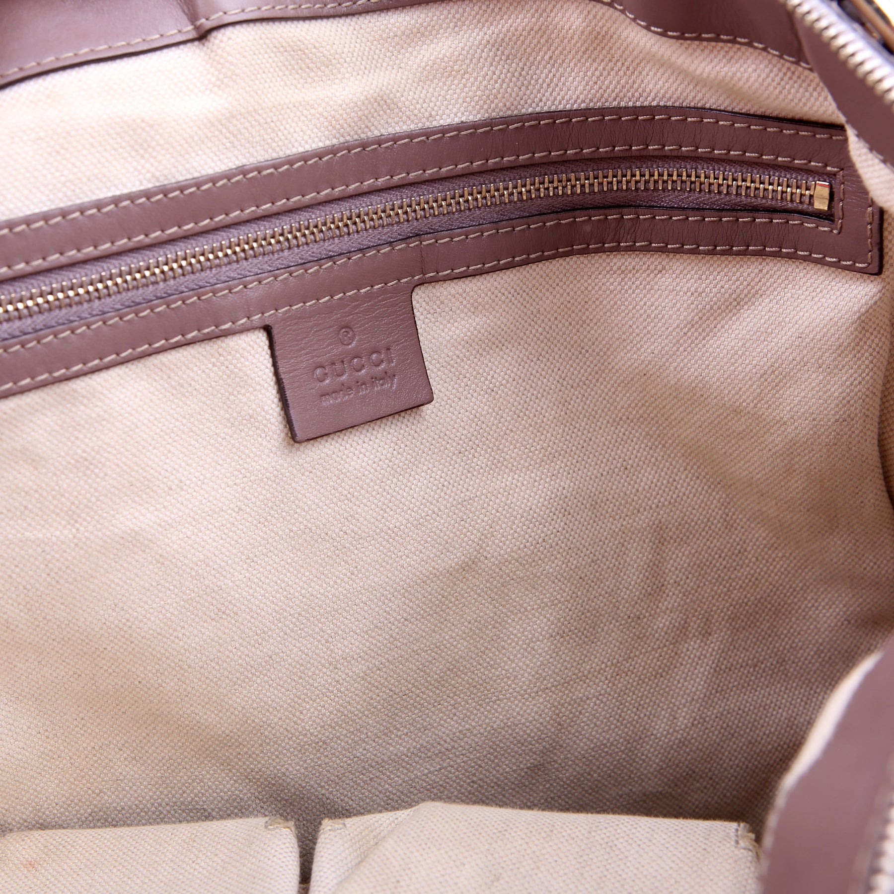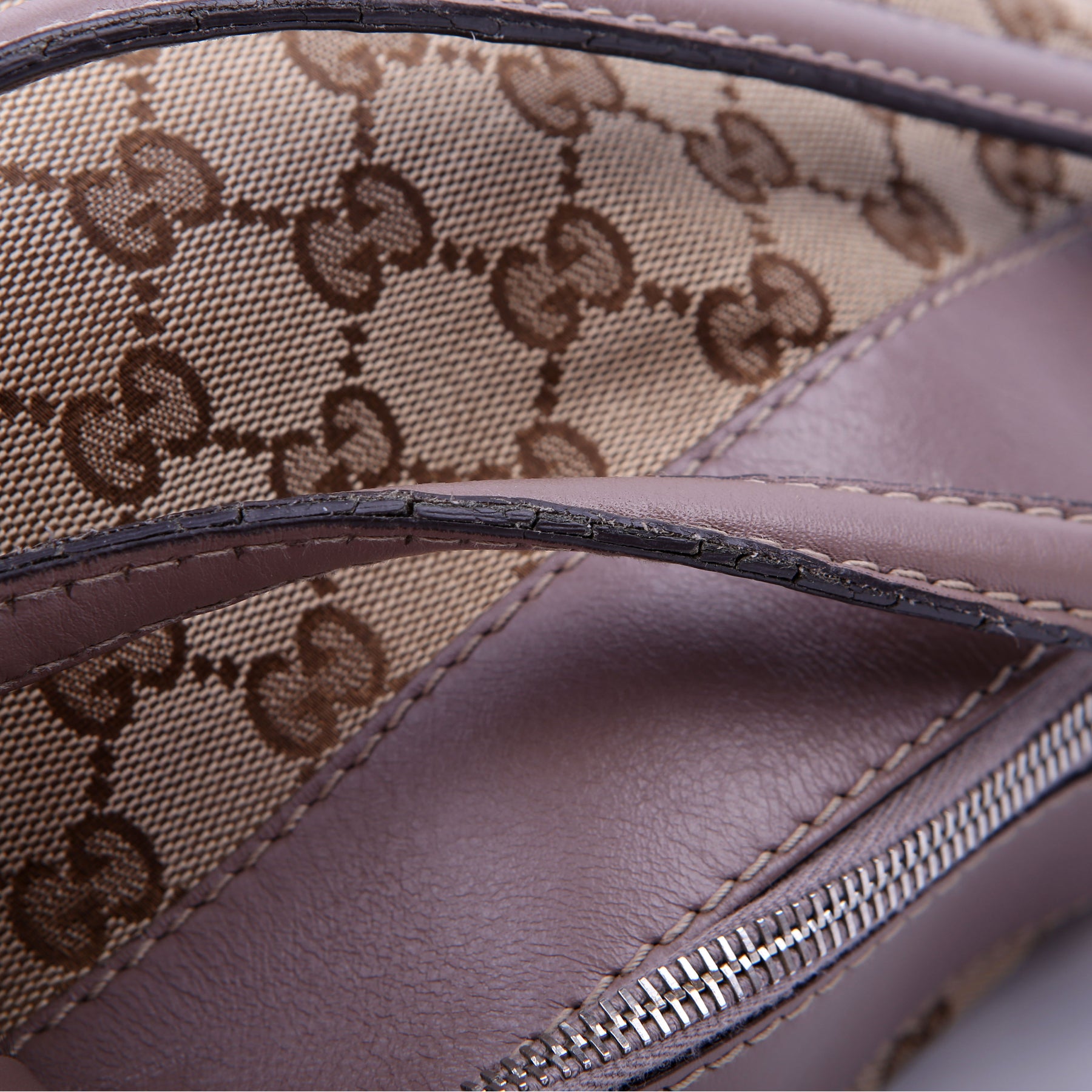 Hardware: The zipper operates properly. The leather zipper pulls show minor wear.