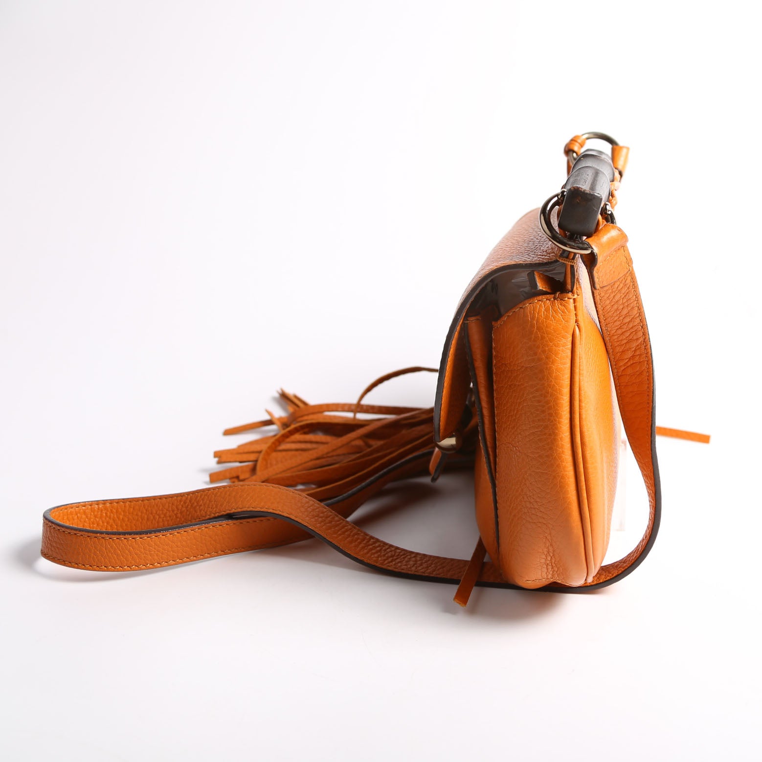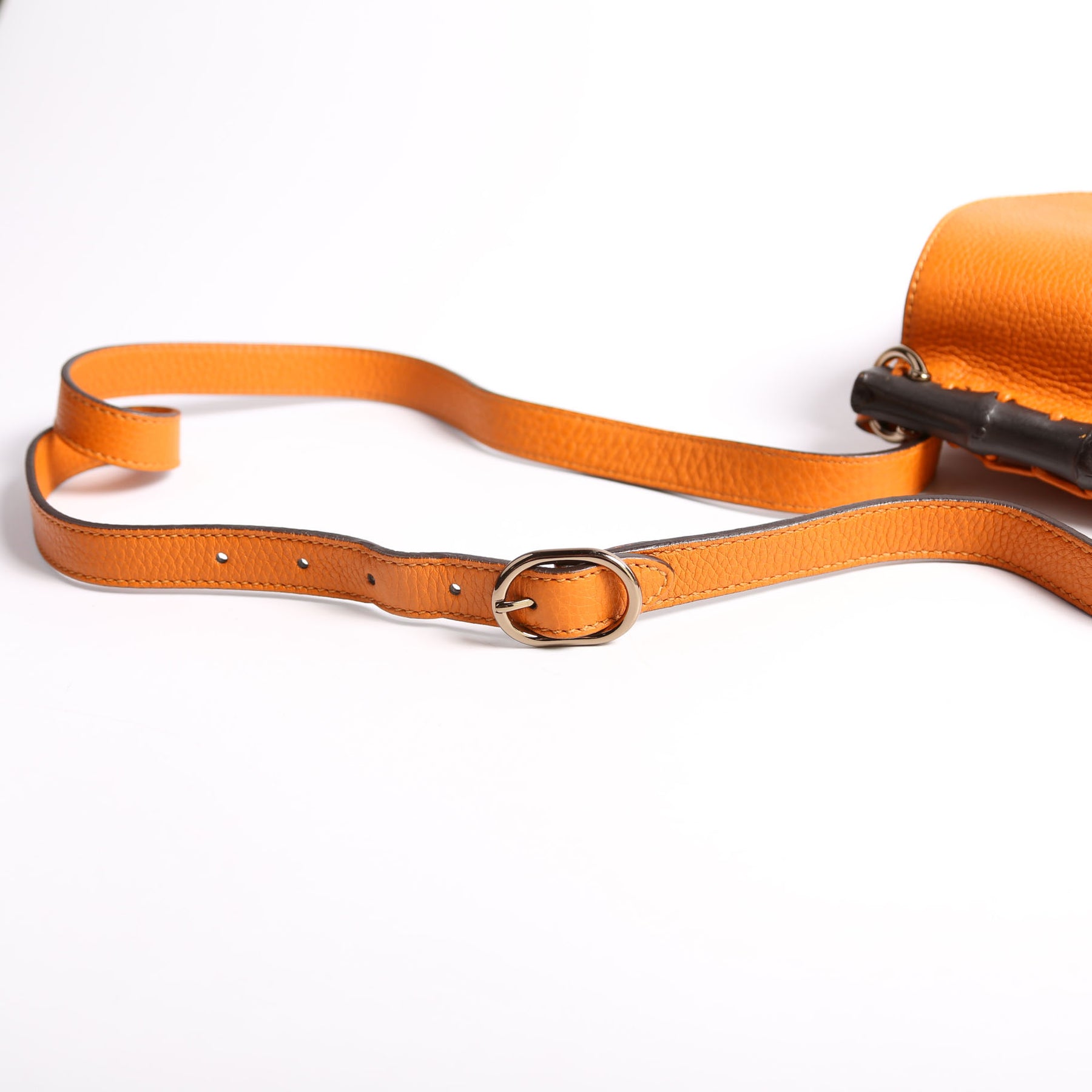 347104 Calfskin Bamboo Nouveau Shoulder Bag Small Orange