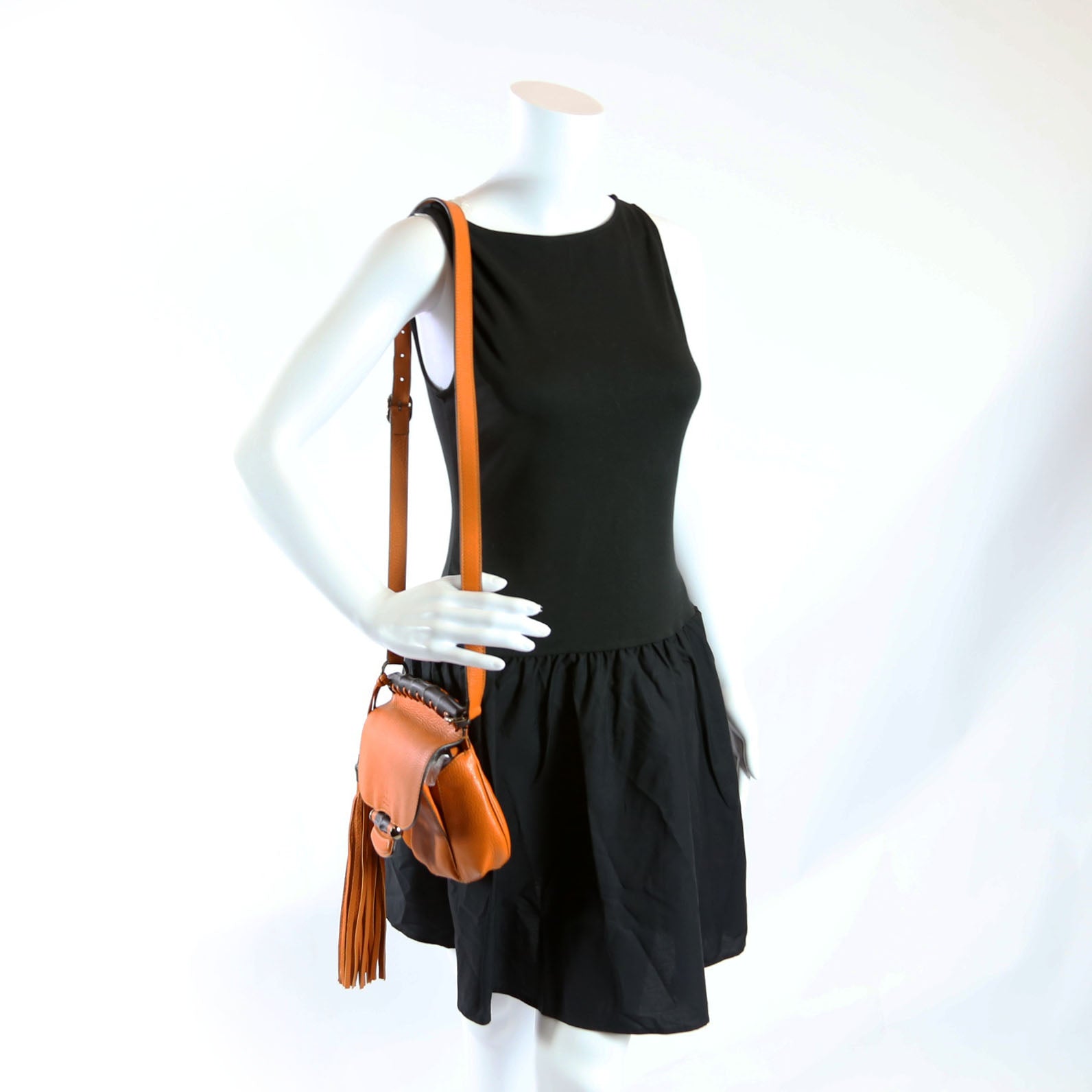This pre-owned Gucci Calfskin Bamboo Nouveau Shoulder Bag Small is guaranteed 100% authentic.
