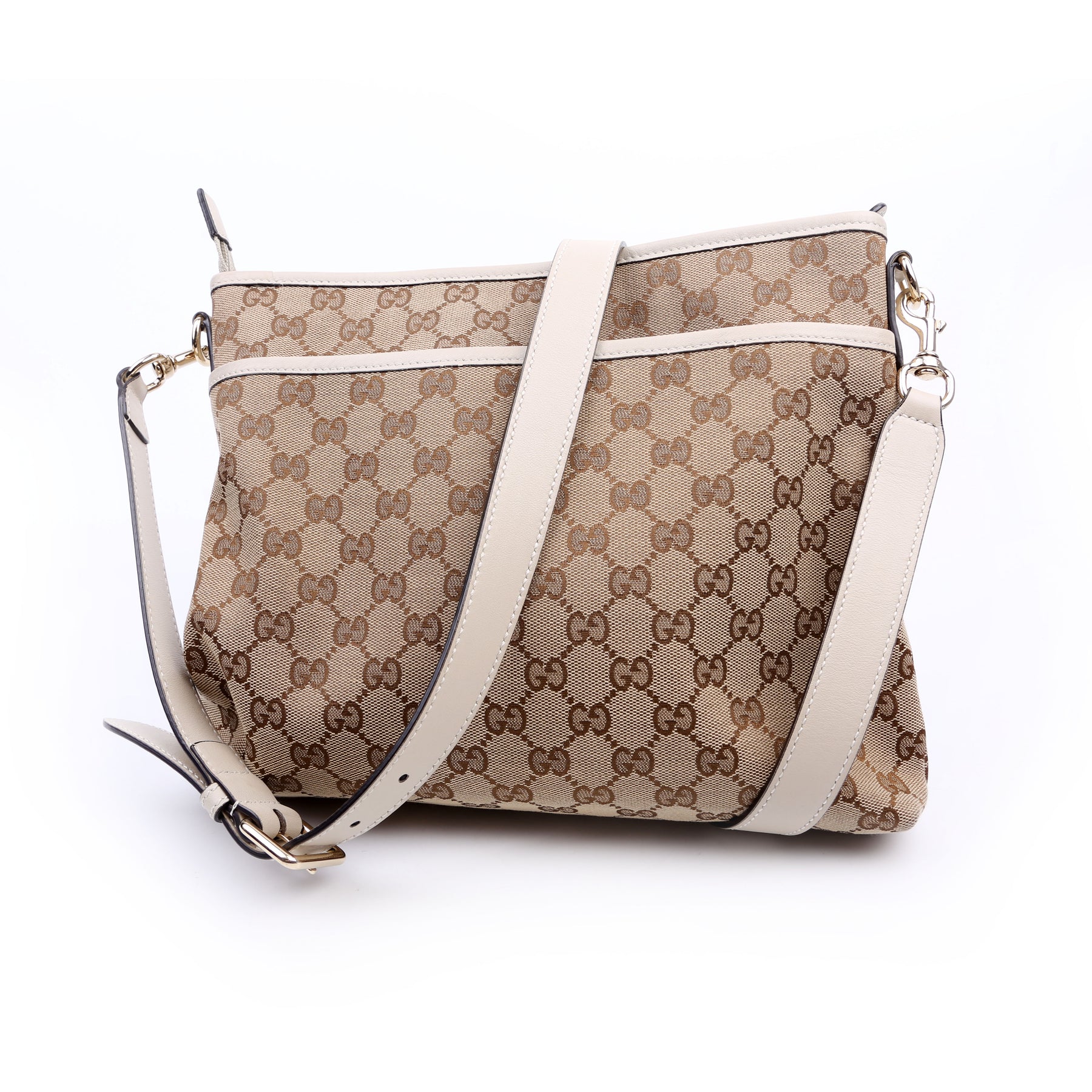 This pre-owned Gucci GG Crossbody is guaranteed 100% authentic. The exterior is in the classic Gucci GG Supreme coated canvas.