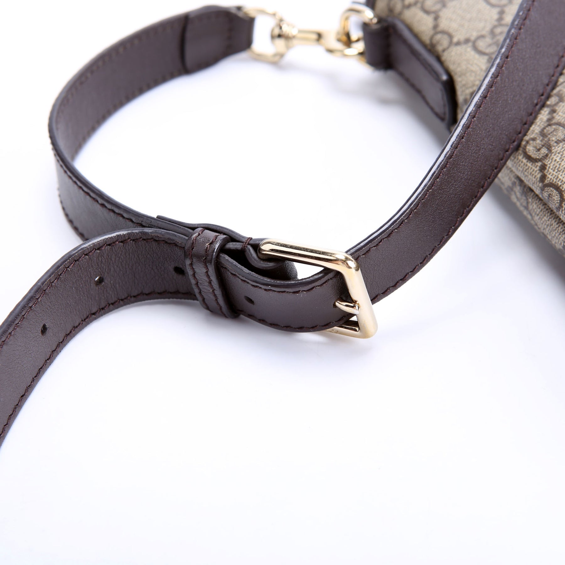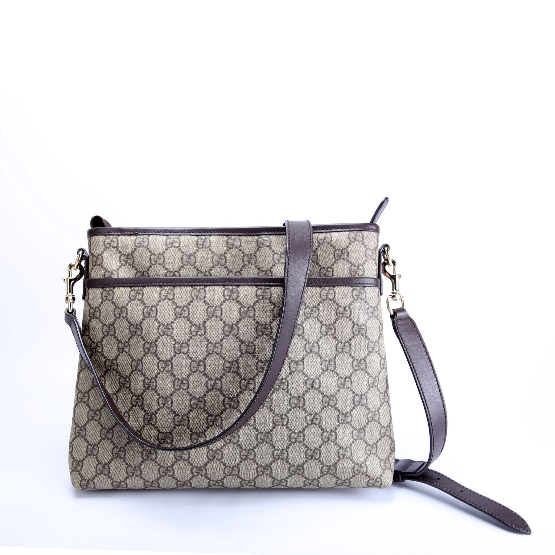 This pre-owned Gucci Supreme Crossbody is guaranteed 100% authentic. The exterior is in the classic Gucci Supreme Canvas.