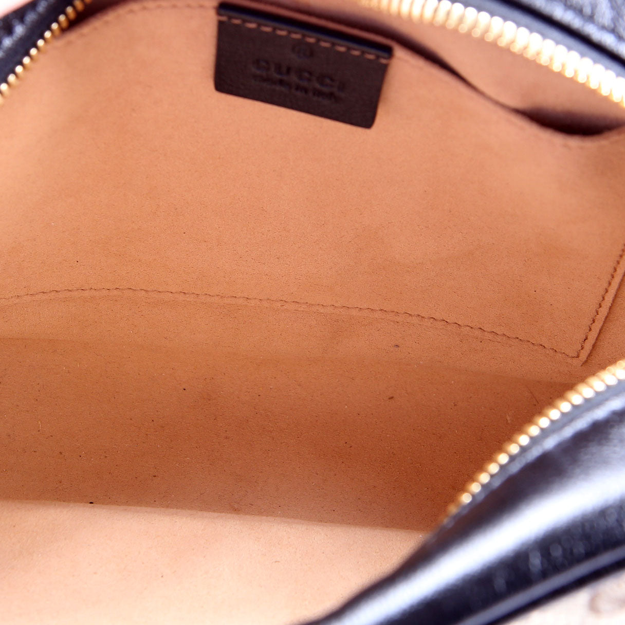 Hardware: The zipper operates properly and runs smoothly. The hardware GG shows light scuffs.
