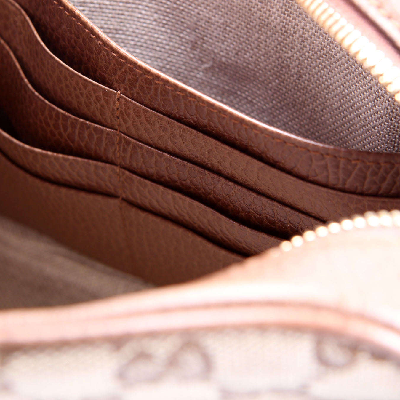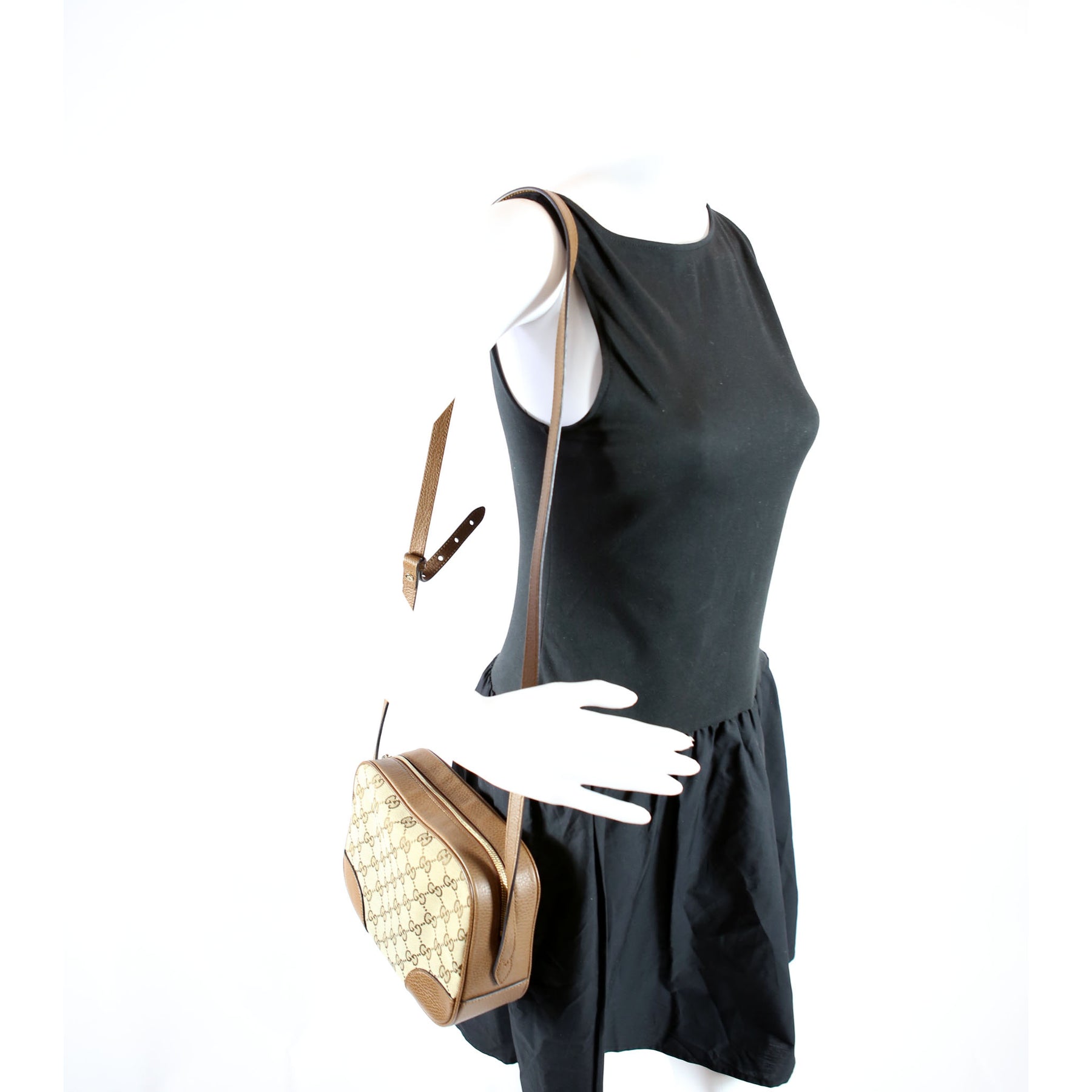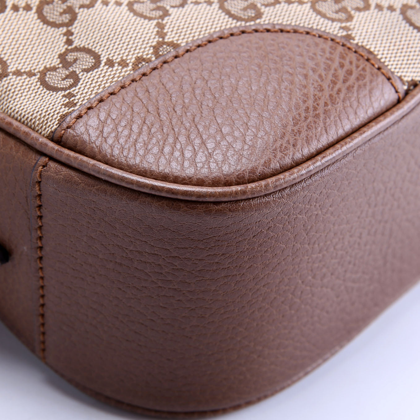 This pre-owned Gucci Bree GG is guaranteed 100% authentic. The exterior is in the classic Gucci Canvas.