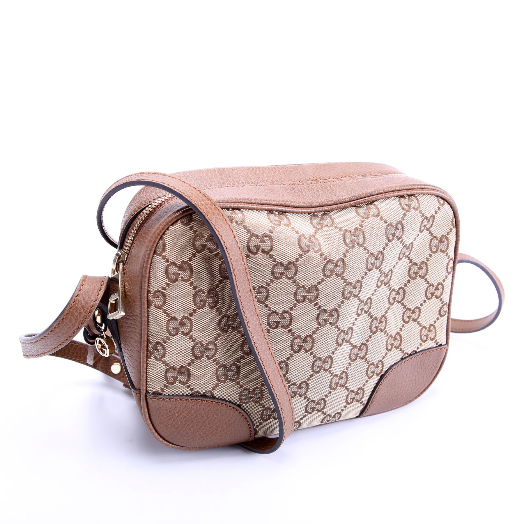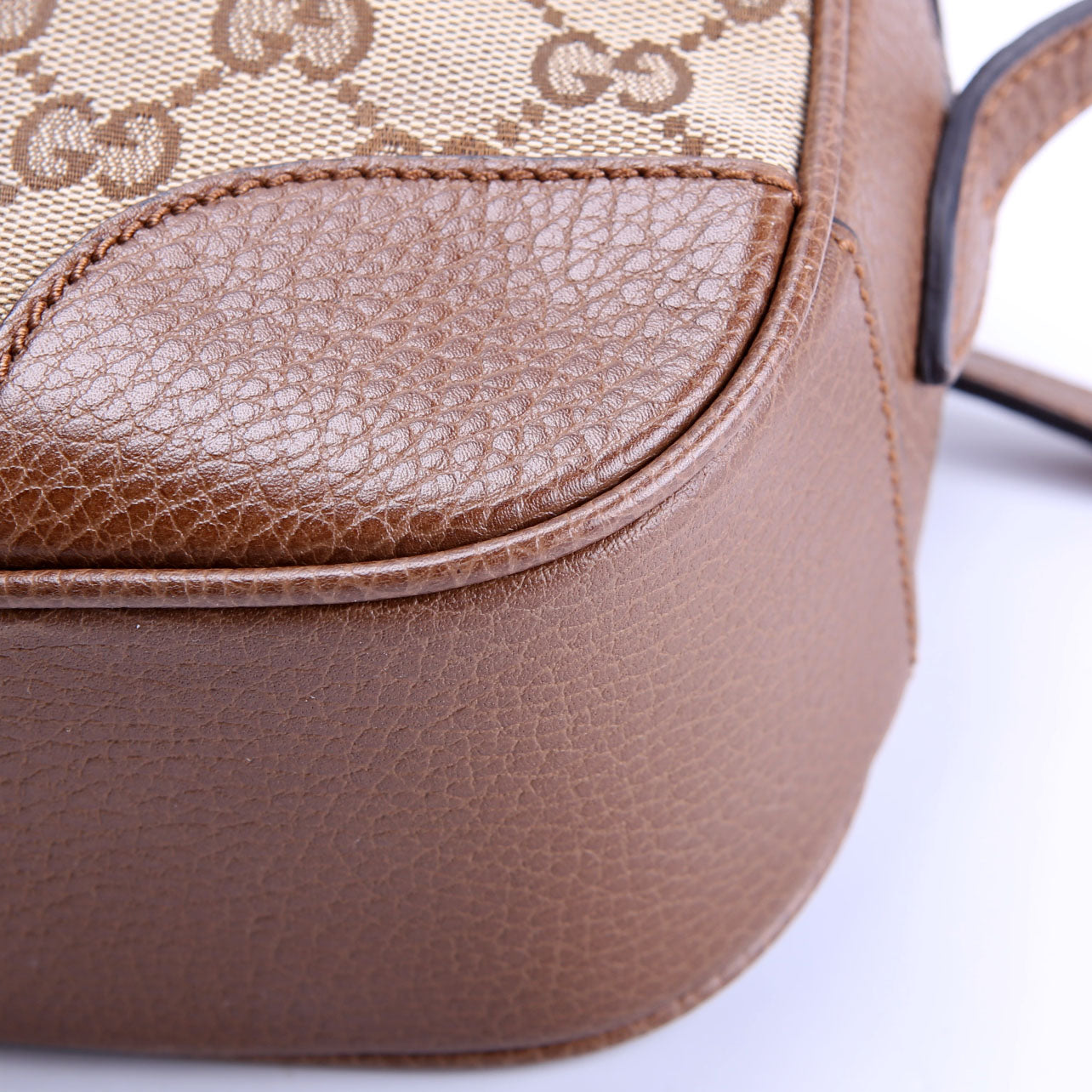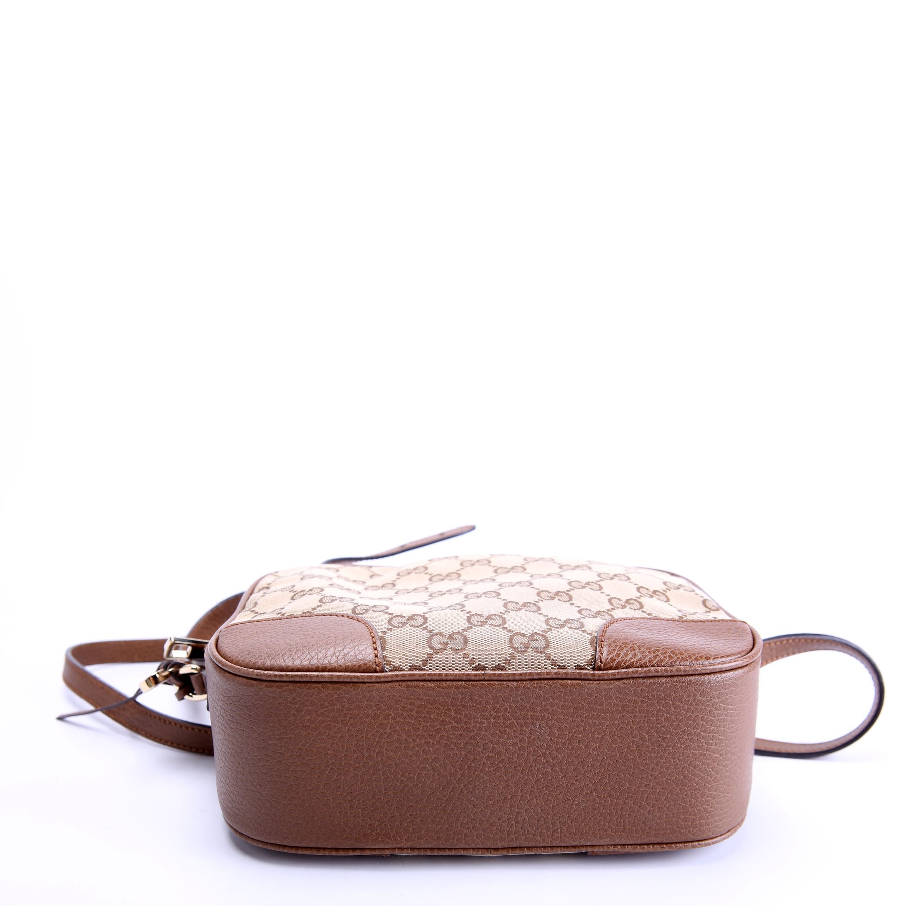 This pre-owned Gucci Bree GG is guaranteed 100% authentic. The exterior is in the classic Gucci Canvas.