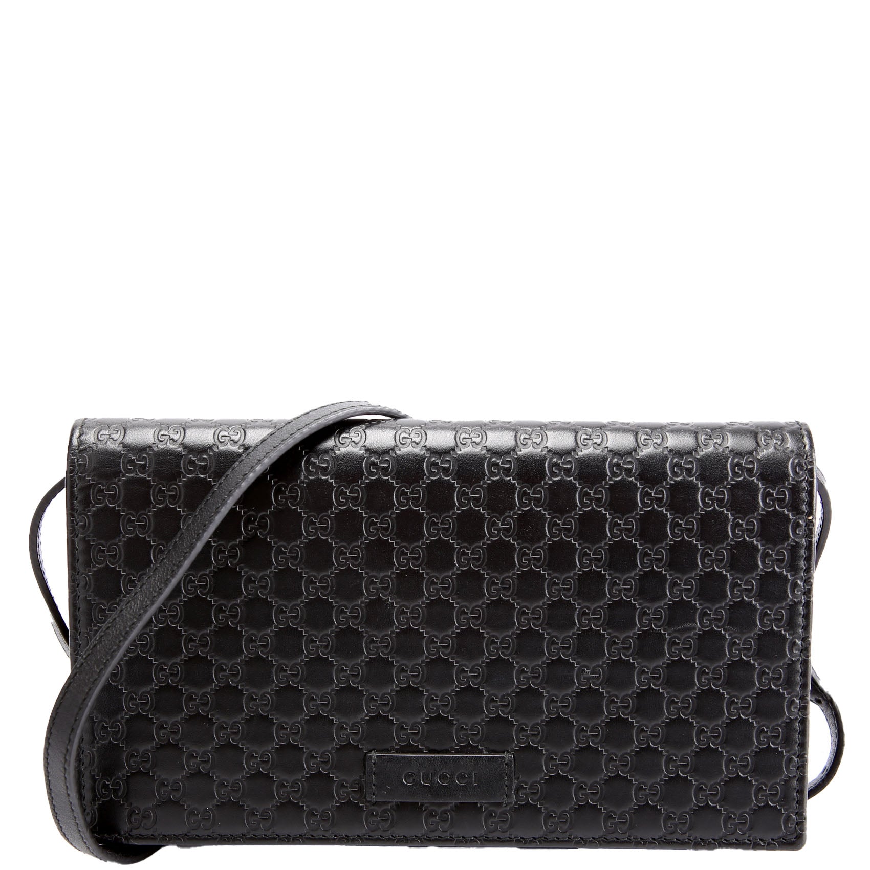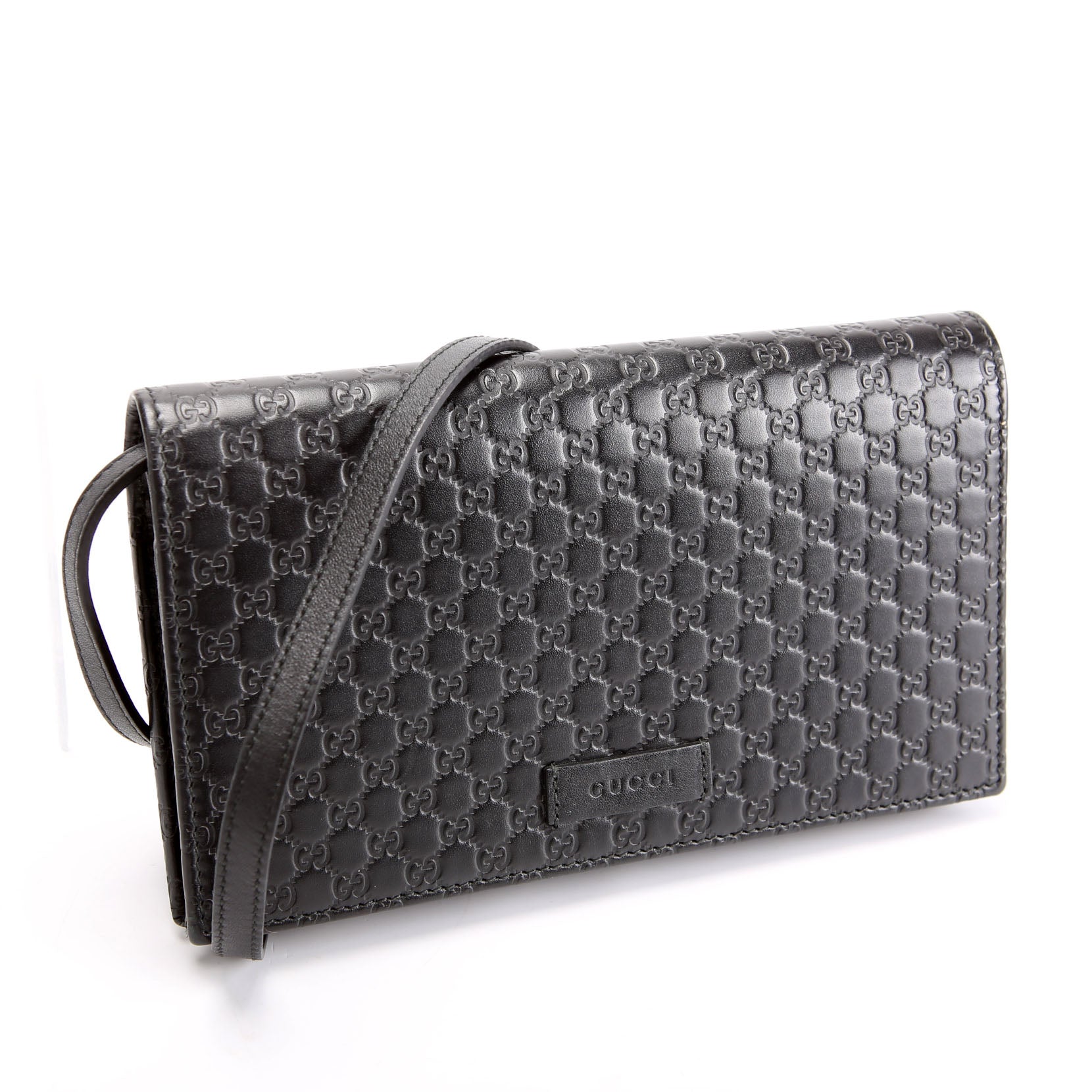This pre-owned Gucci Micro GG Wallet On Chain is guaranteed 100% authentic. The exterior is in the classic Gucci GG Embossed Leather.