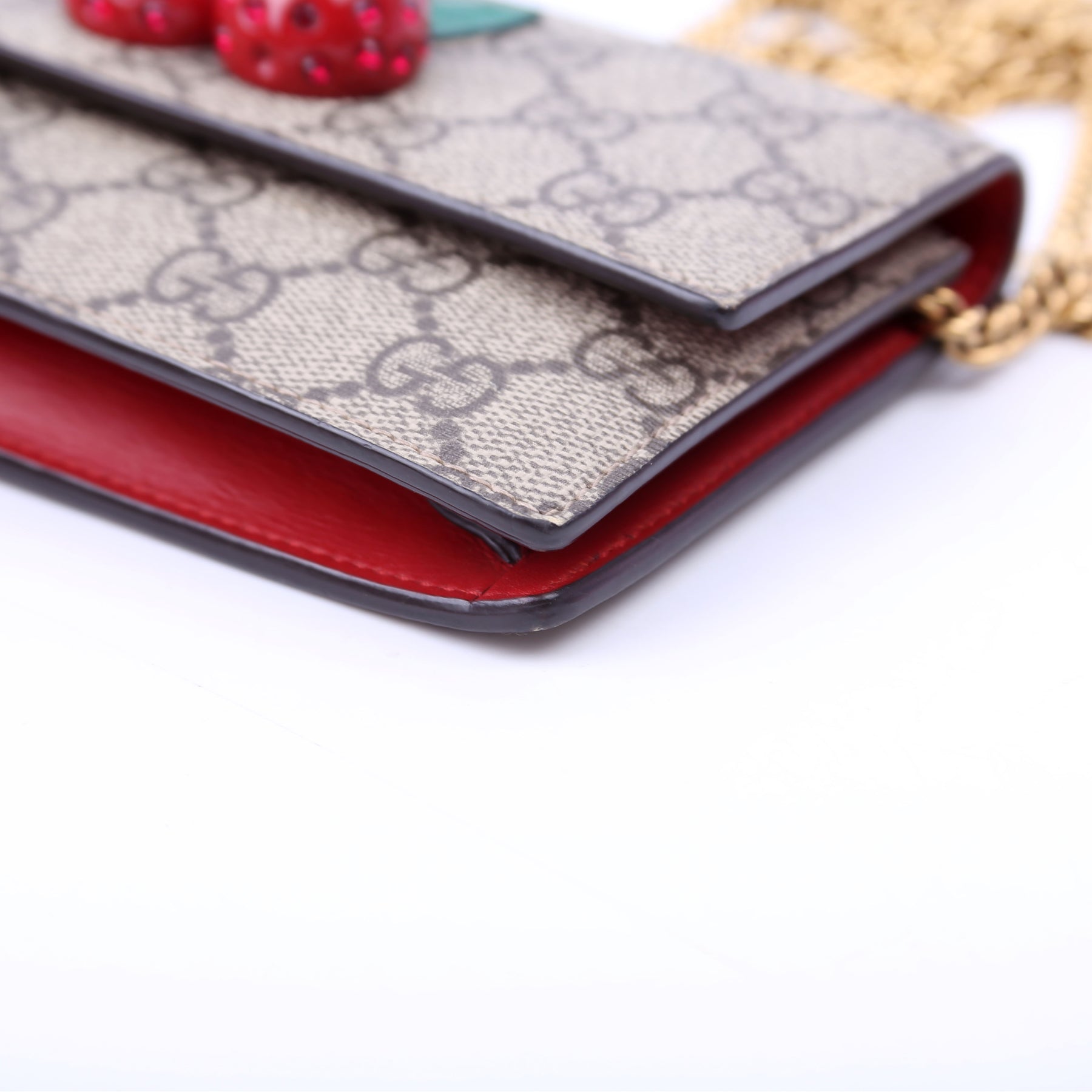 This pre-owned Gucci GG Supreme Cherries Mini Bag is guaranteed 100% authentic.