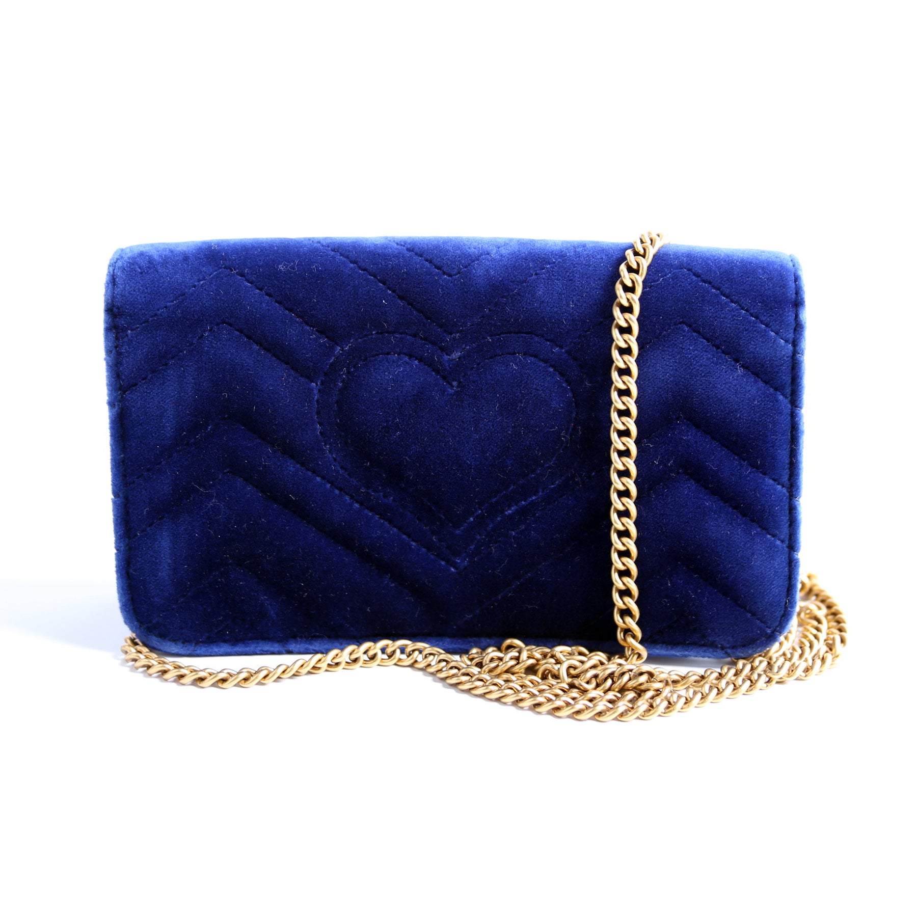 This pre-owned Gucci GG Marmont Velvet Mini Bag is guaranteed 100% authentic. The exterior is in the classic Gucci Marmont velvet.