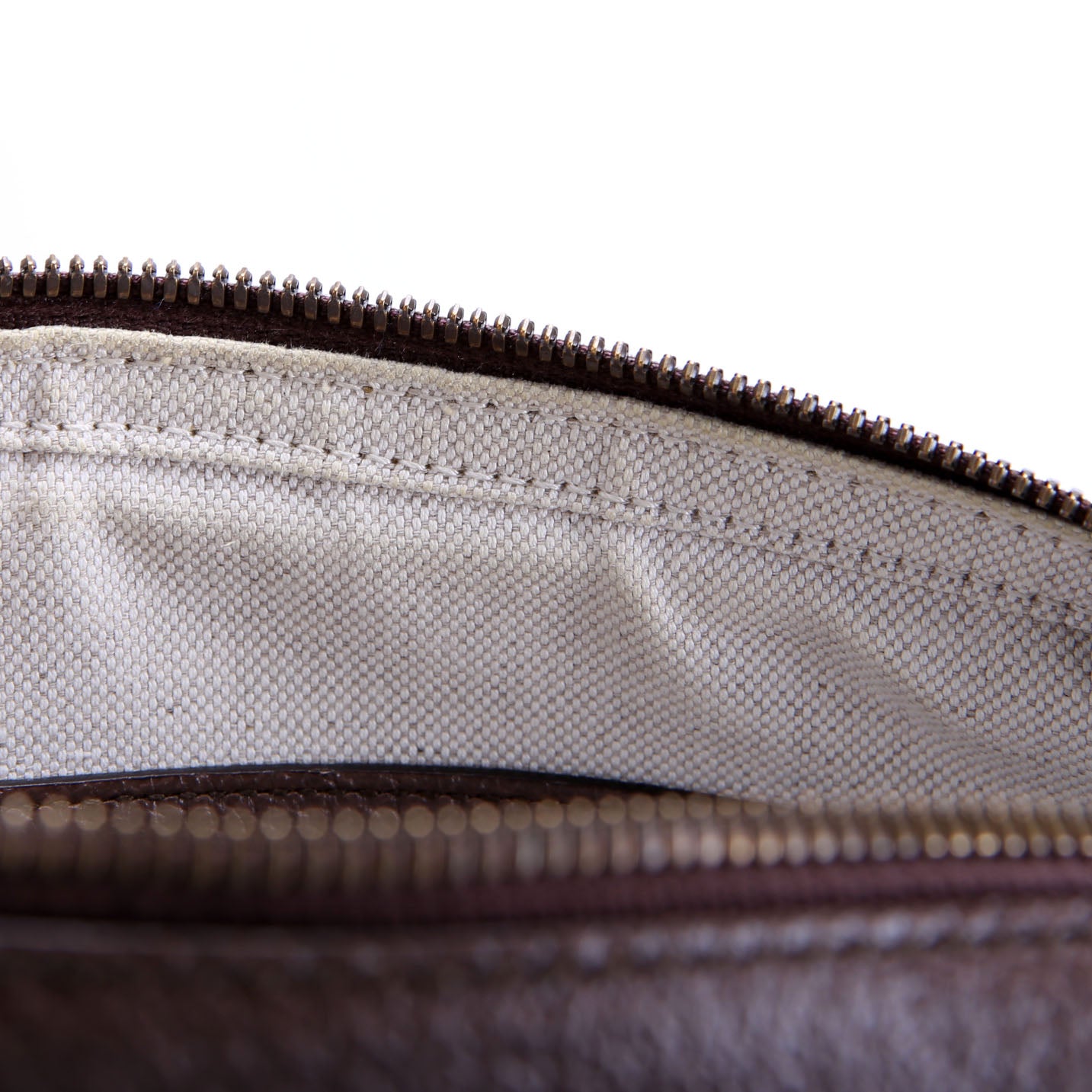 Hardware: The zipper operates properly and runs smoothly. The hardware shows light wear and discoloration.