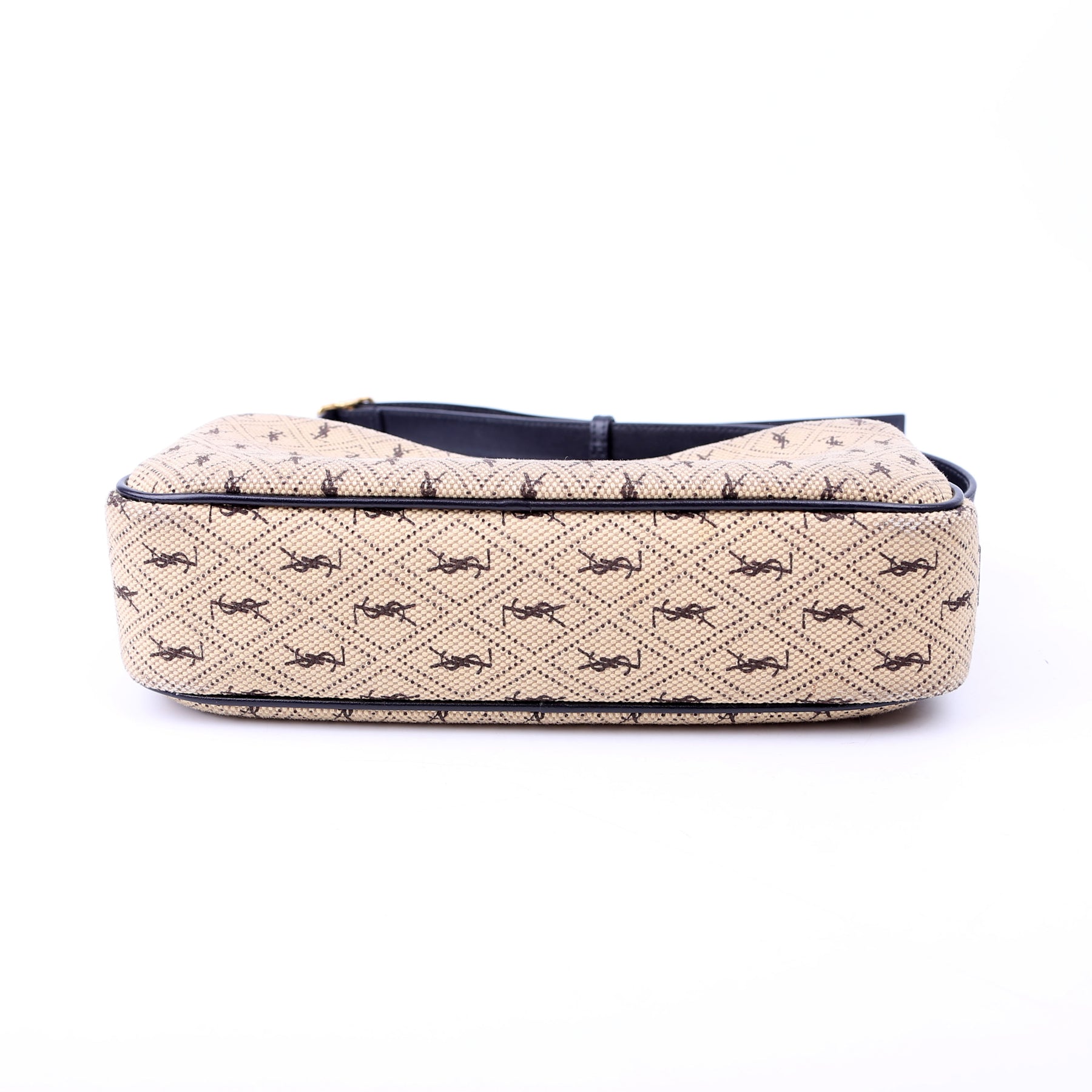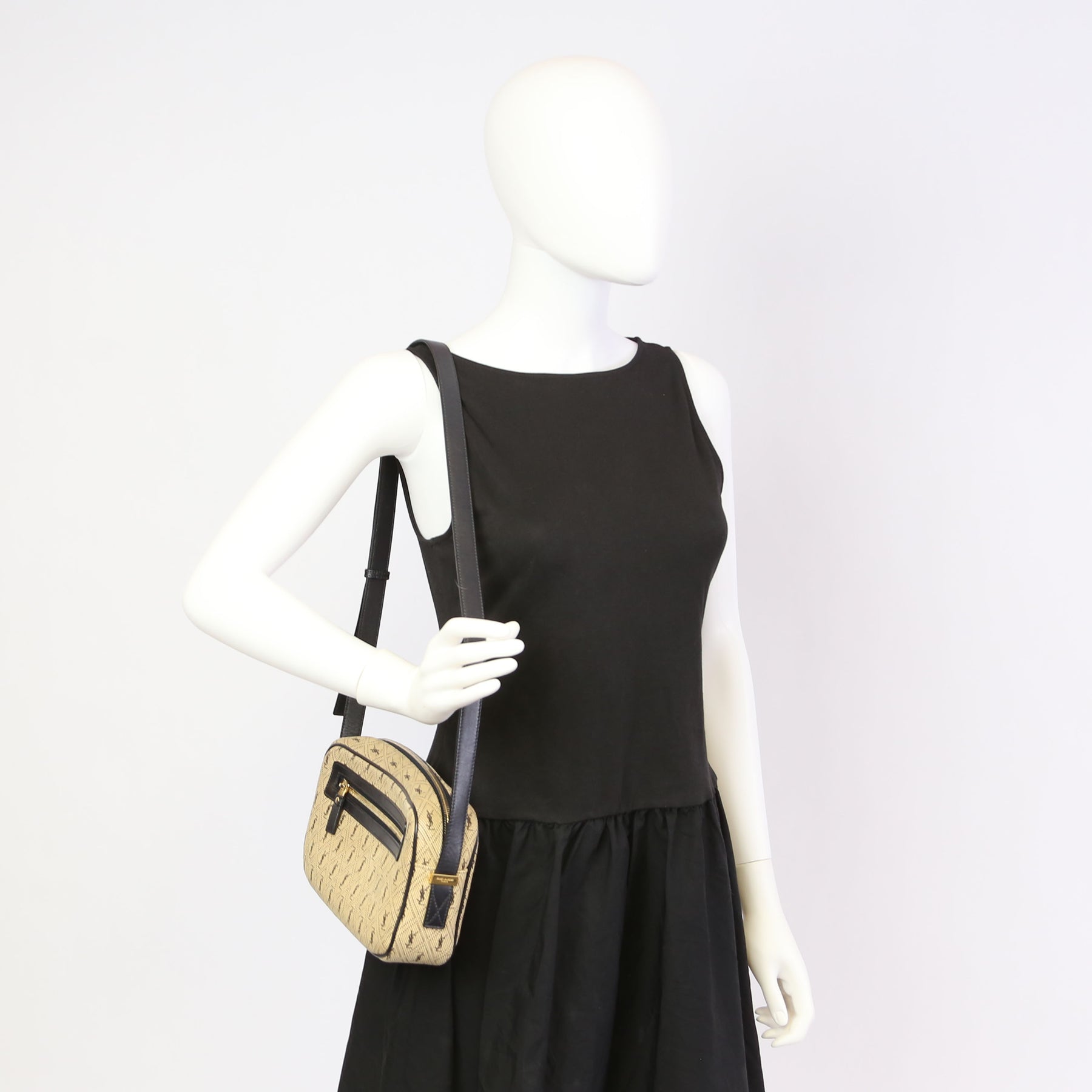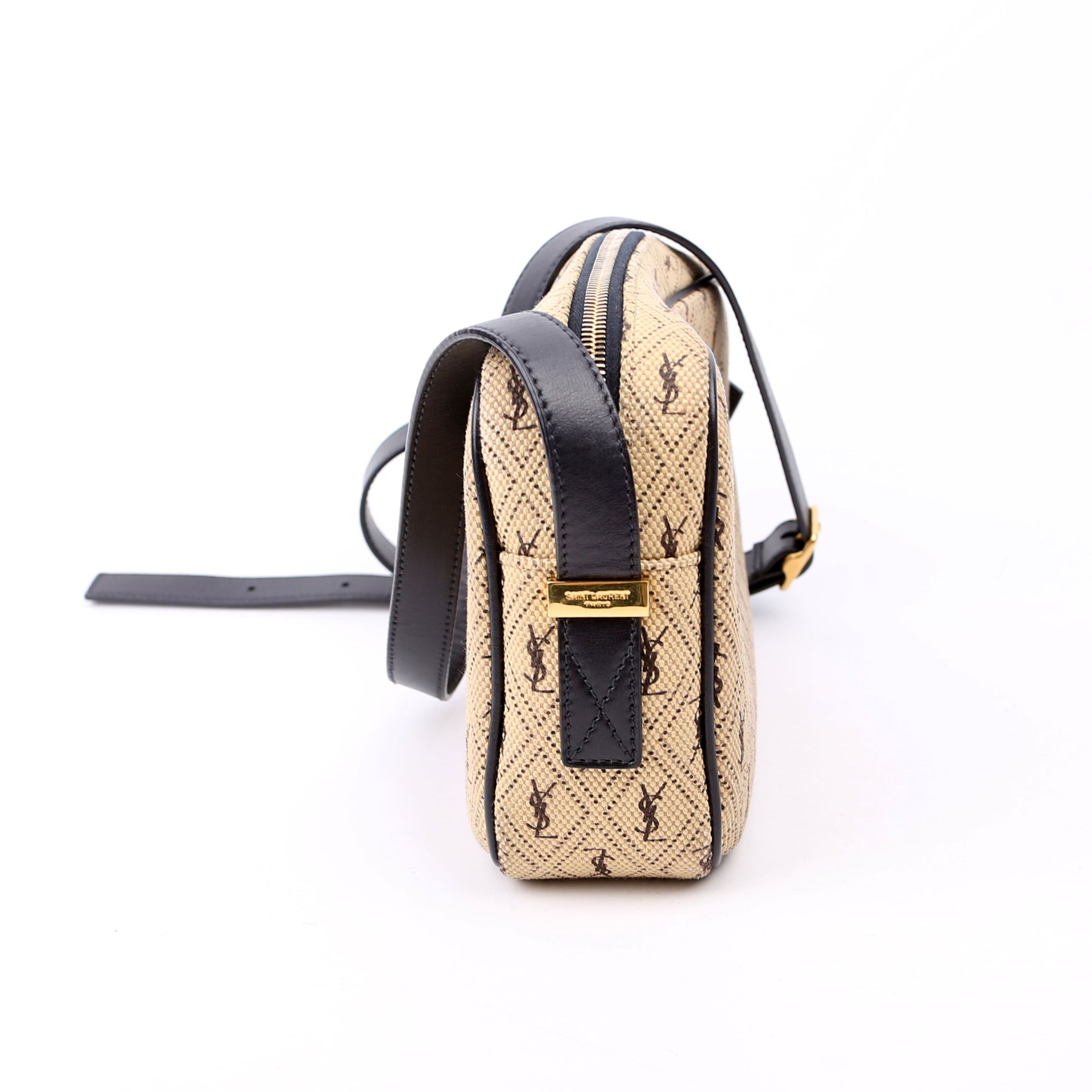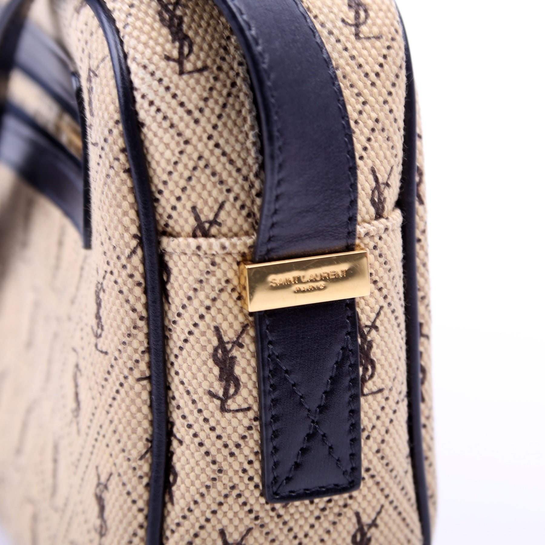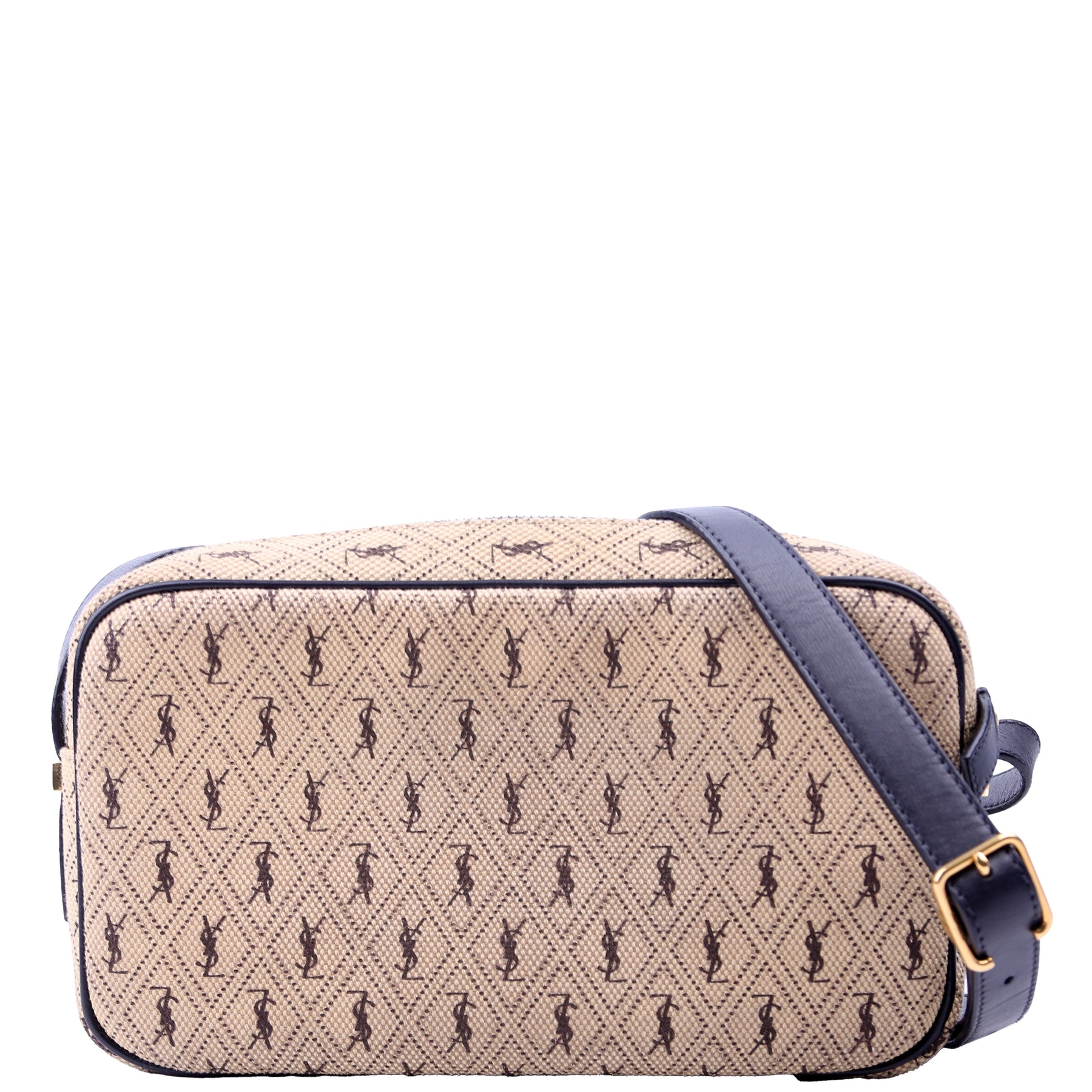 This pre-owned Saint Laurent All Over Logo Canvas Camera Bag is guaranteed 100% authentic. The exterior is in the classic Saint Laurent logo canvas.