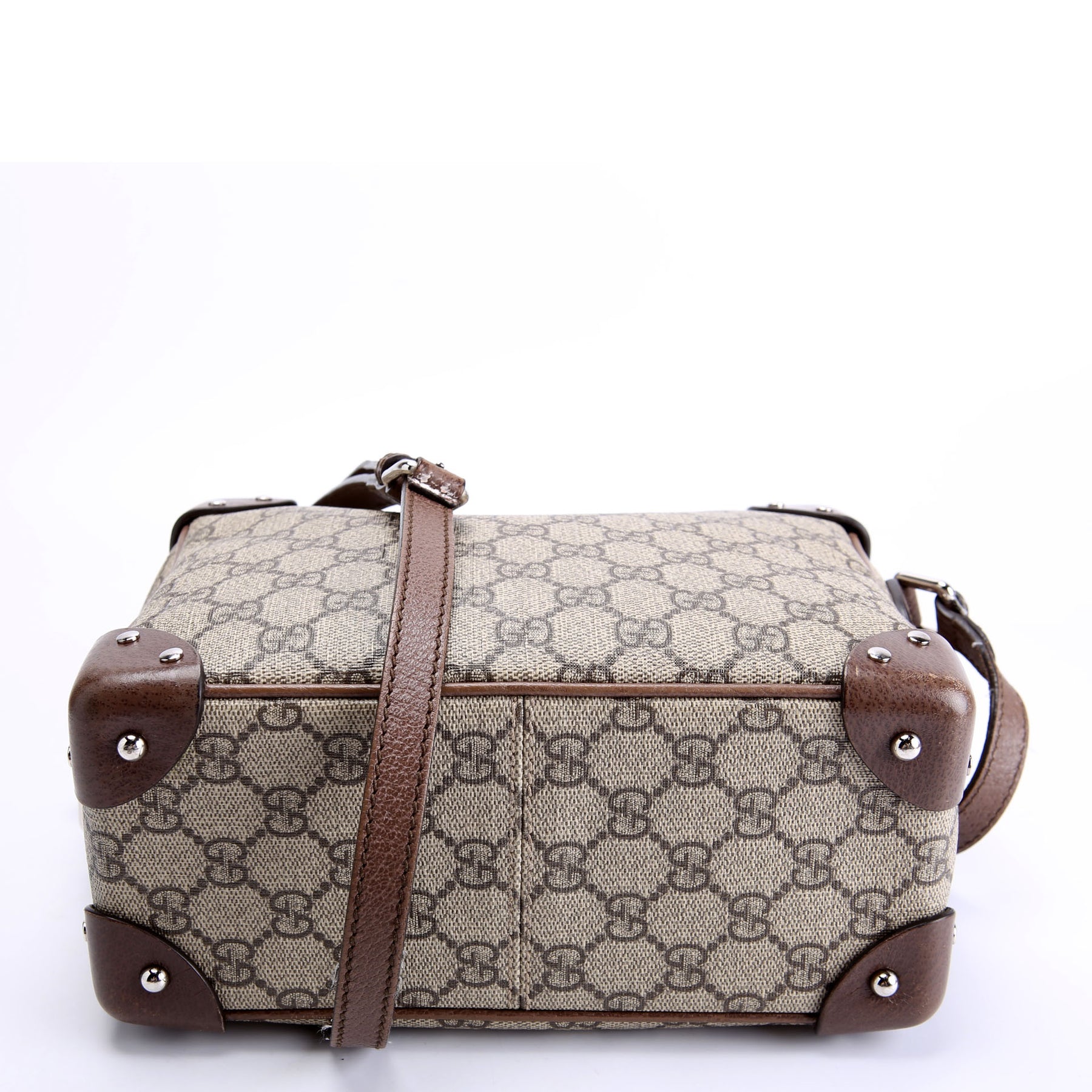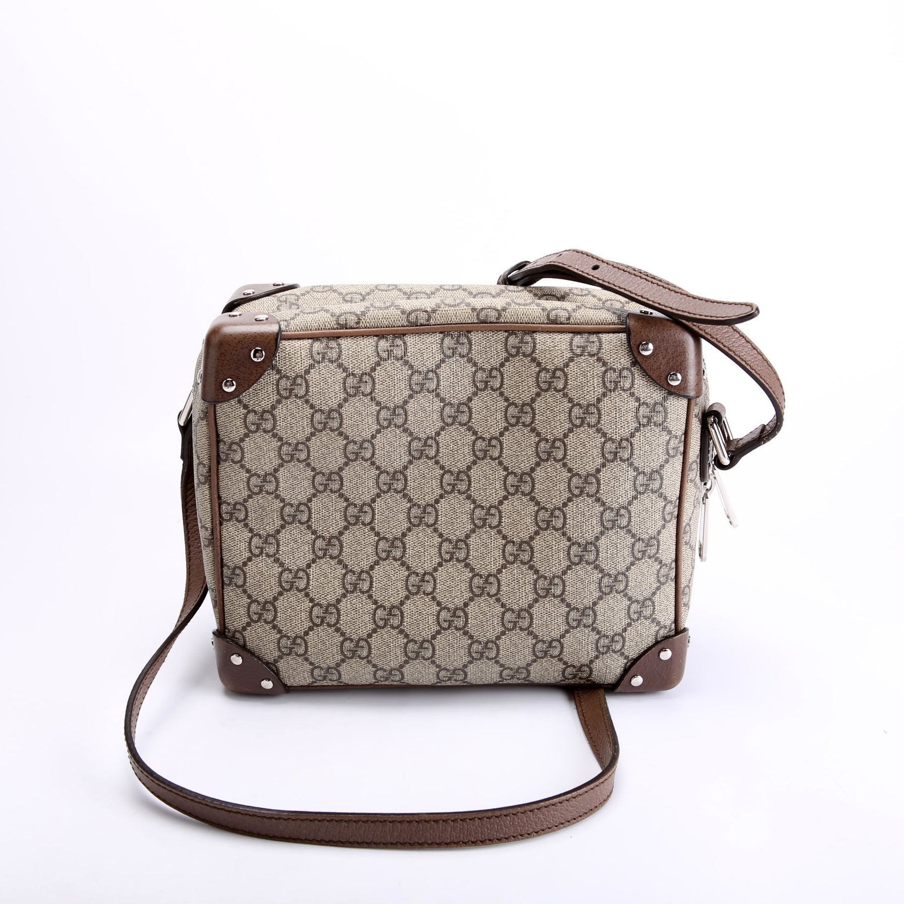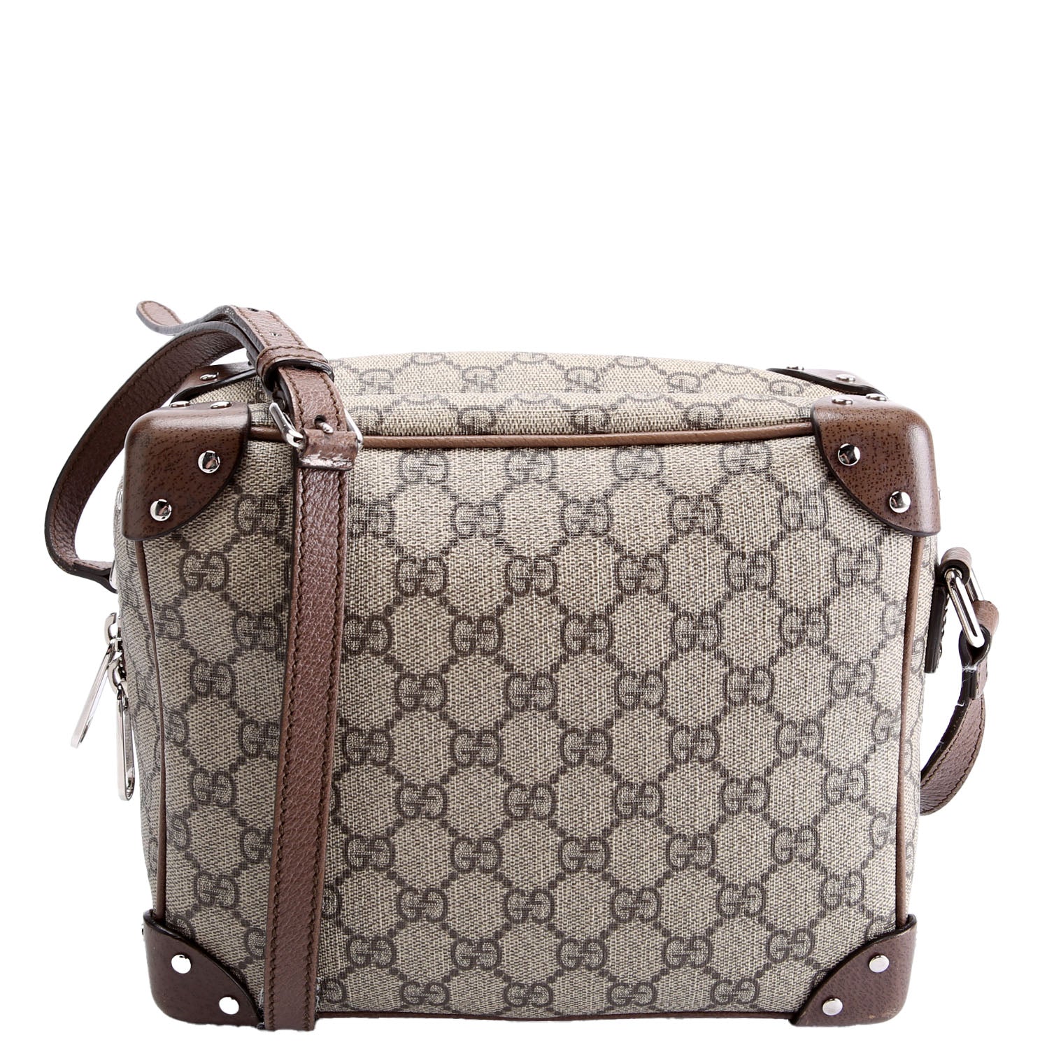 This pre-owned Gucci GG Supreme Square Messenger Bag is guaranteed 100% authentic. The exterior is in the classic Gucci GG Supreme coated canvas.