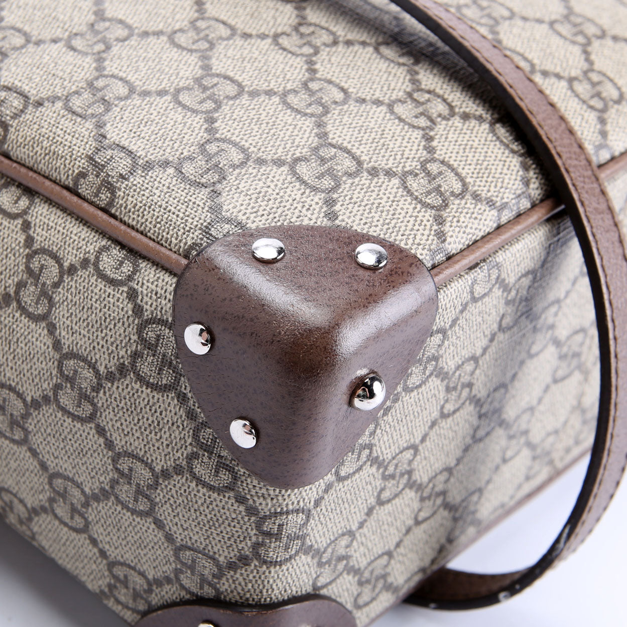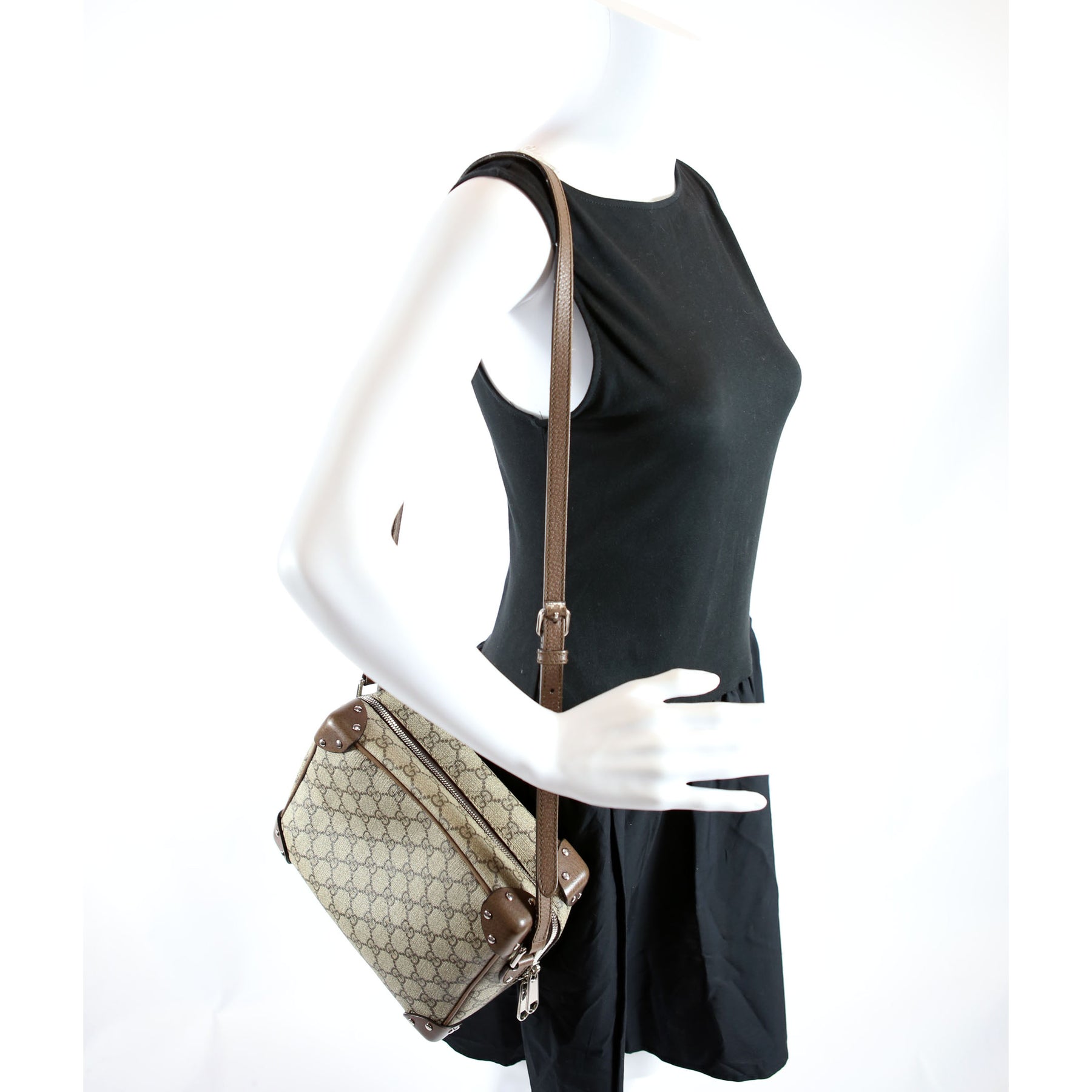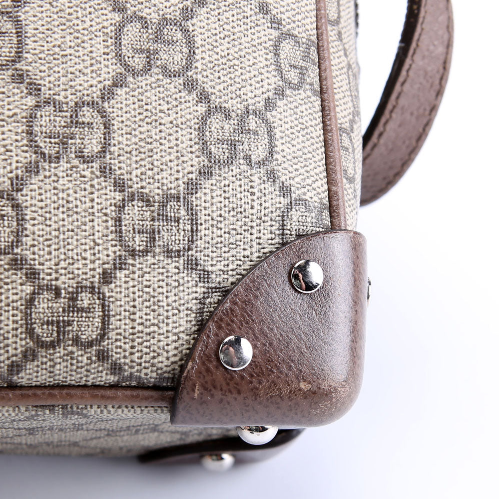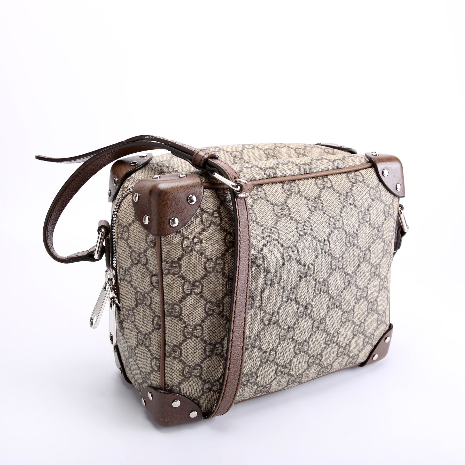 This pre-owned Gucci GG Supreme Square Messenger Bag is guaranteed 100% authentic. The exterior is in the classic Gucci GG Supreme coated canvas.