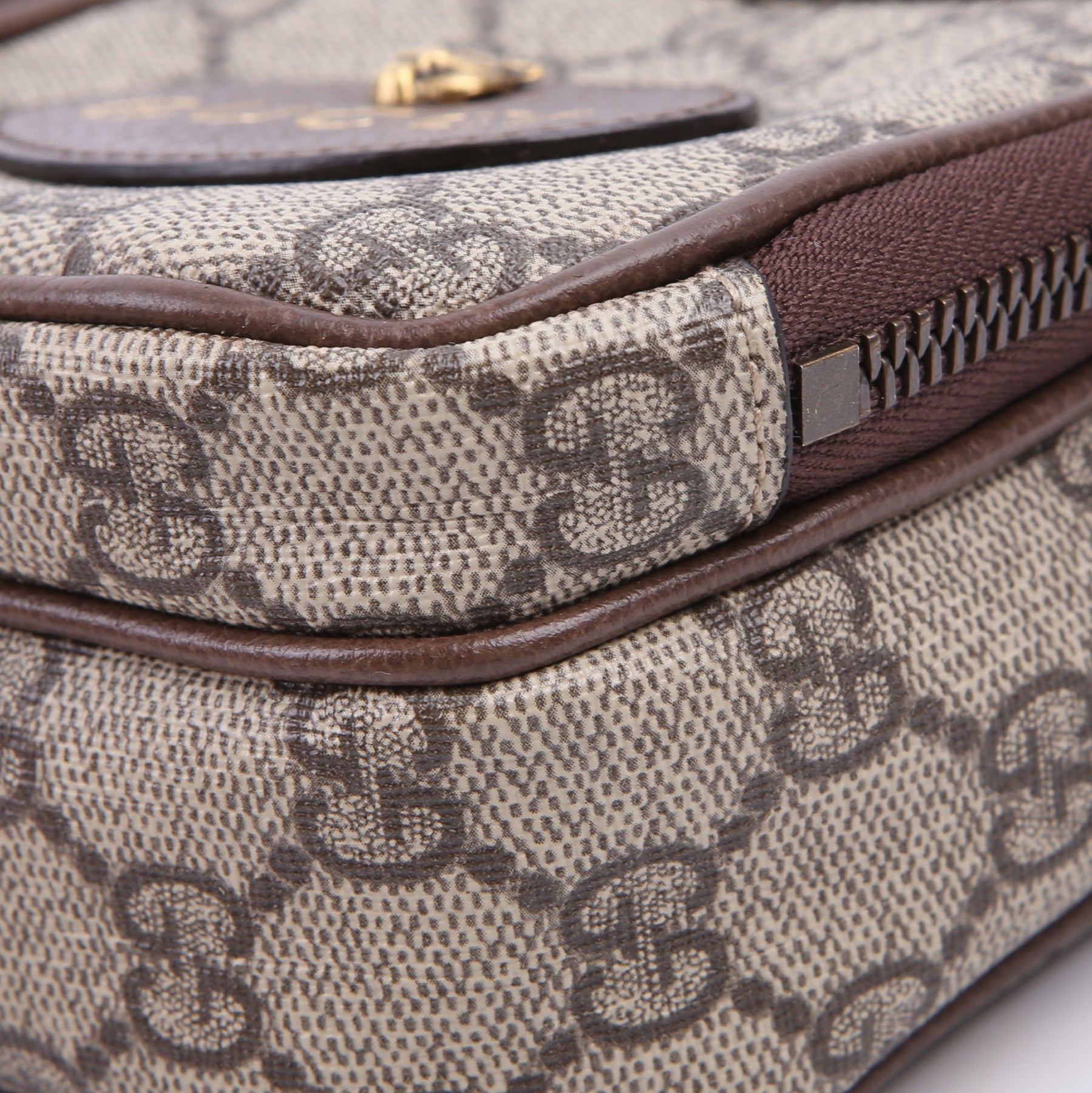 This pre-owned Ophidia GG Supreme Neo Vintage Mini Bag is guaranteed 100% authentic. The exterior is in the classic Gucci GG Supreme canvas.
