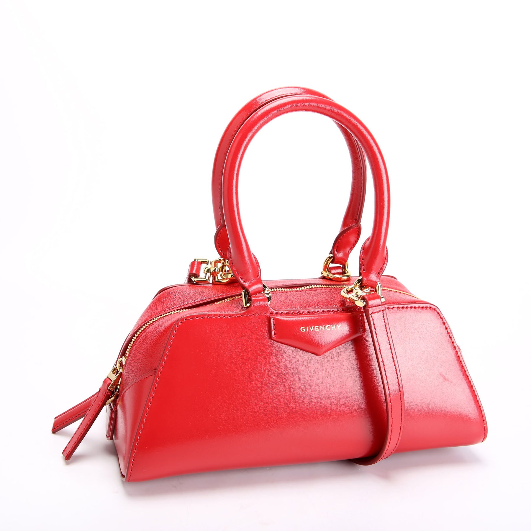 This pre-owned Givenchy Antigona East West Mini is guaranteed 100% authentic. The exterior is in the classic Givenchy Calfskin Leather.
