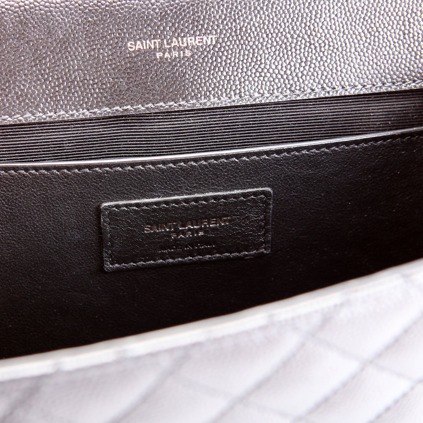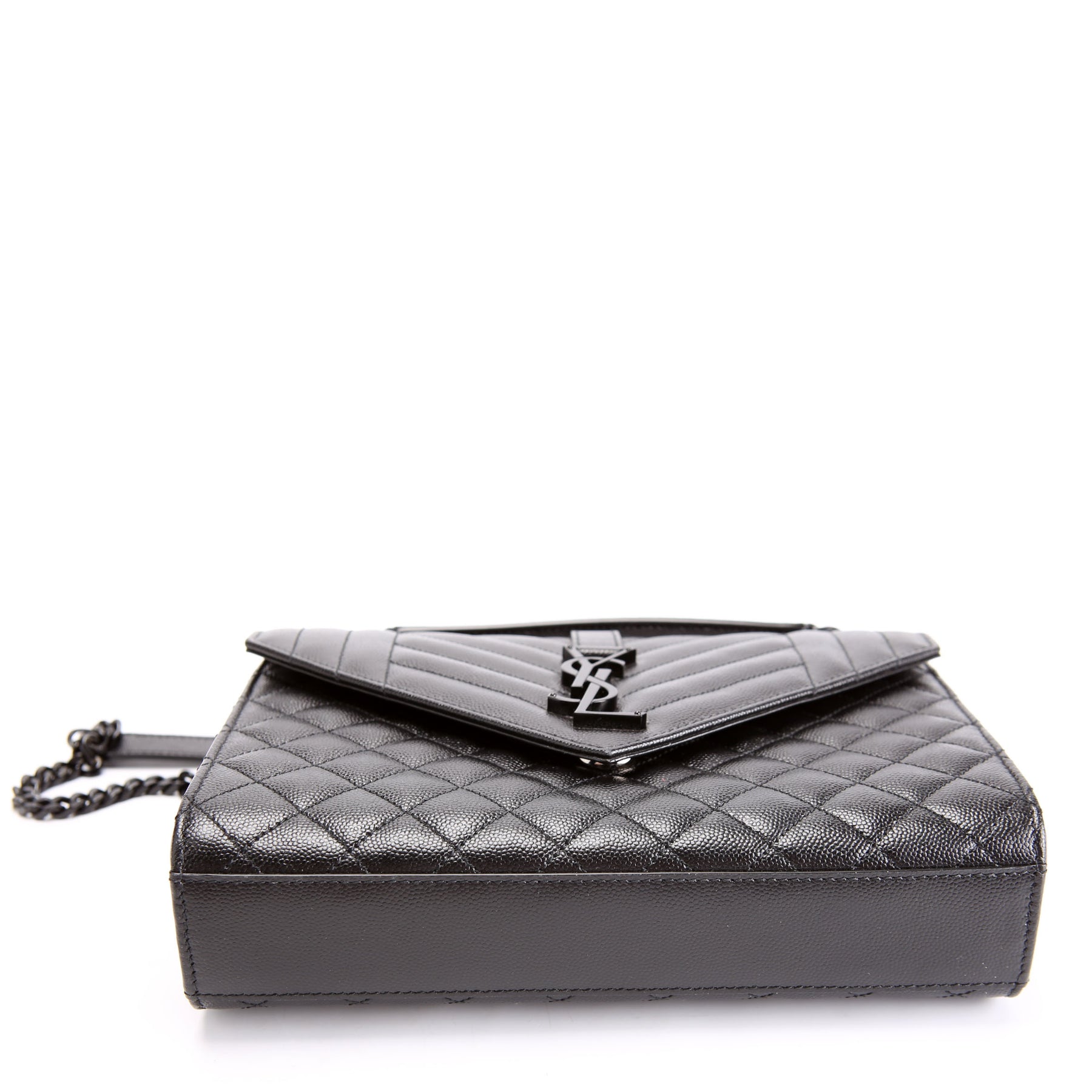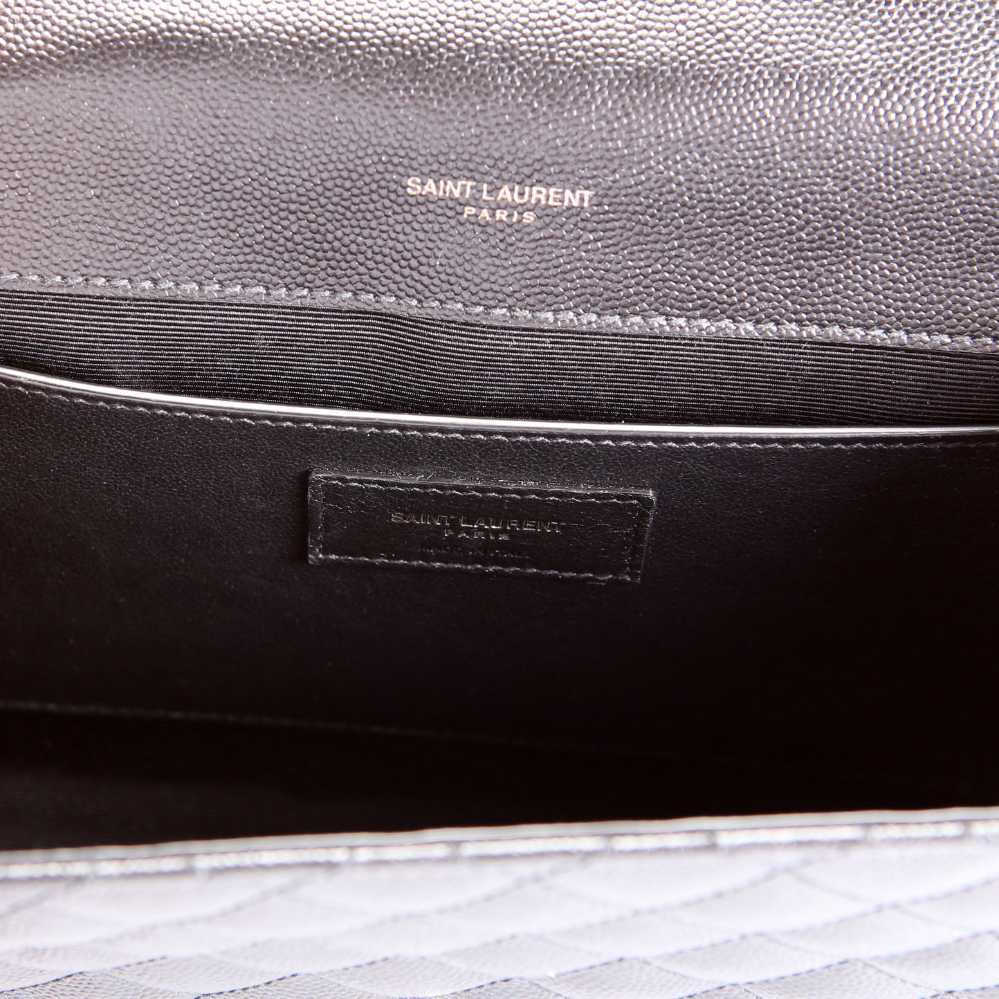 This pre-owned Saint Laurent Envelope Medium Tri-Quilted Bag is guaranteed 100% authentic. The exterior is in the classic Saint Laurent Quilted Leather.