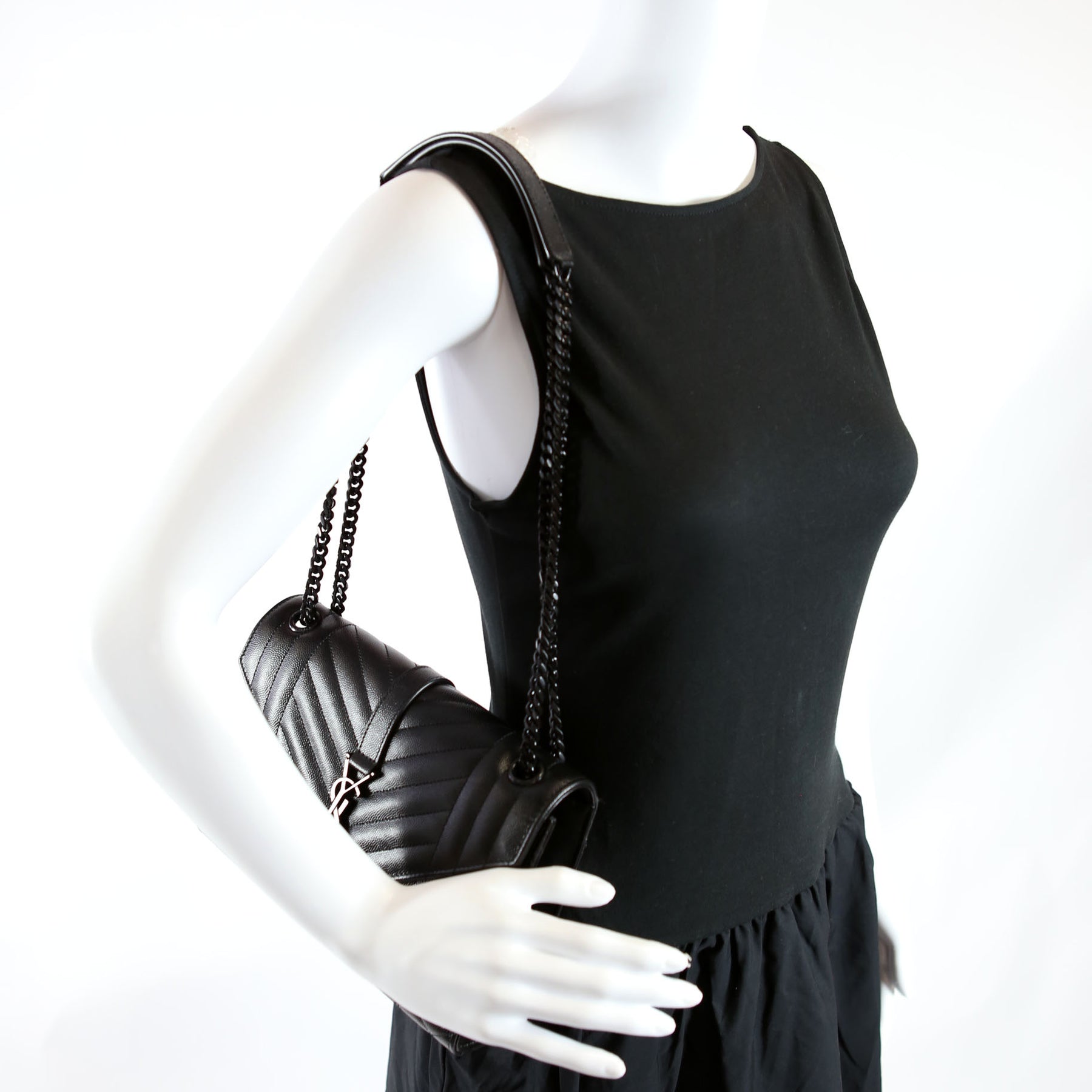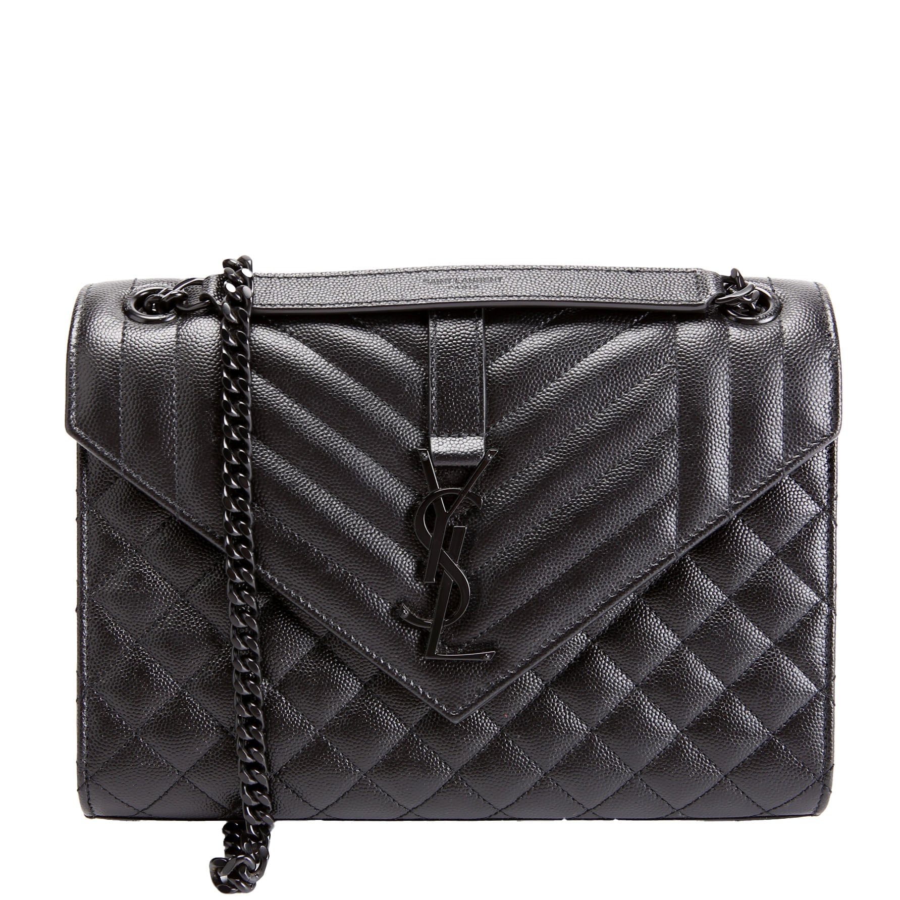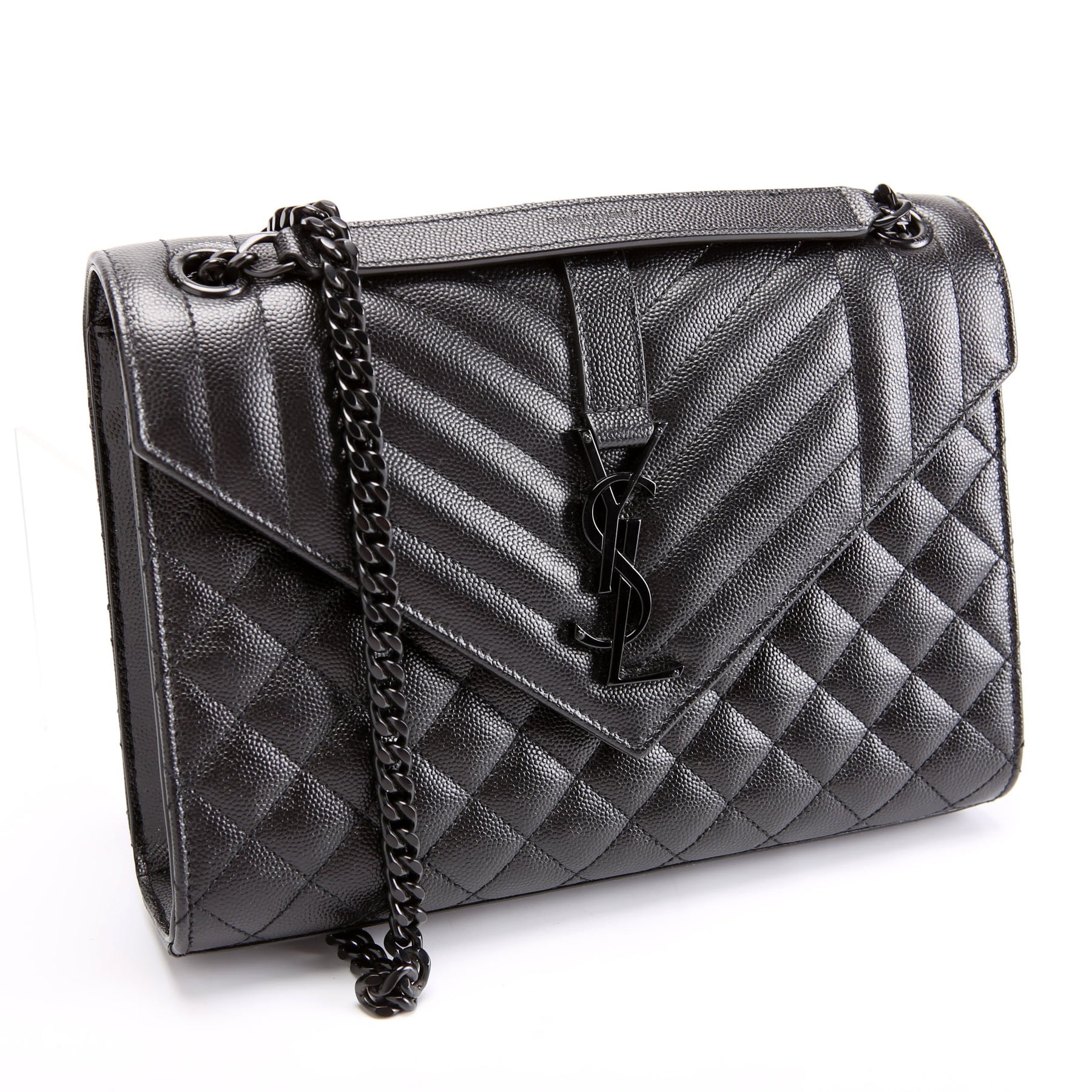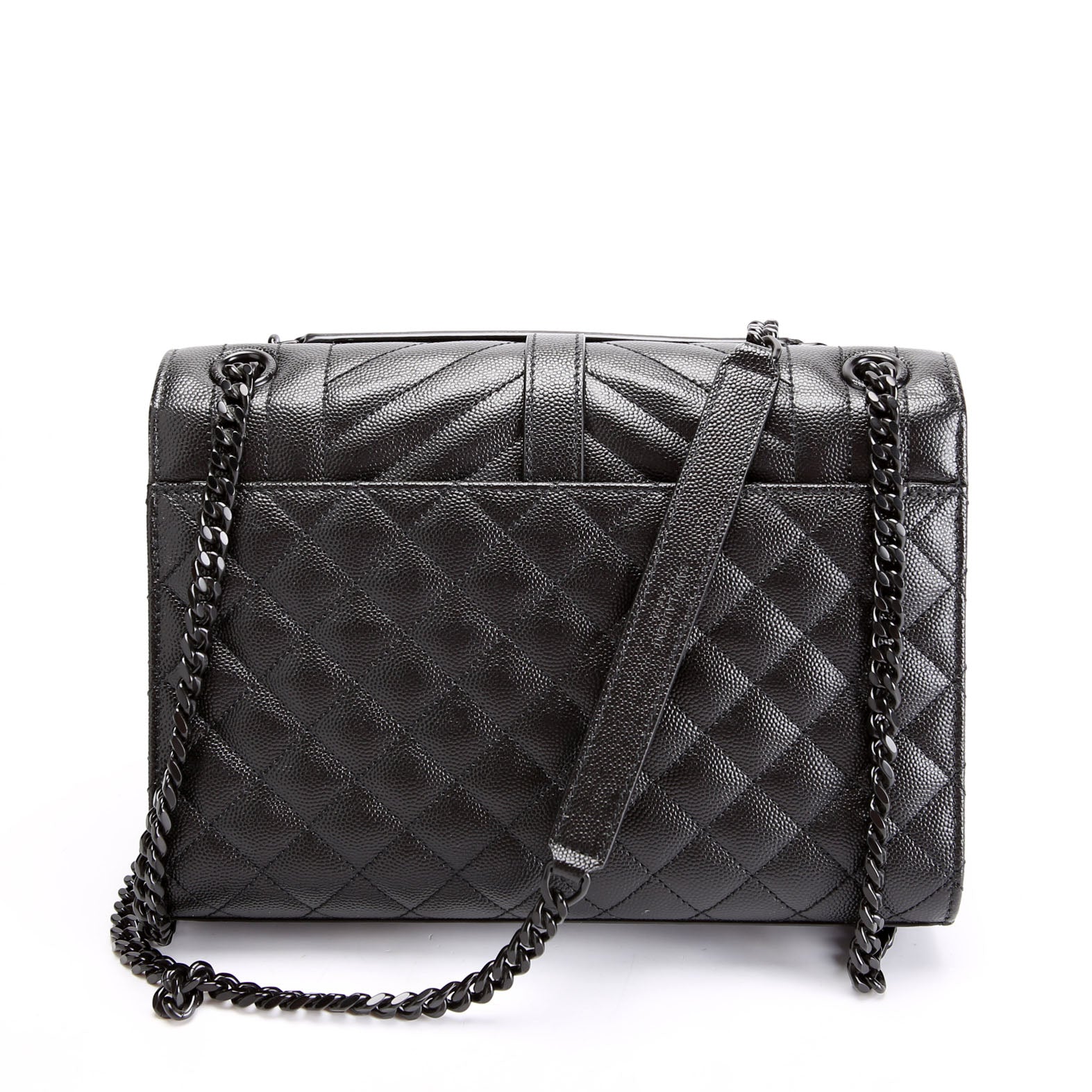 This pre-owned Saint Laurent Envelope Medium Tri-Quilted Bag is guaranteed 100% authentic. The exterior is in the classic Saint Laurent Quilted Leather.