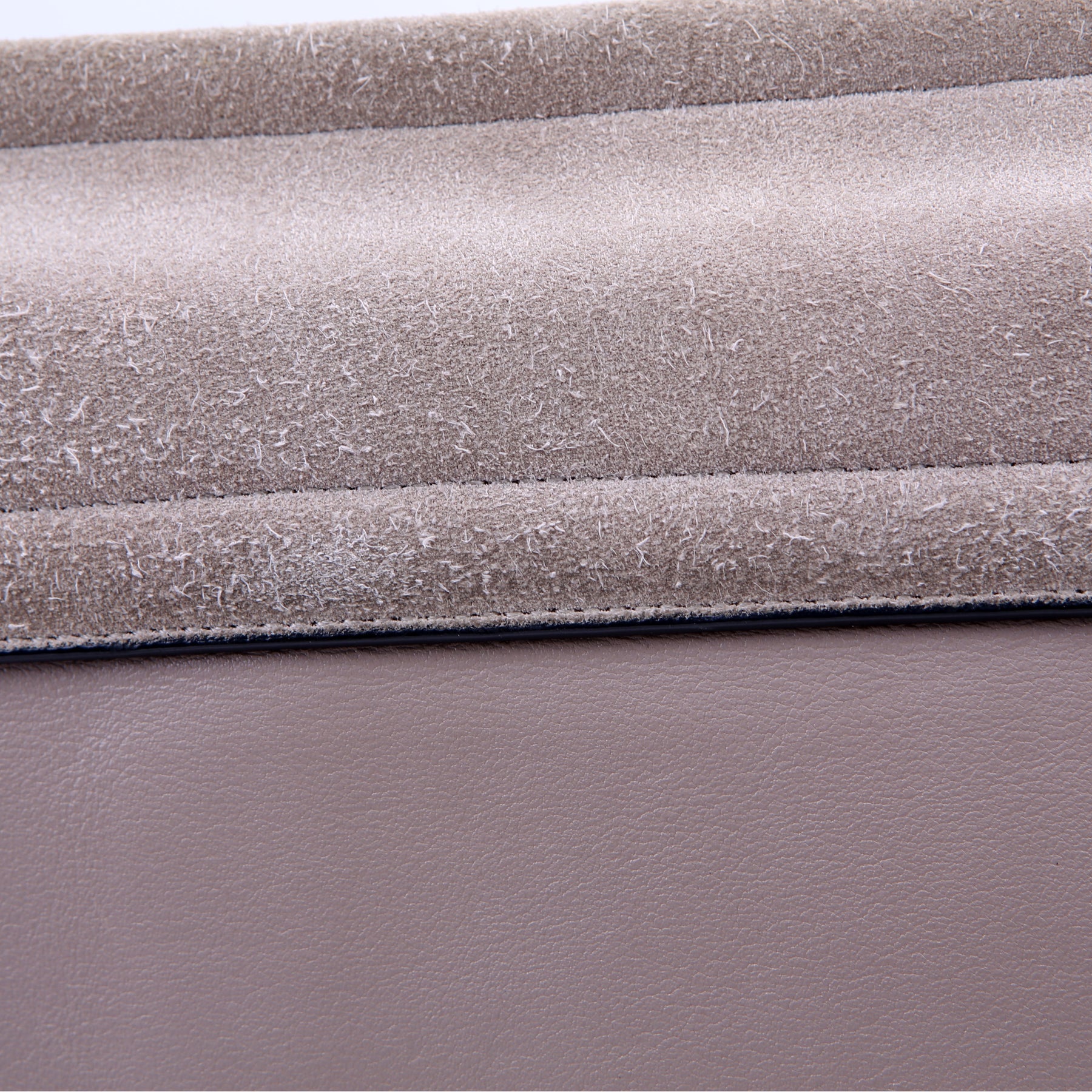Exterior: The exterior has minor marks and creases throughout the leather. The suede shows minor wear and discoloration.