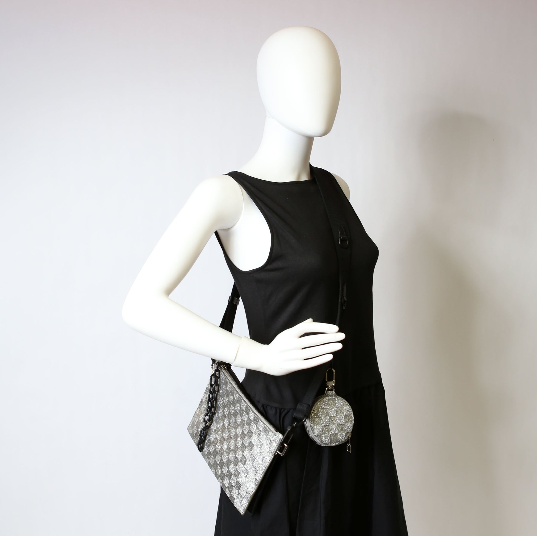 In The Loop Trio Pouch Damier Glitter Black/Silver