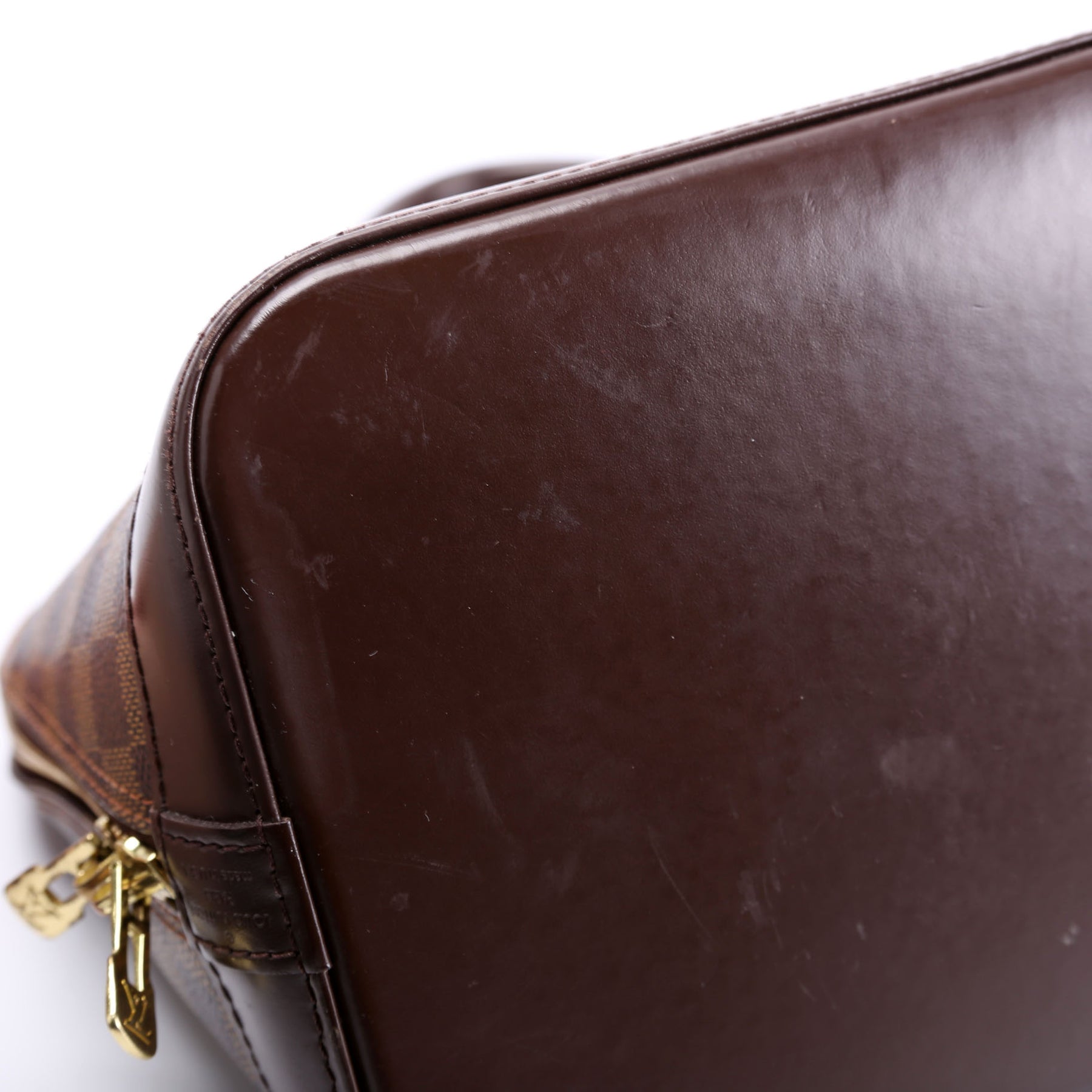 Hardware: The zipper operates properly and runs smoothly. The logo hardware shows minor scratches.