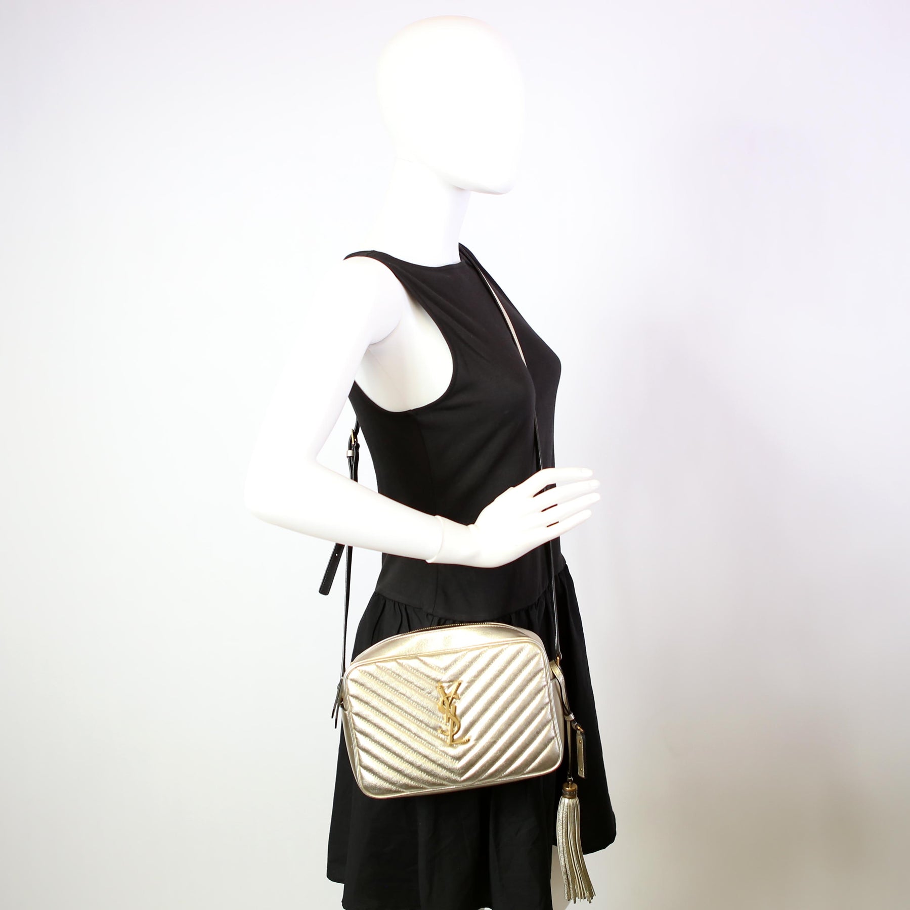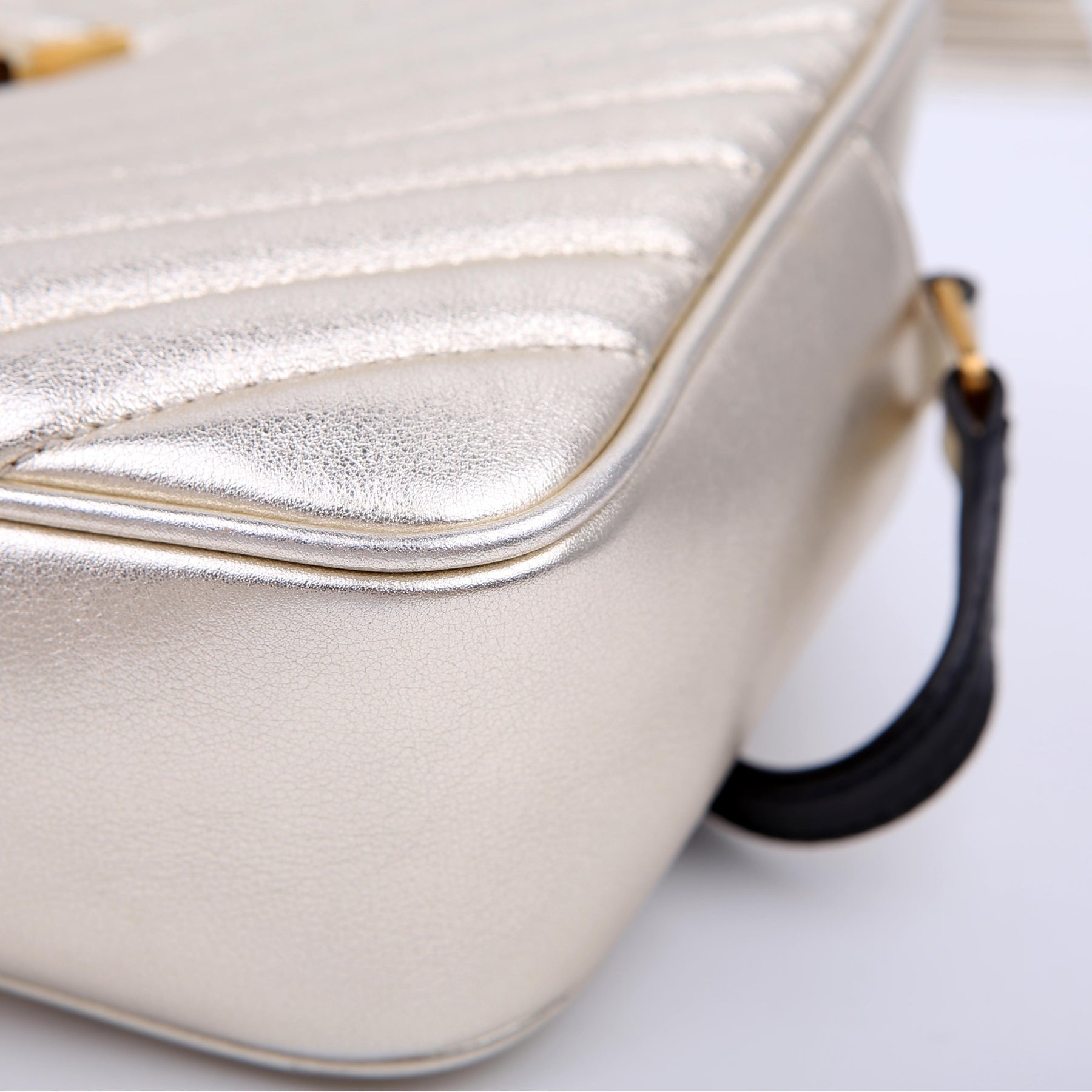 This pre-owned Saint Laurent Lou Camera Bag is guaranteed 100% authentic. The exterior is in the classic Saint Laurent Quilted Chevron leather.