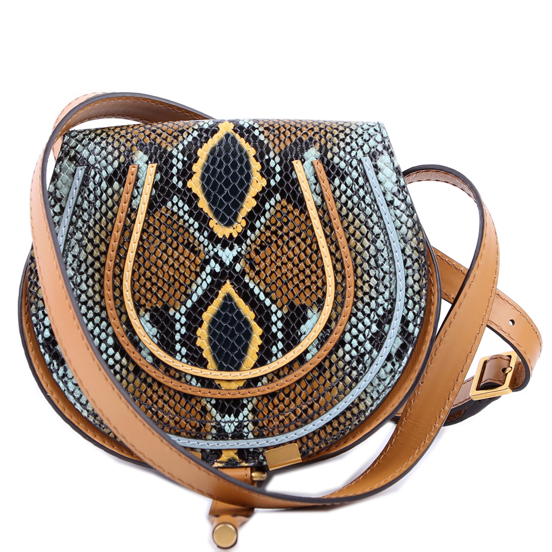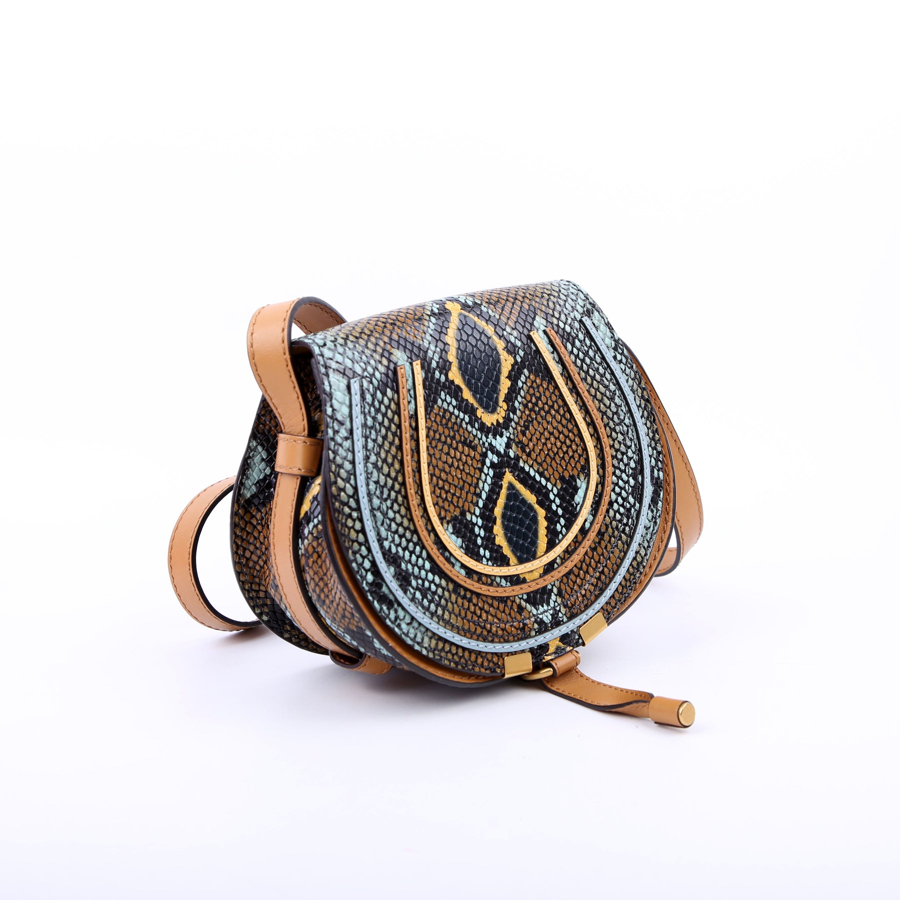 This pre-owned Chloe Marcie Saddle Bag Crossbody Small Snakeskin is guaranteed 100% authentic.