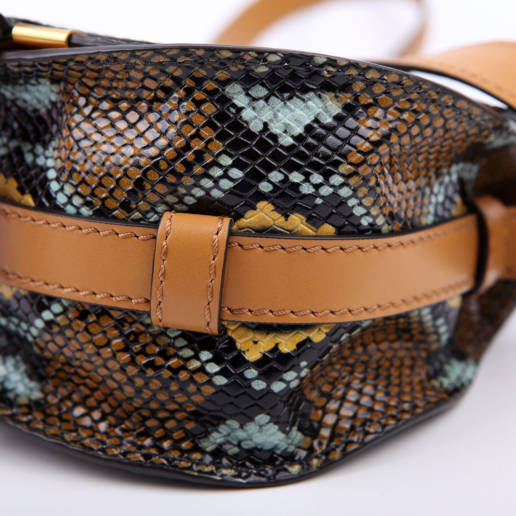 Marcie Saddle Bag Crossbody Small Snakeskin Brown/Blue