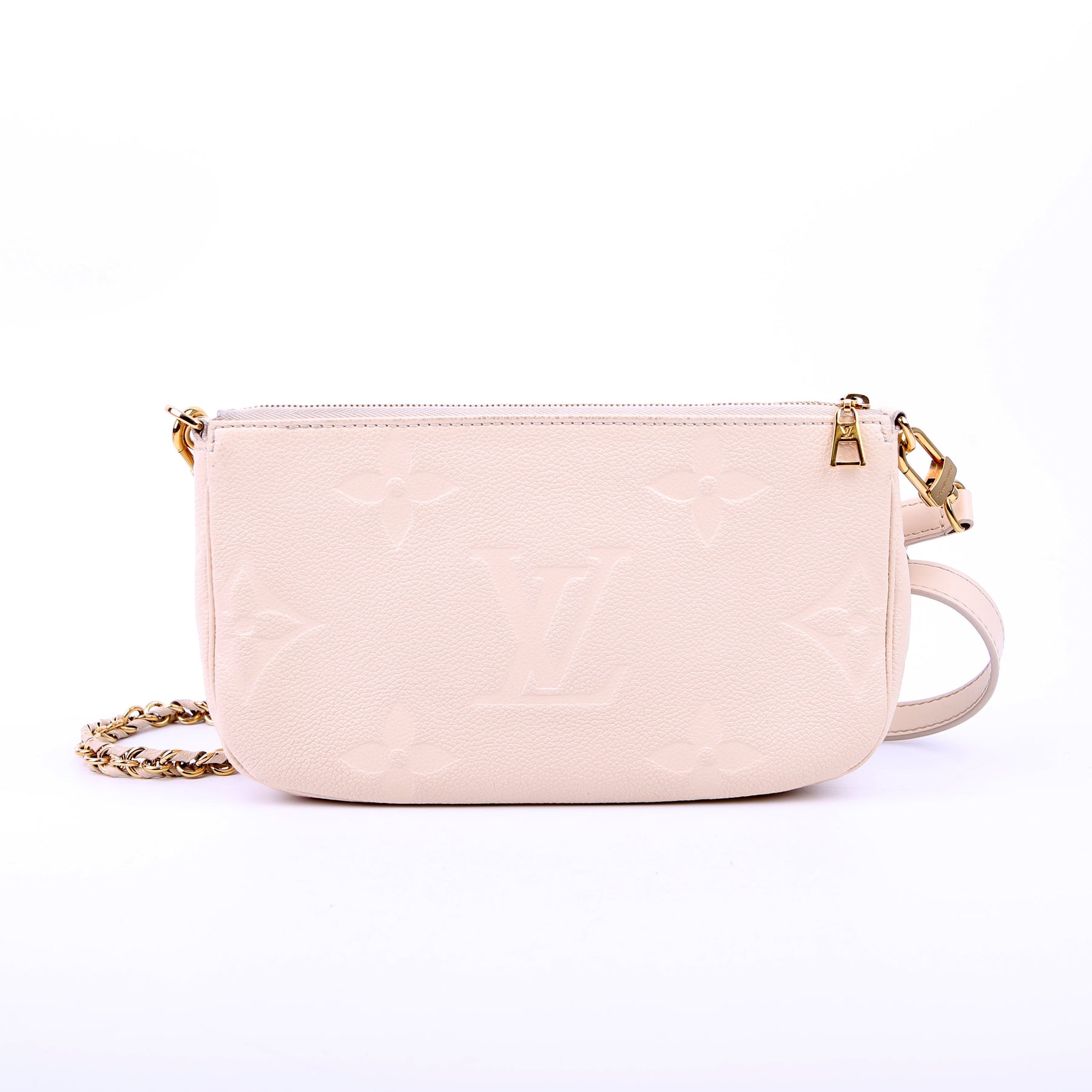 This pre-owned Louis Vuitton Multi Pochette is guaranteed 100% authentic. The exterior is in the classic Louis Vuitton Empreinte leather.