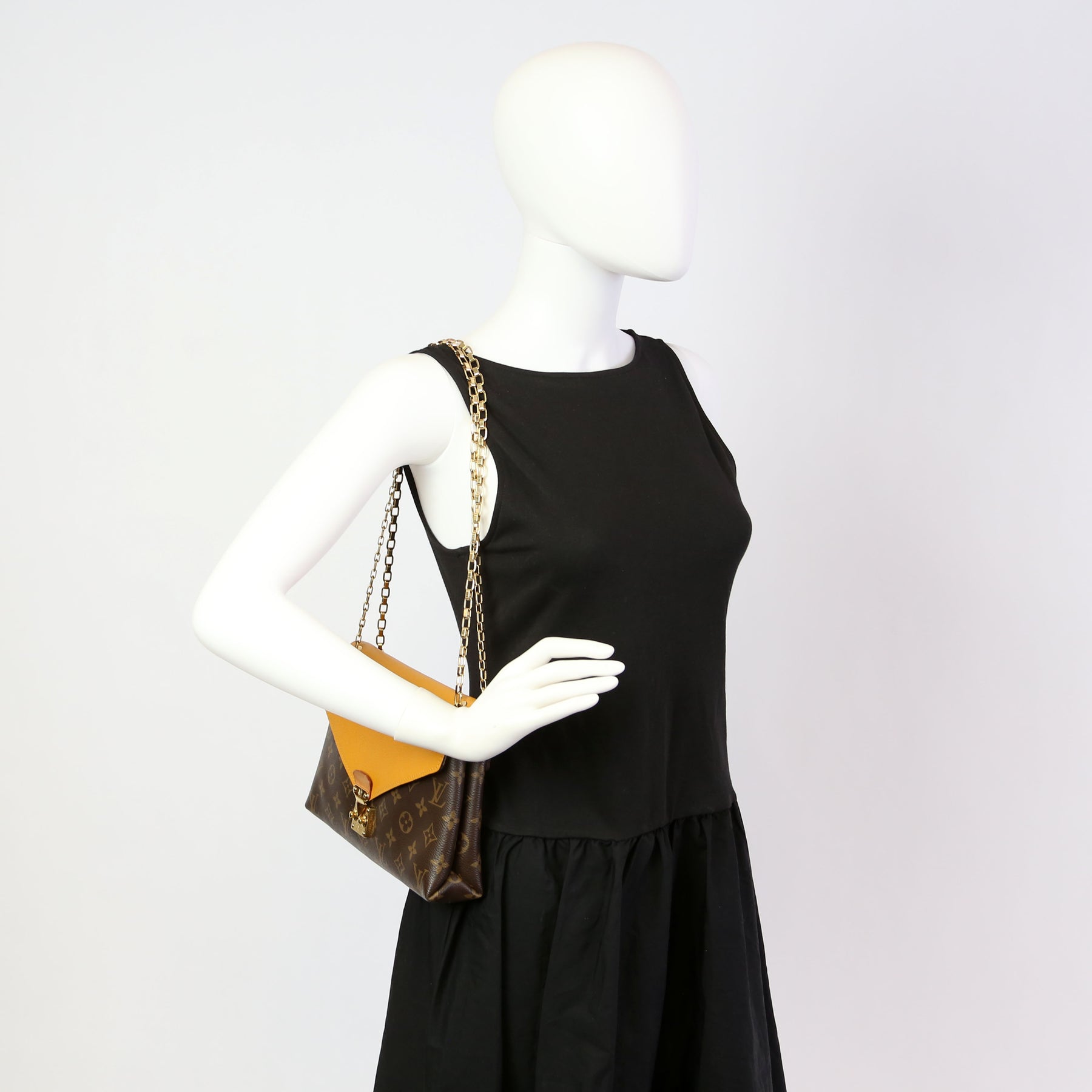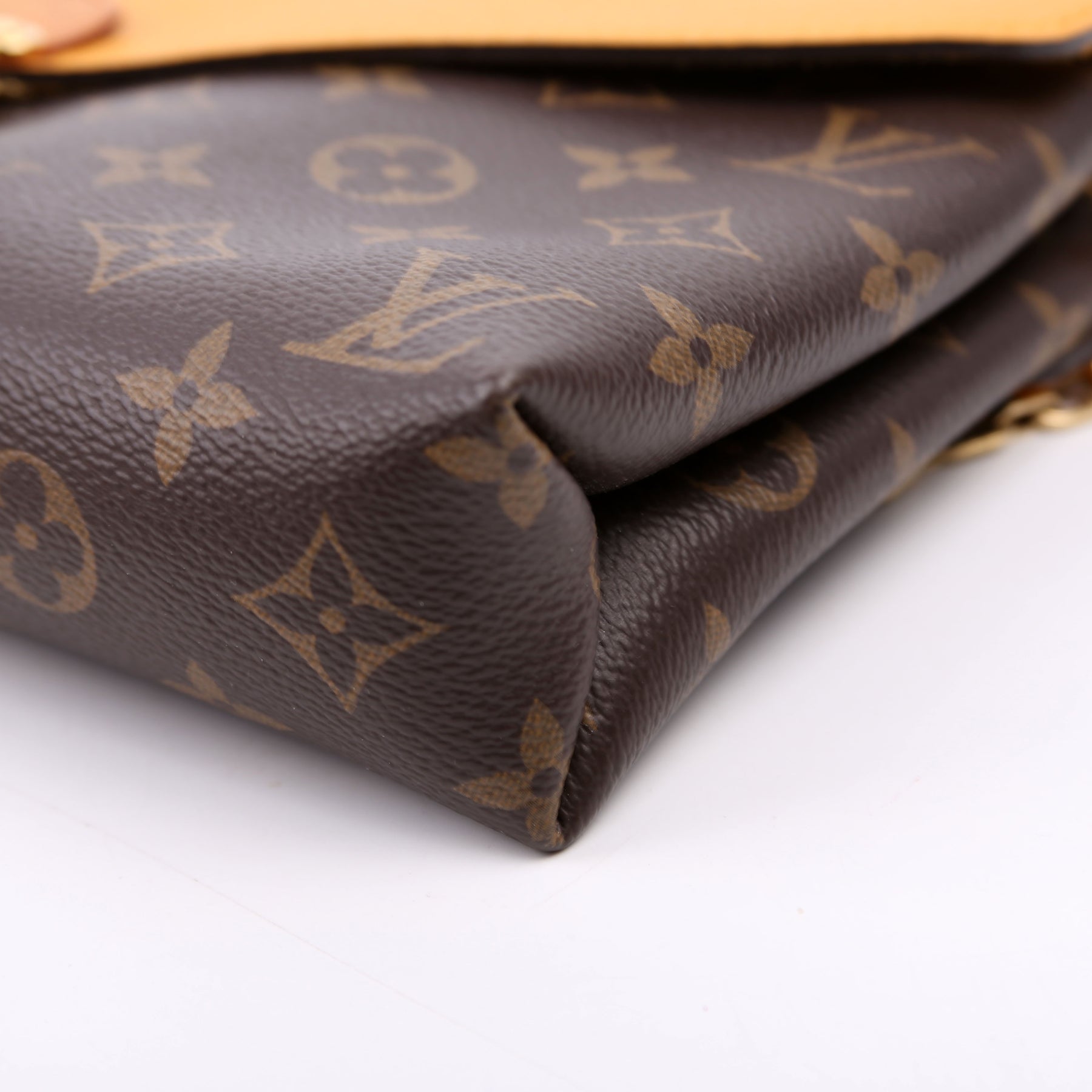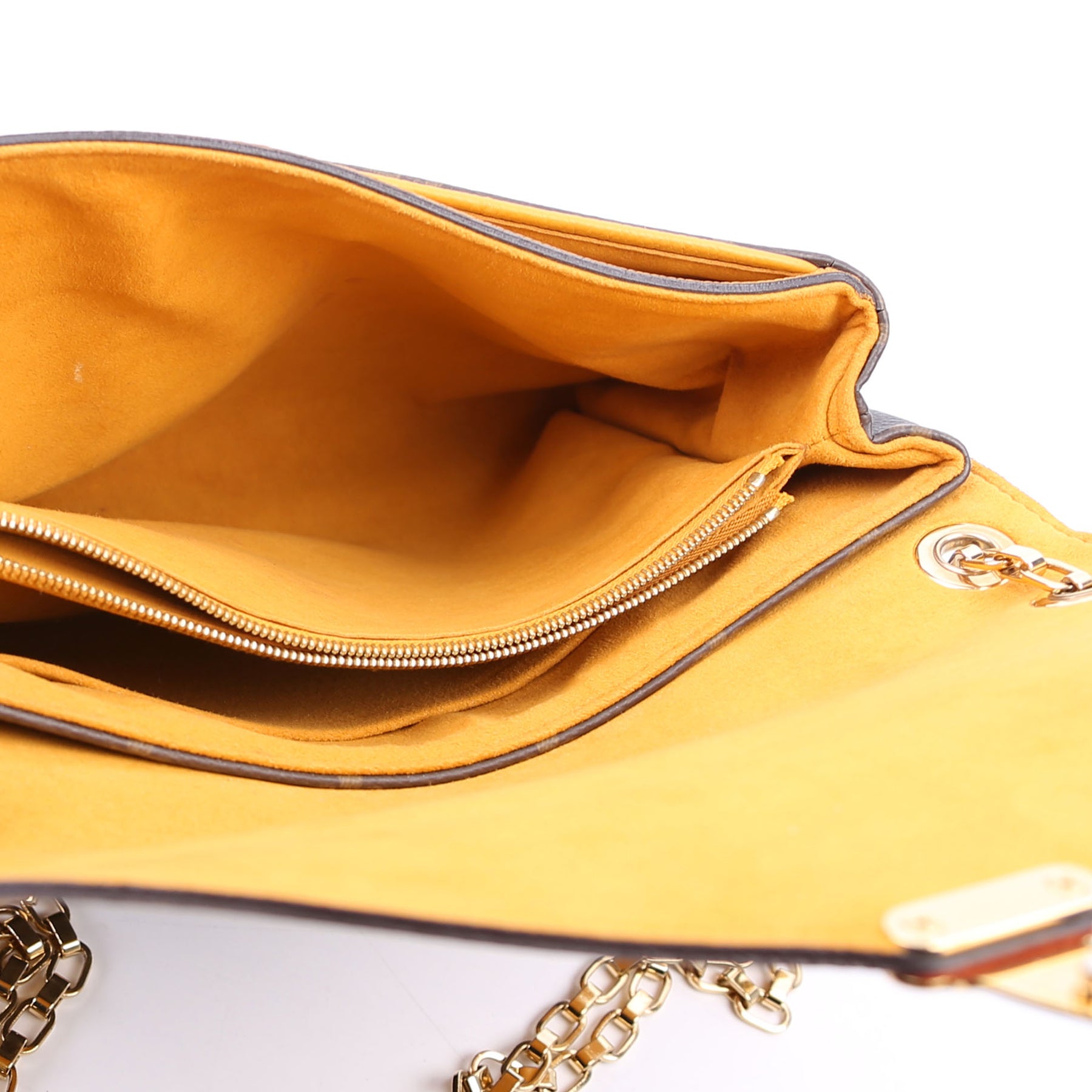 This pre-owned Louis Vuitton Pallas Chain is guaranteed 100% authentic. The exterior is in the classic Louis Vuitton Monogram coated canvas.