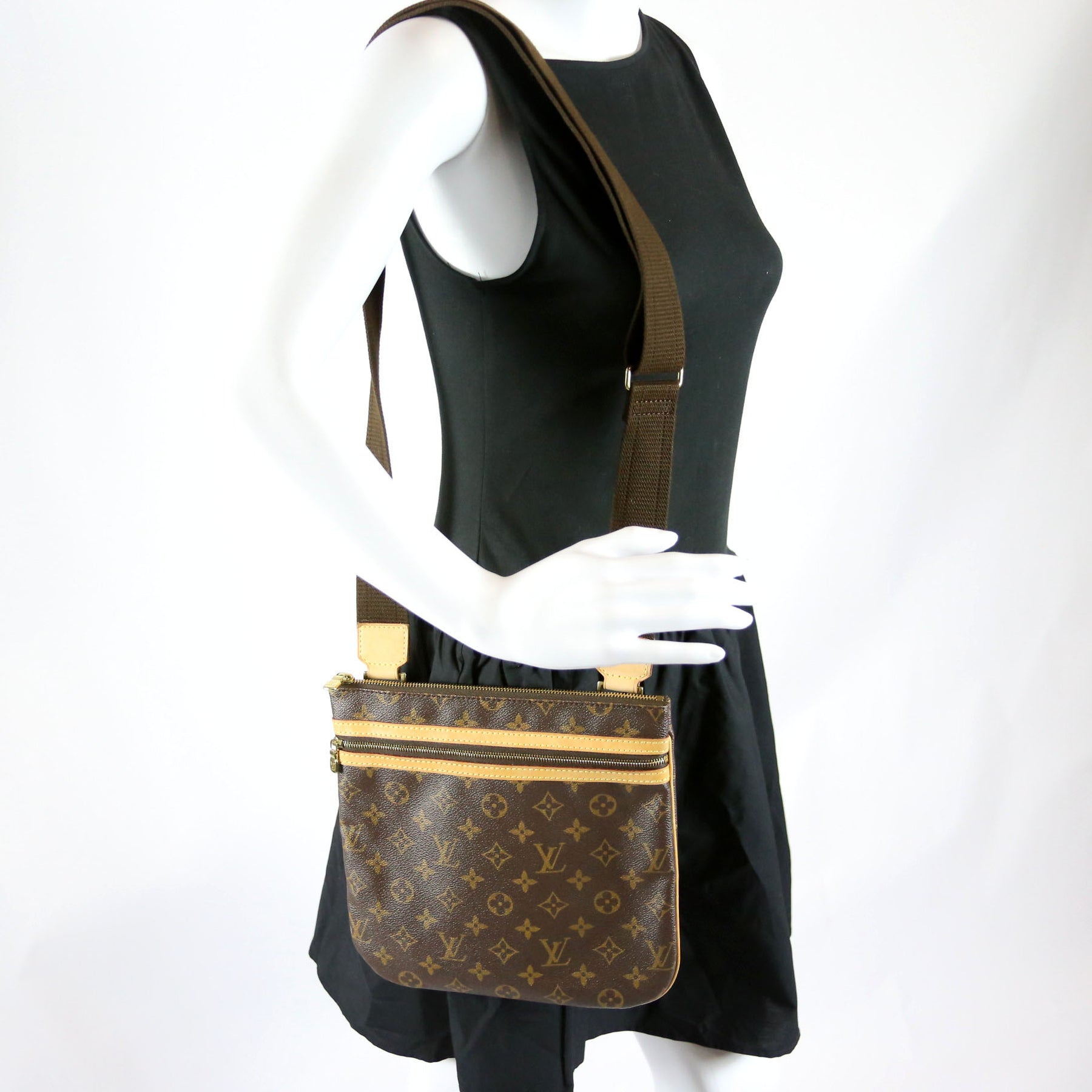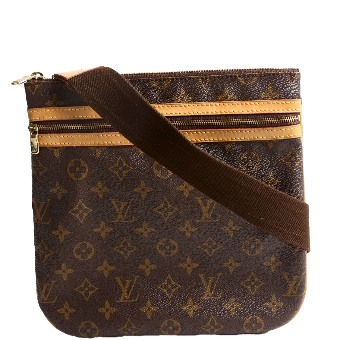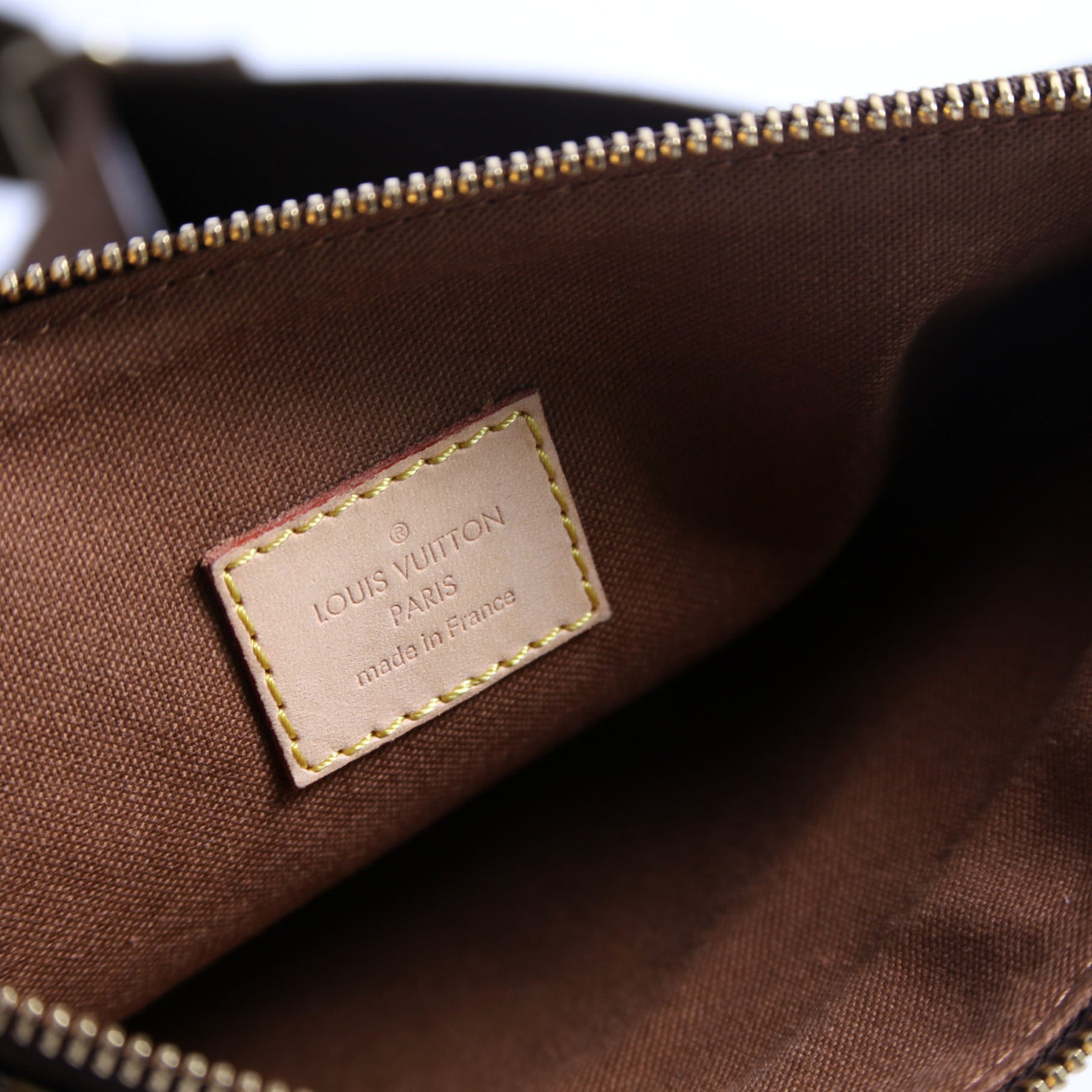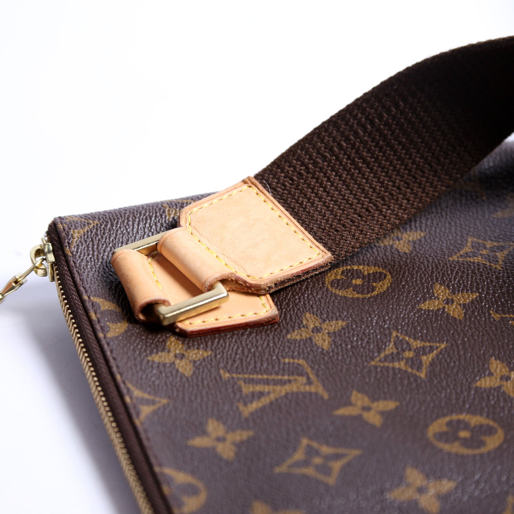 This pre-owned Louis Vuitton Pochette Bosphore is guaranteed 100% authentic. The exterior is in the classic Louis Vuitton Coated Canvas Monogram
