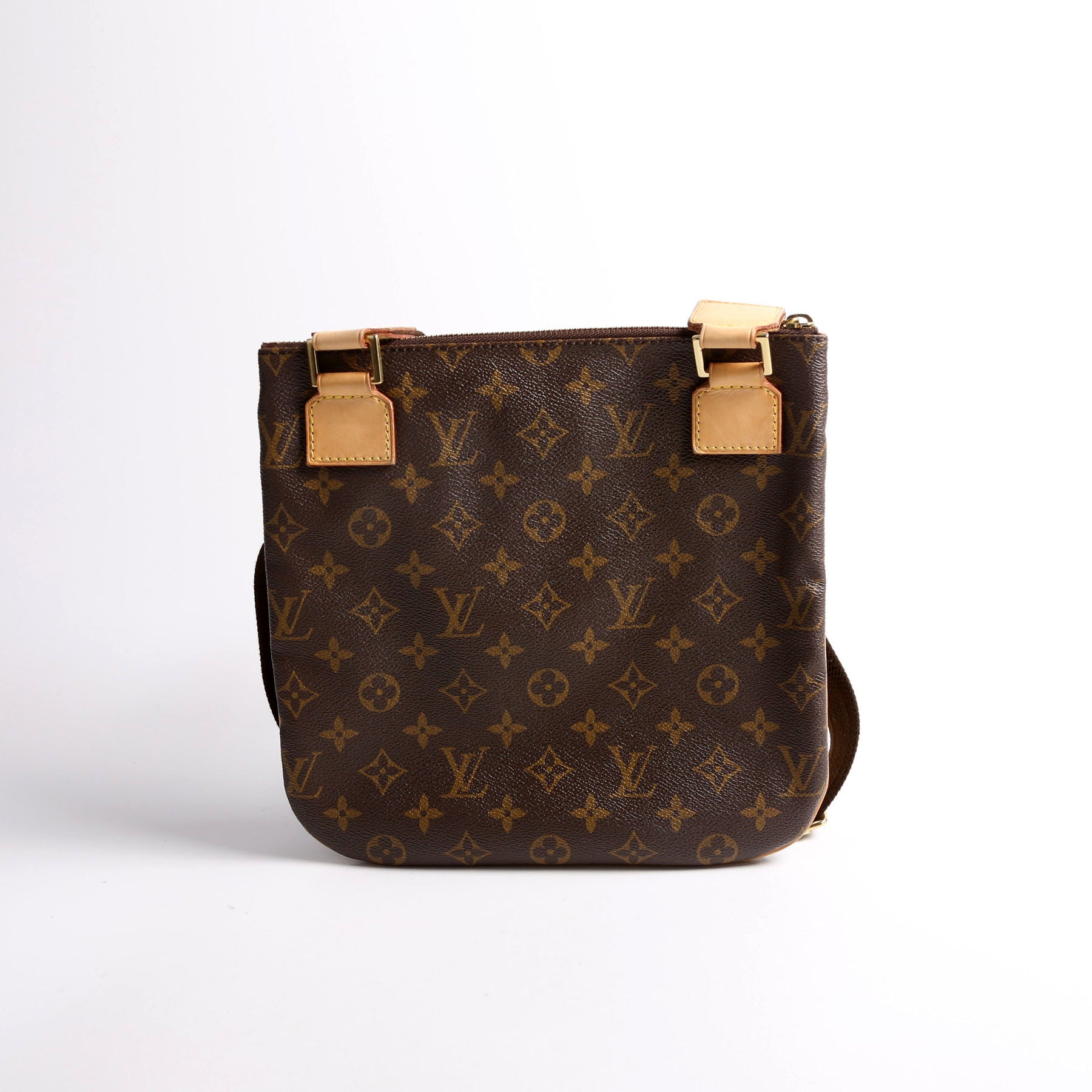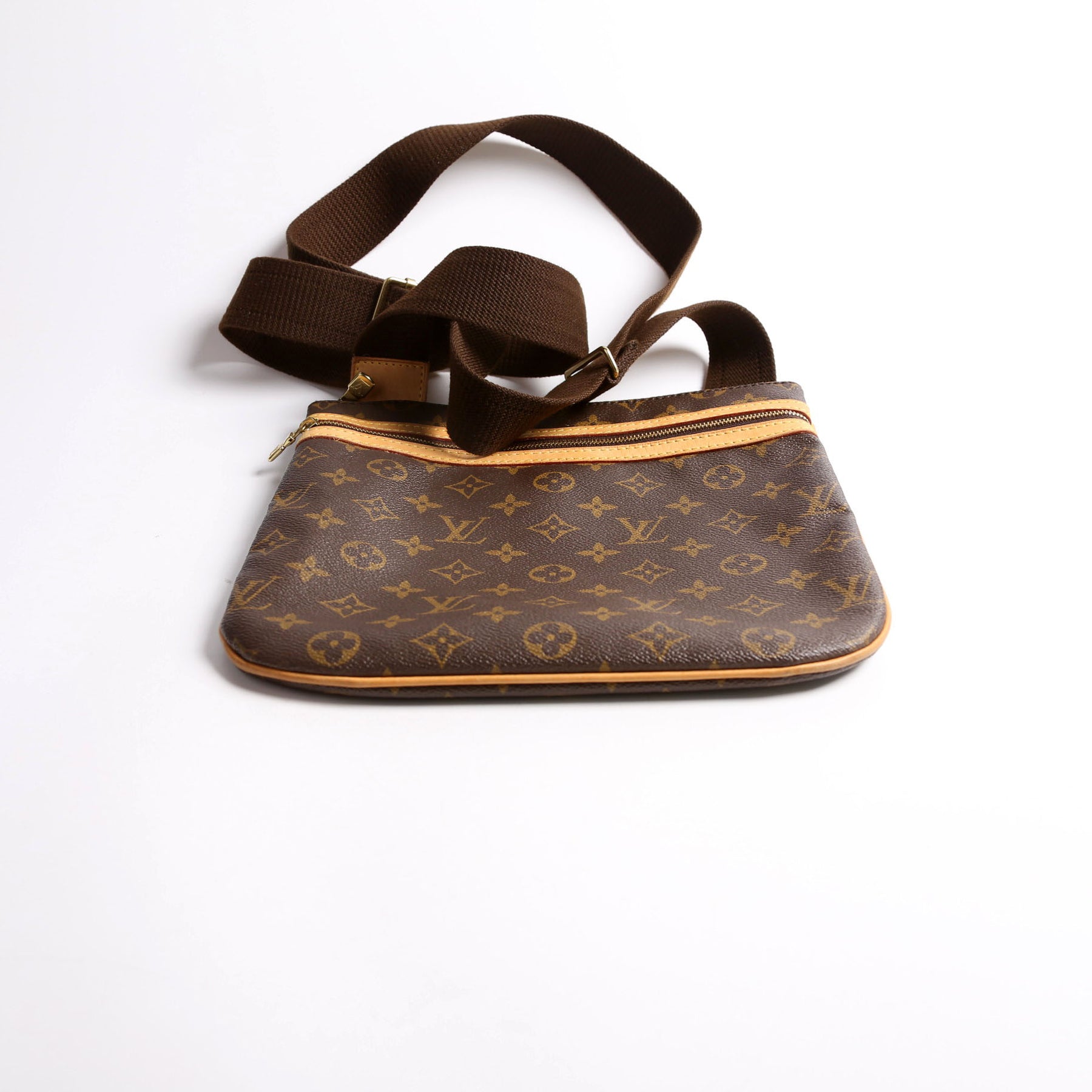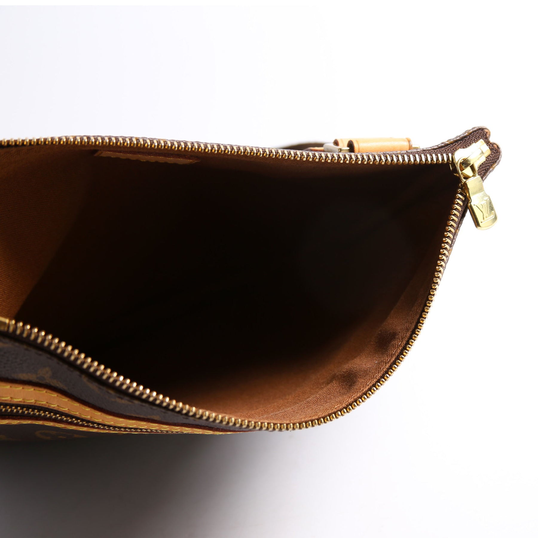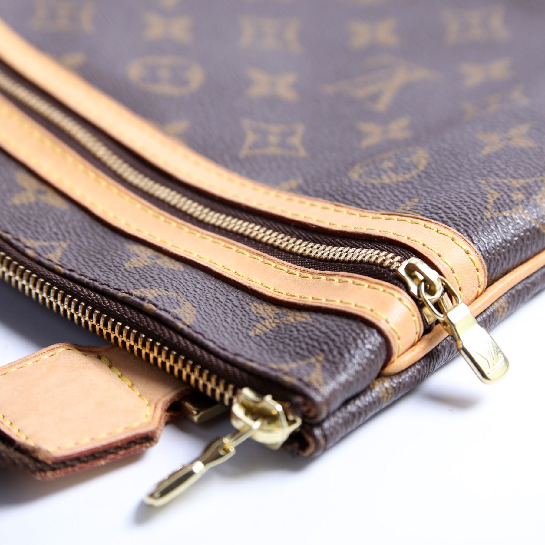 This pre-owned Louis Vuitton Pochette Bosphore is guaranteed 100% authentic. The exterior is in the classic Louis Vuitton Coated Canvas Monogram