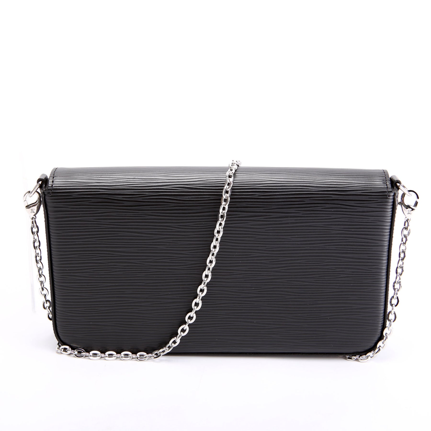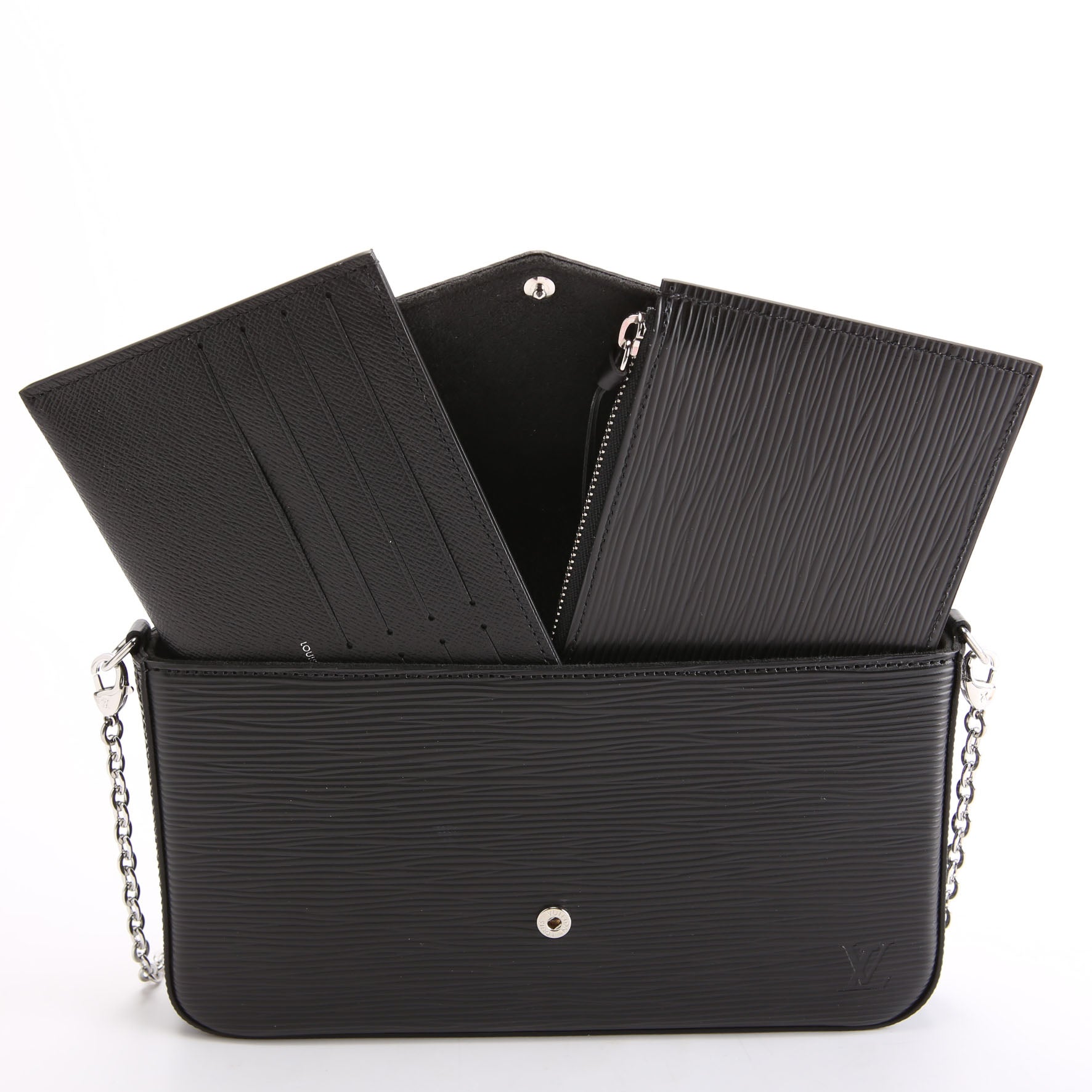 This pre-owned Pochette Felicie is guaranteed 100% authentic. The exterior is in the classic Louis Vuitton Epi leather.