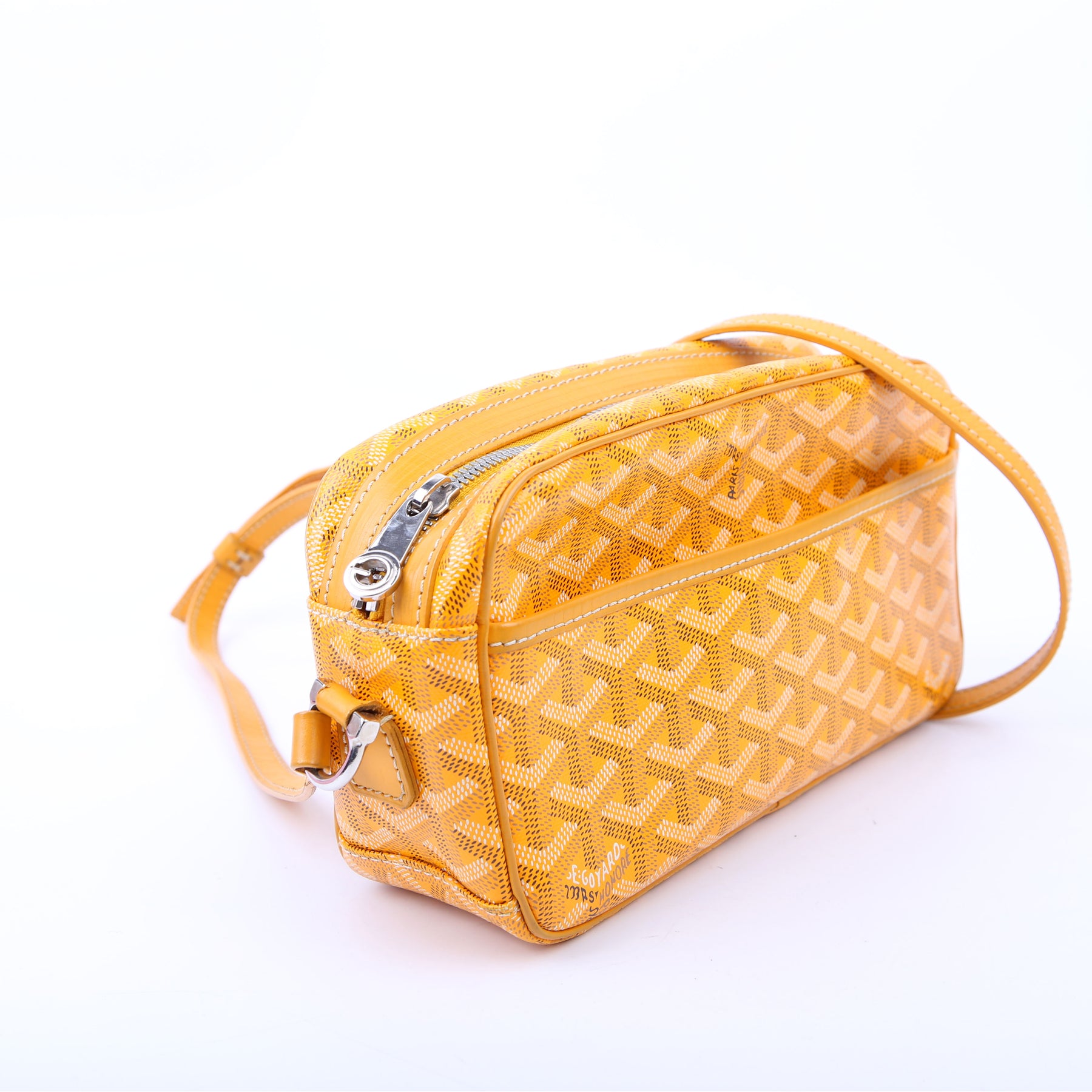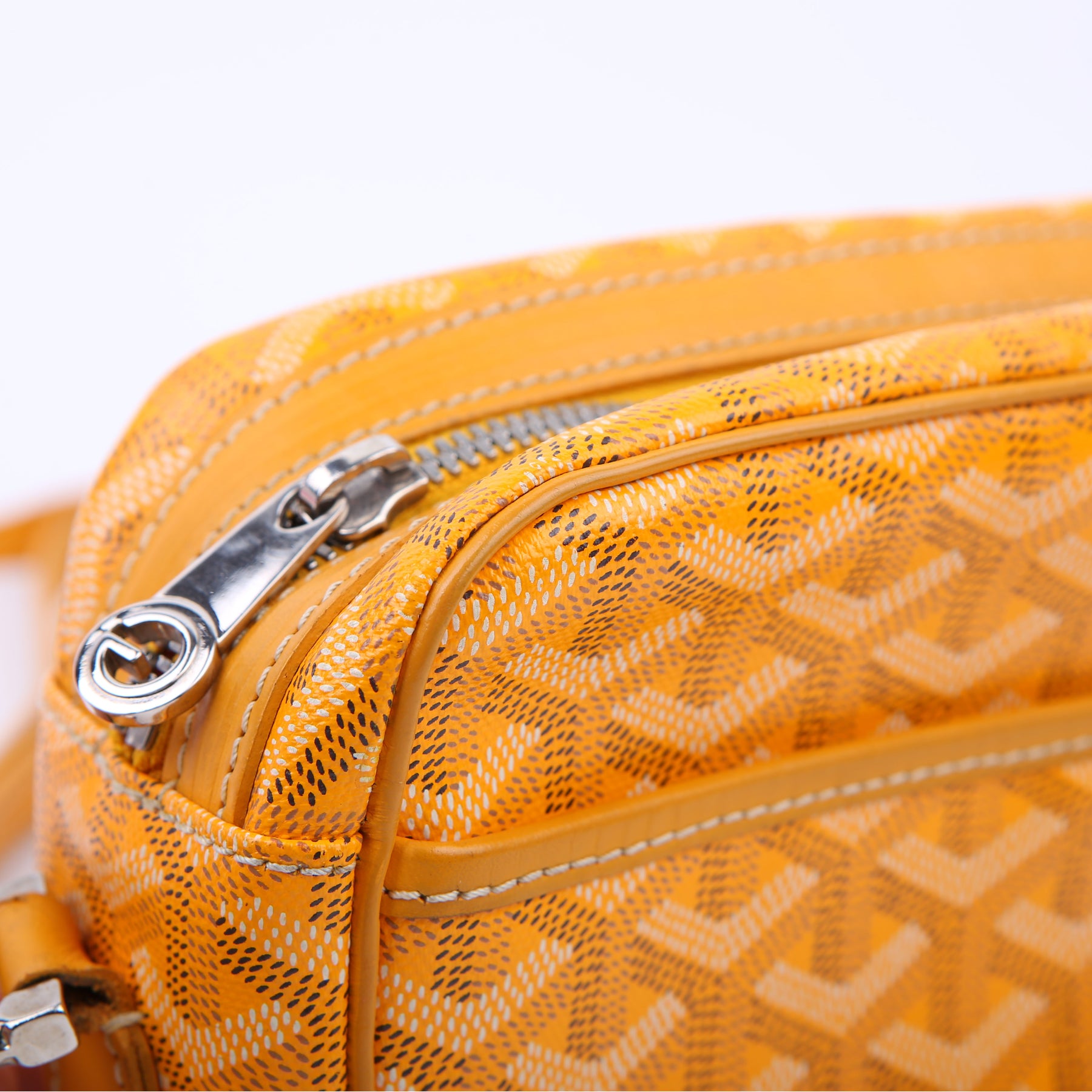 This pre-owned Goyard Sac Cap Vert is guaranteed 100% authentic. The exterior is in the classic Goyard Goyardine coated canvas.