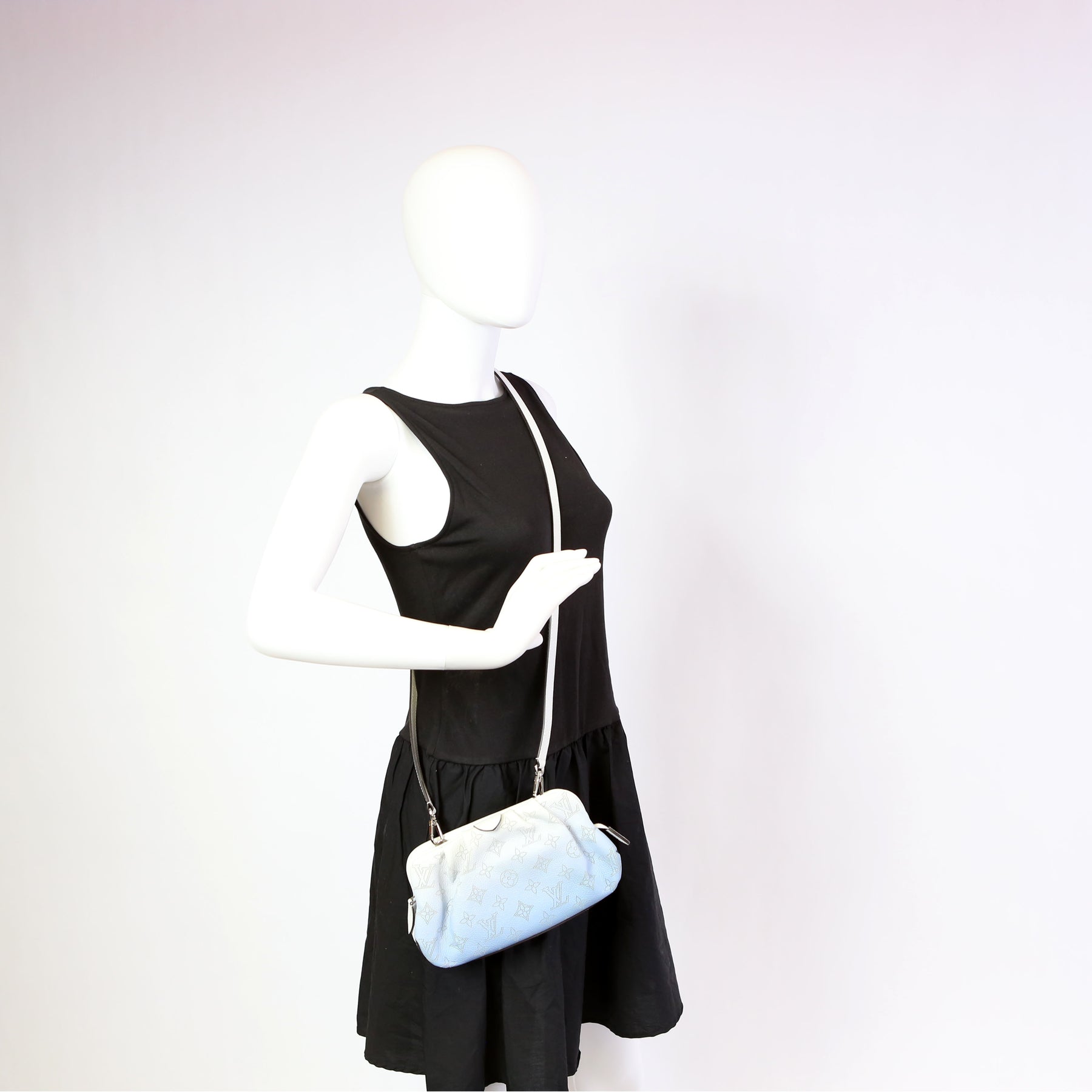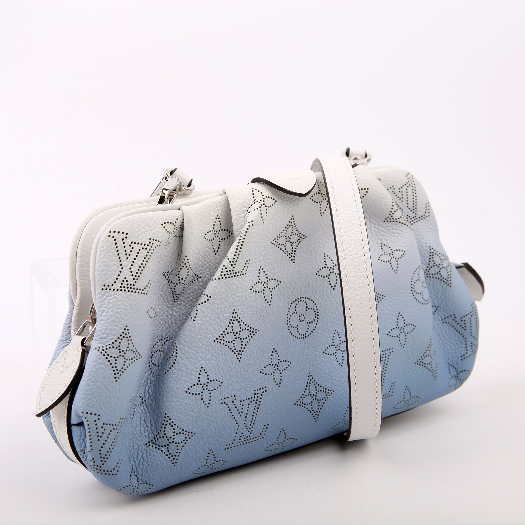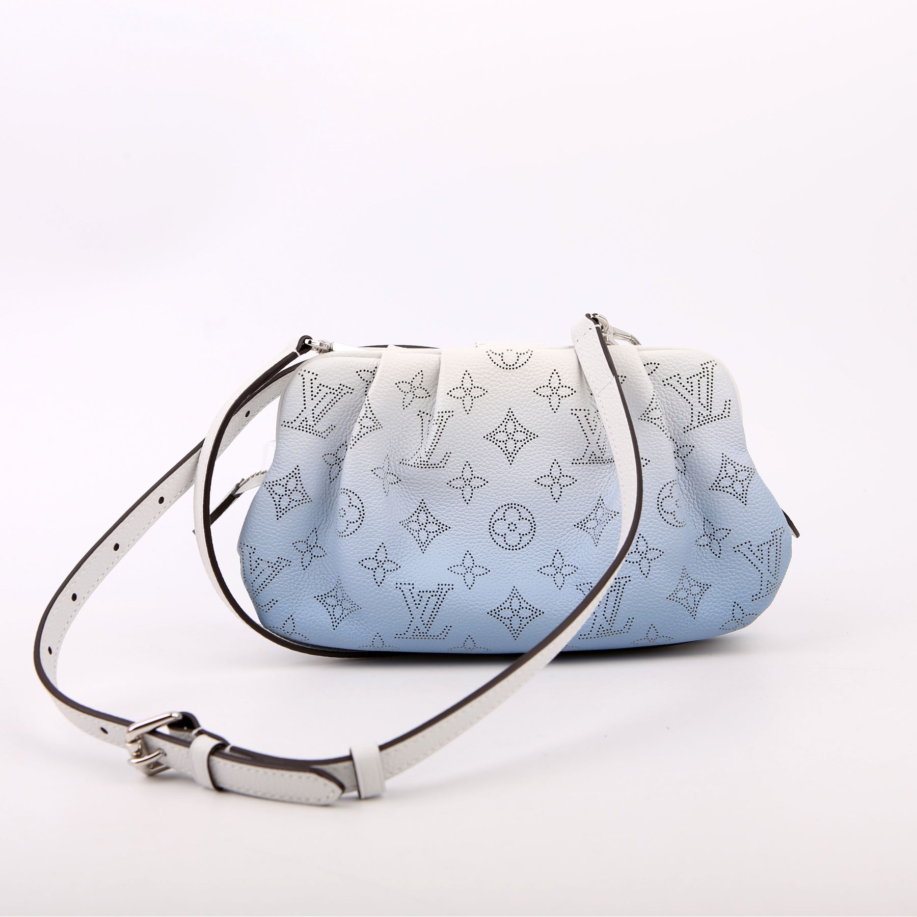 This pre-owned Louis Vuitton Scala Pouch Mini is guaranteed 100% authentic. The exterior is in the classic Louis Vuitton Mahina Leather.