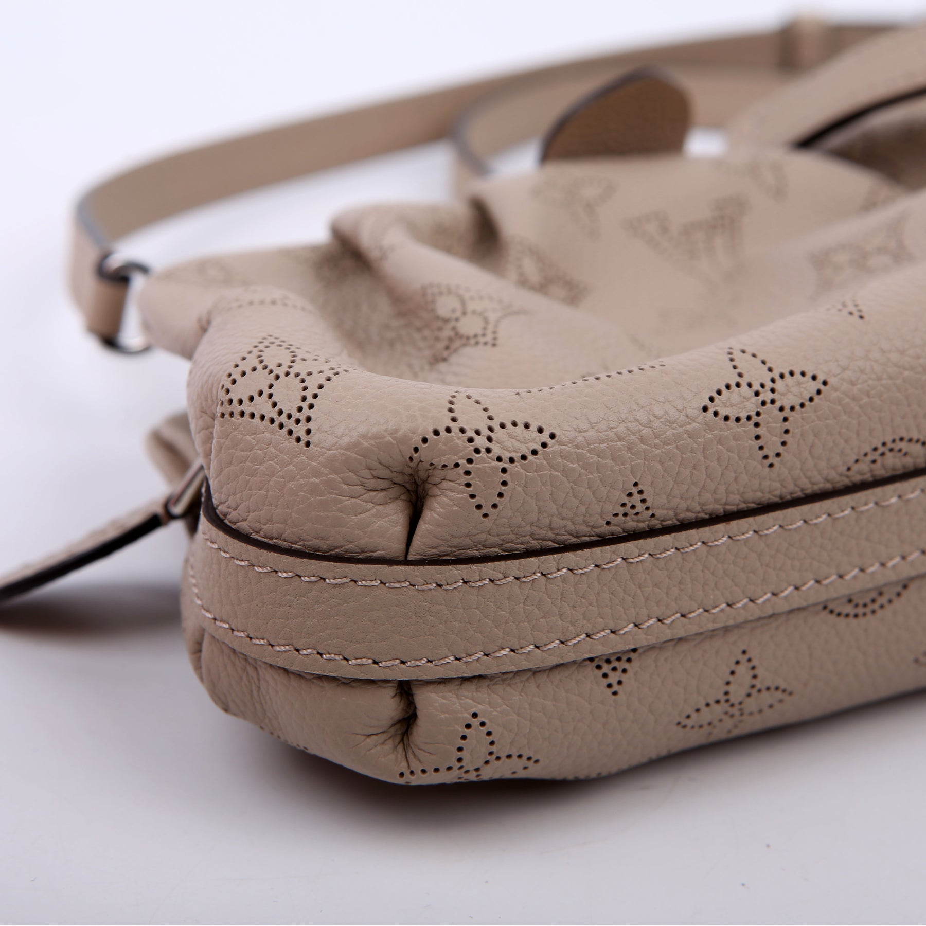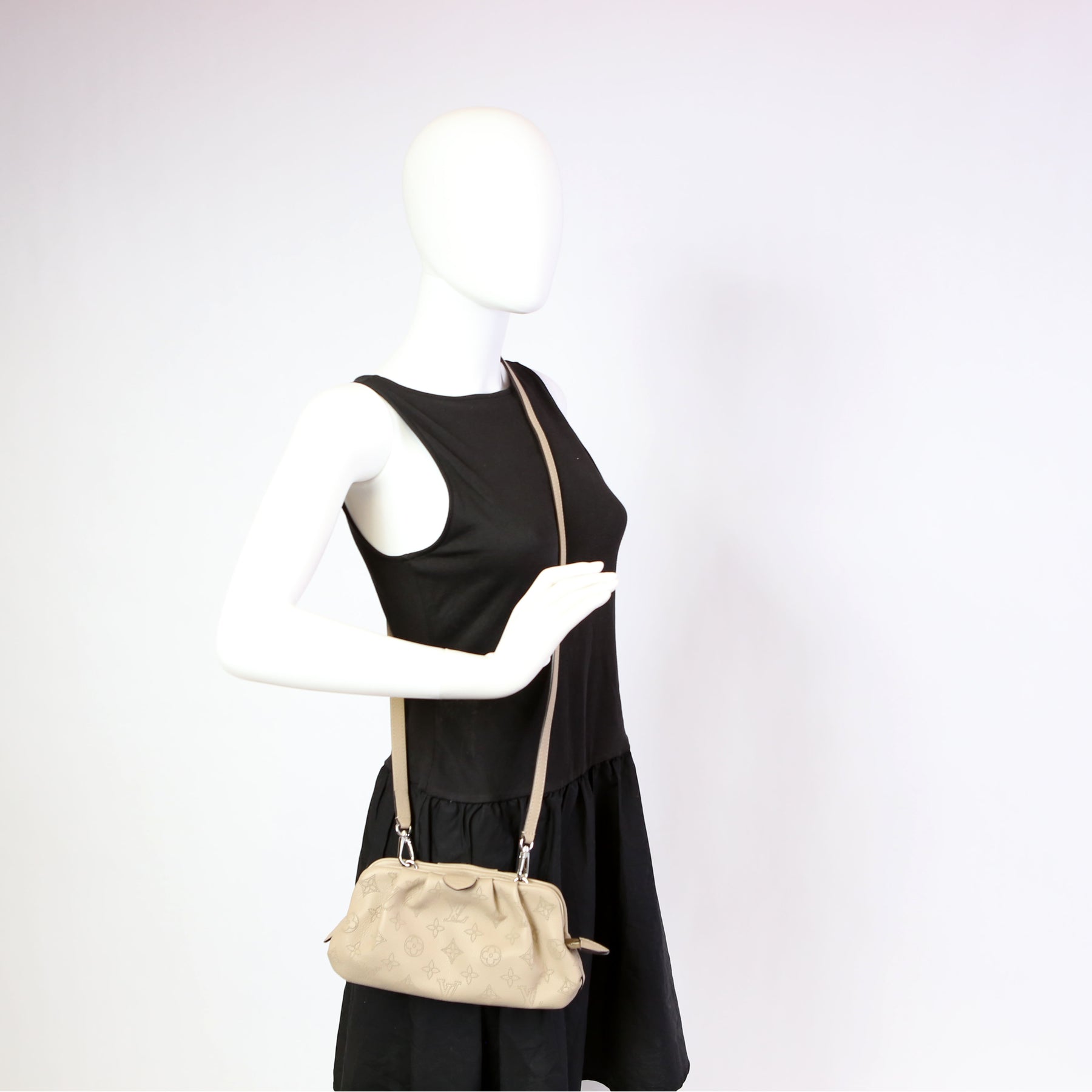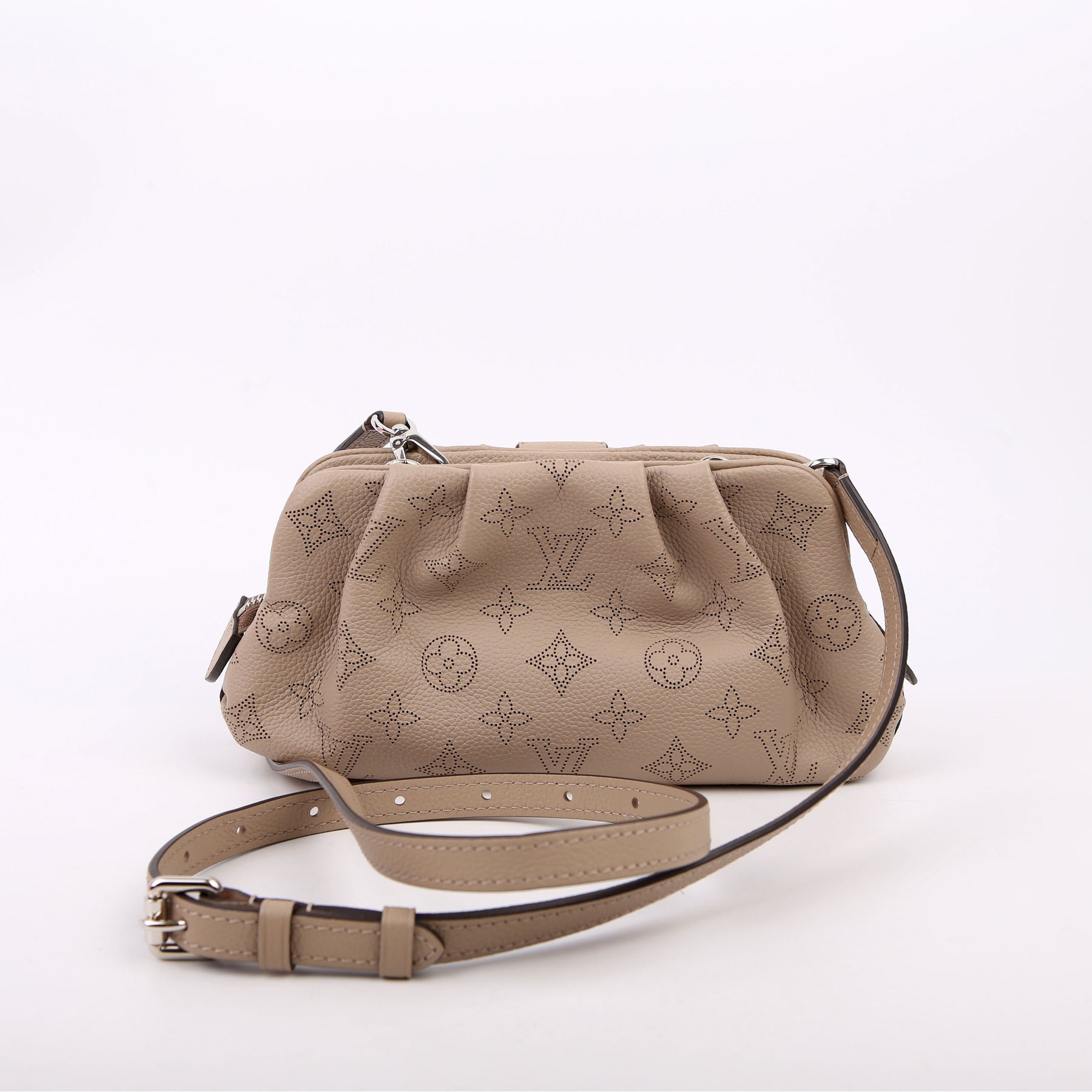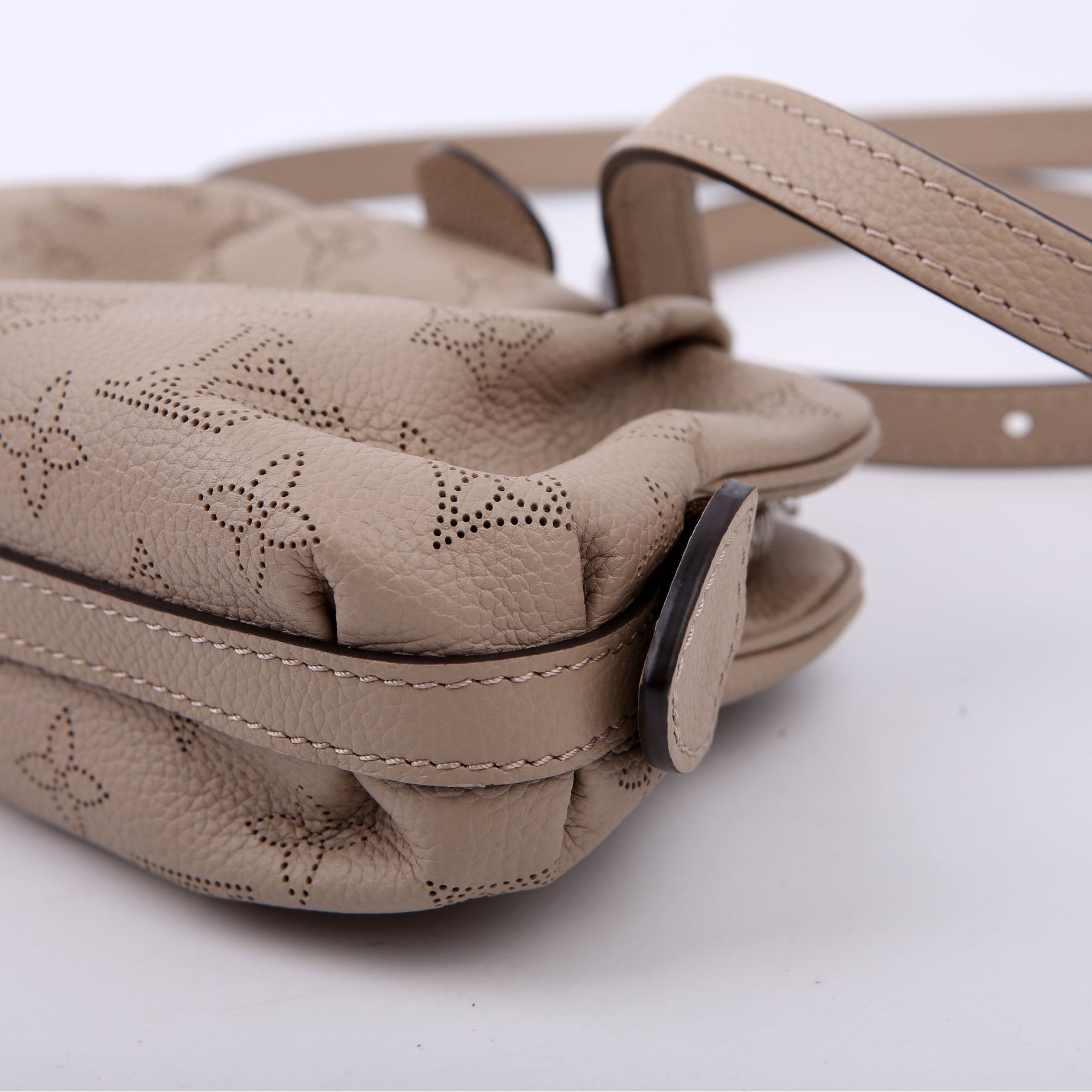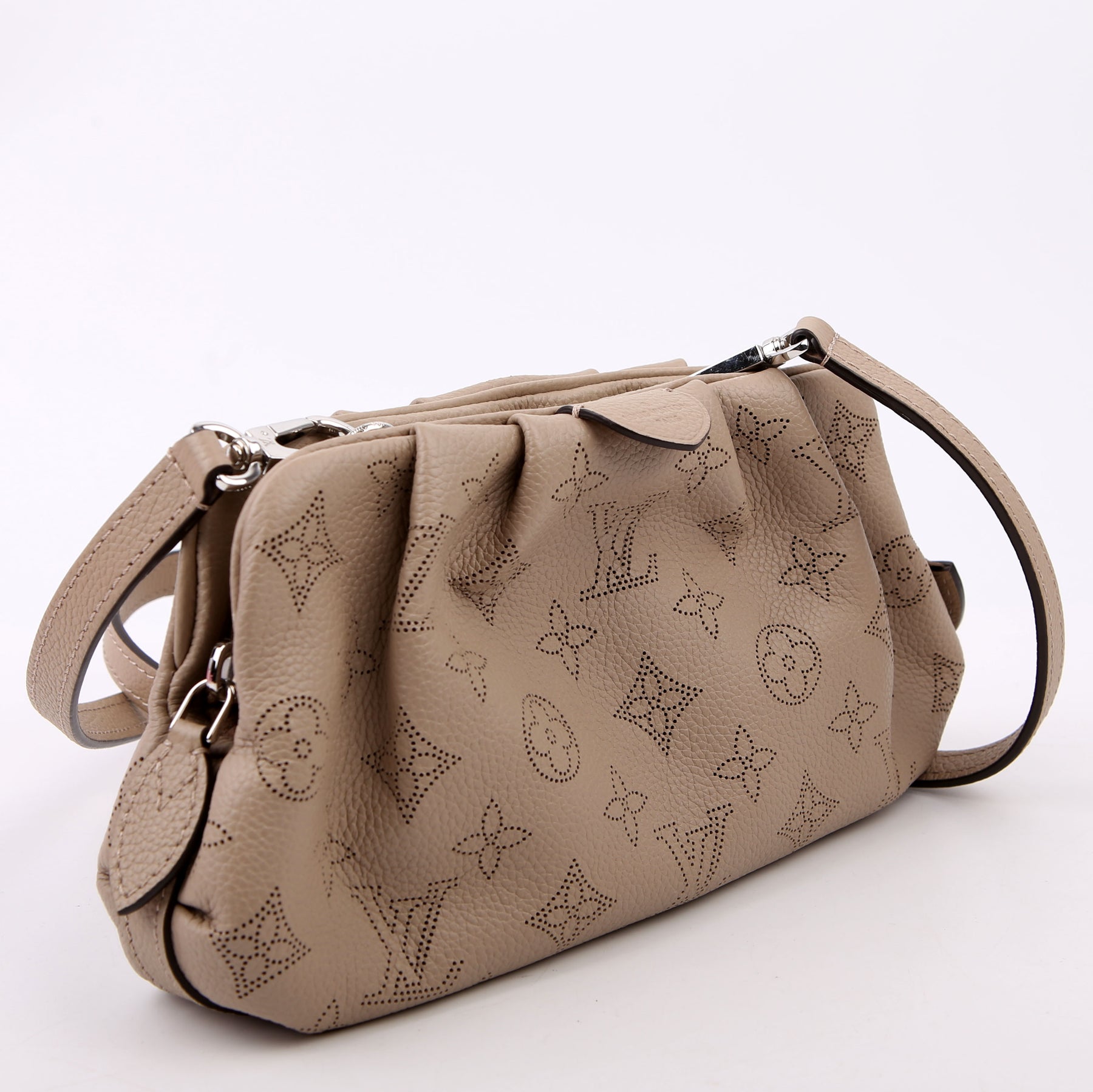 This pre-owned Louis Vuitton Scala Pouch Mini is guaranteed 100% authentic. The exterior is in the classic Louis Vuitton Mahina Leather.