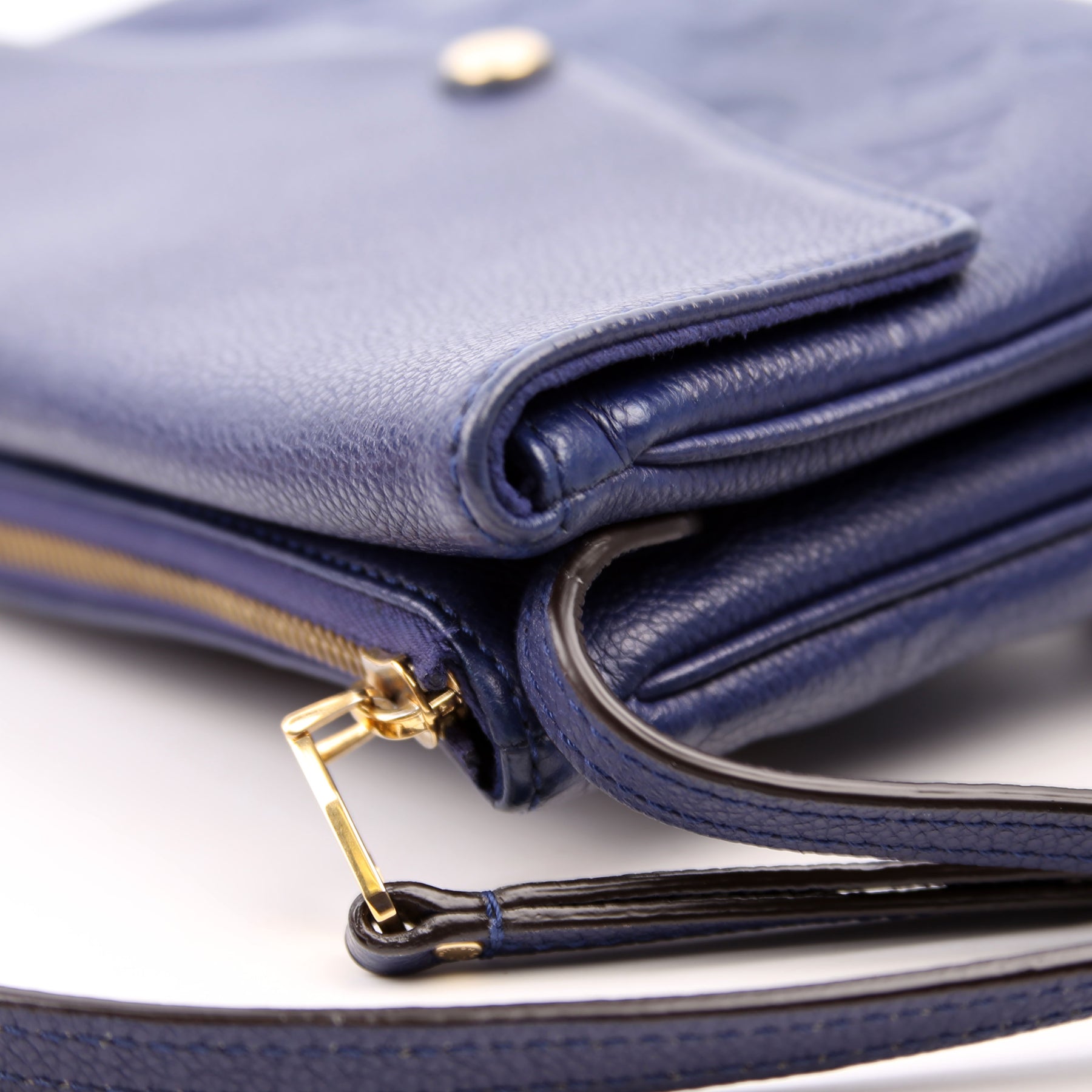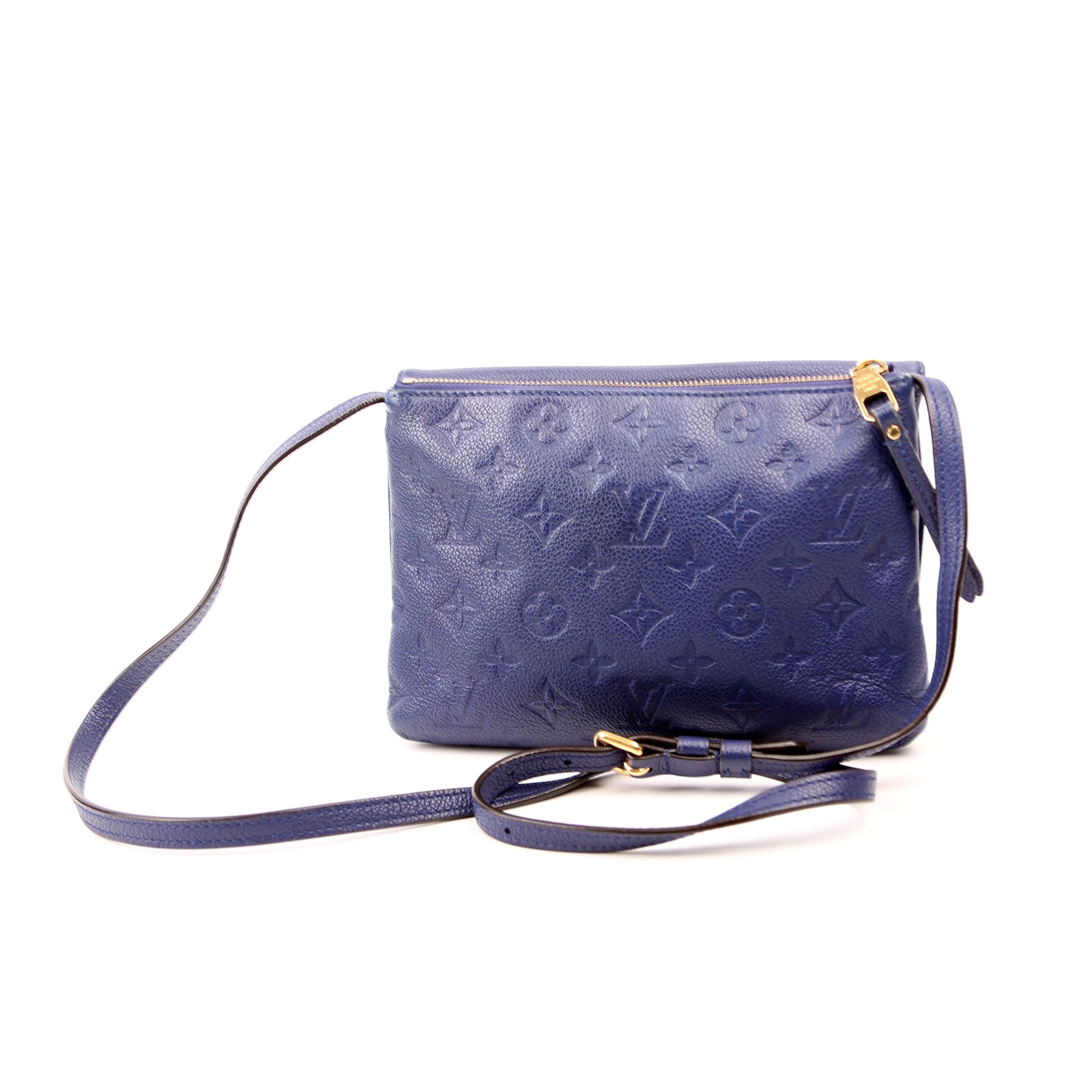 This pre-owned Louis Vuitton Twice Bag is guaranteed 100% authentic. The exterior is in the classic Louis Vuitton Empreinte leather.