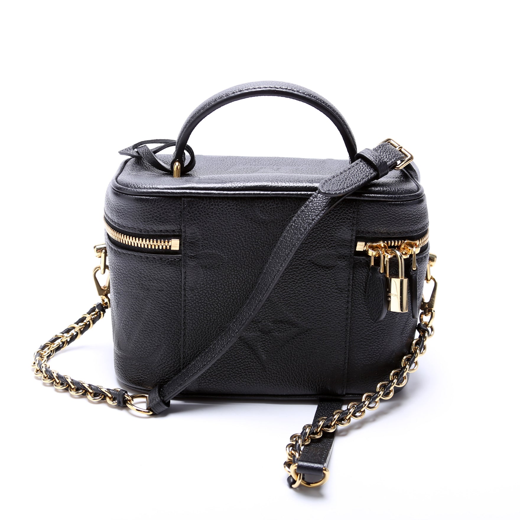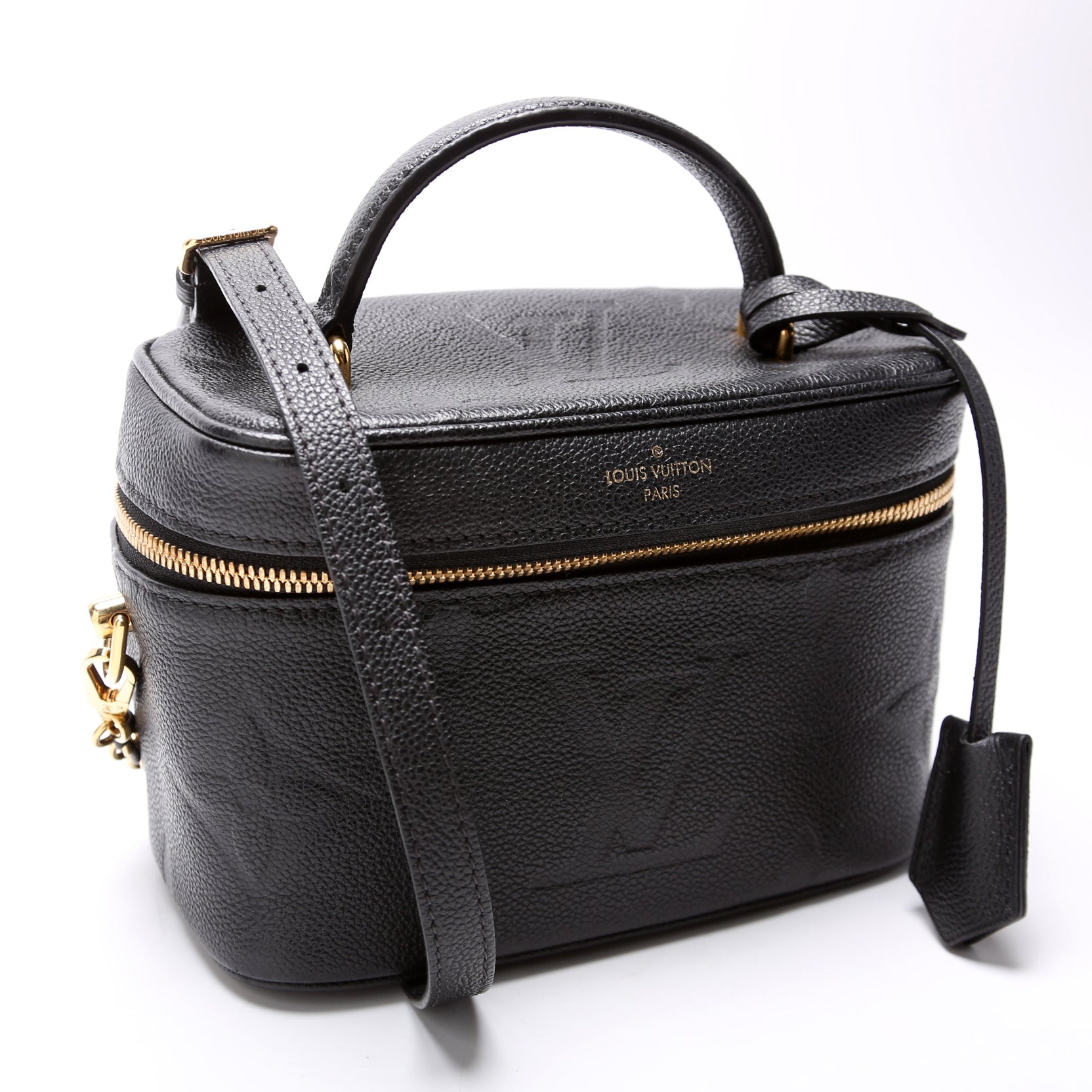 This pre-owned Louis Vuitton Vanity PM is guaranteed 100% authentic. The exterior is in the classic Louis Vuitton Empreinte leather.