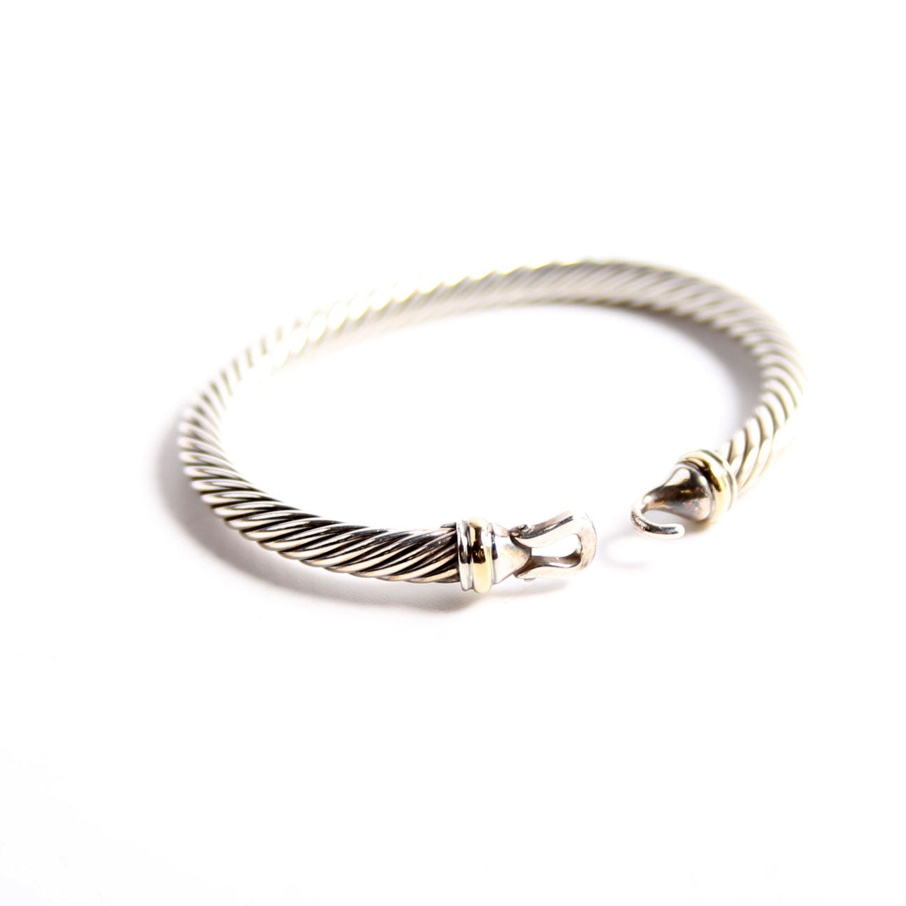 This pre-owned David Yurman Classic Cable 5MM Buckle Bracelet 925/585 is guaranteed 100% authentic.