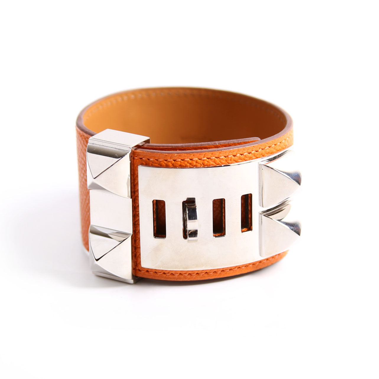 Collier De Chien Epsom Leather Bracelet Orange/Silver