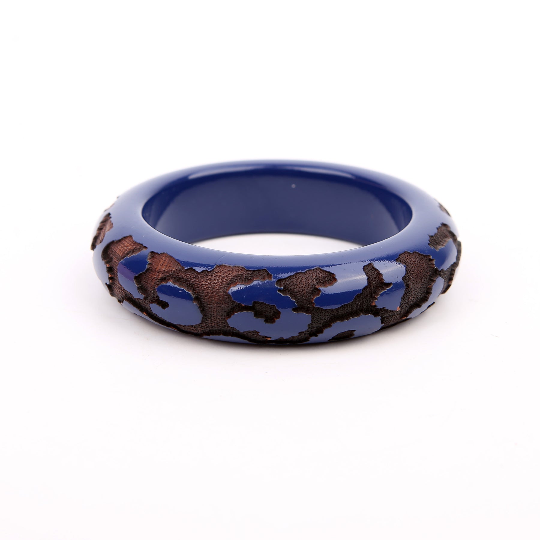 Leomonogram Lacquer/Wood Bangle Wide Bracelet Navy