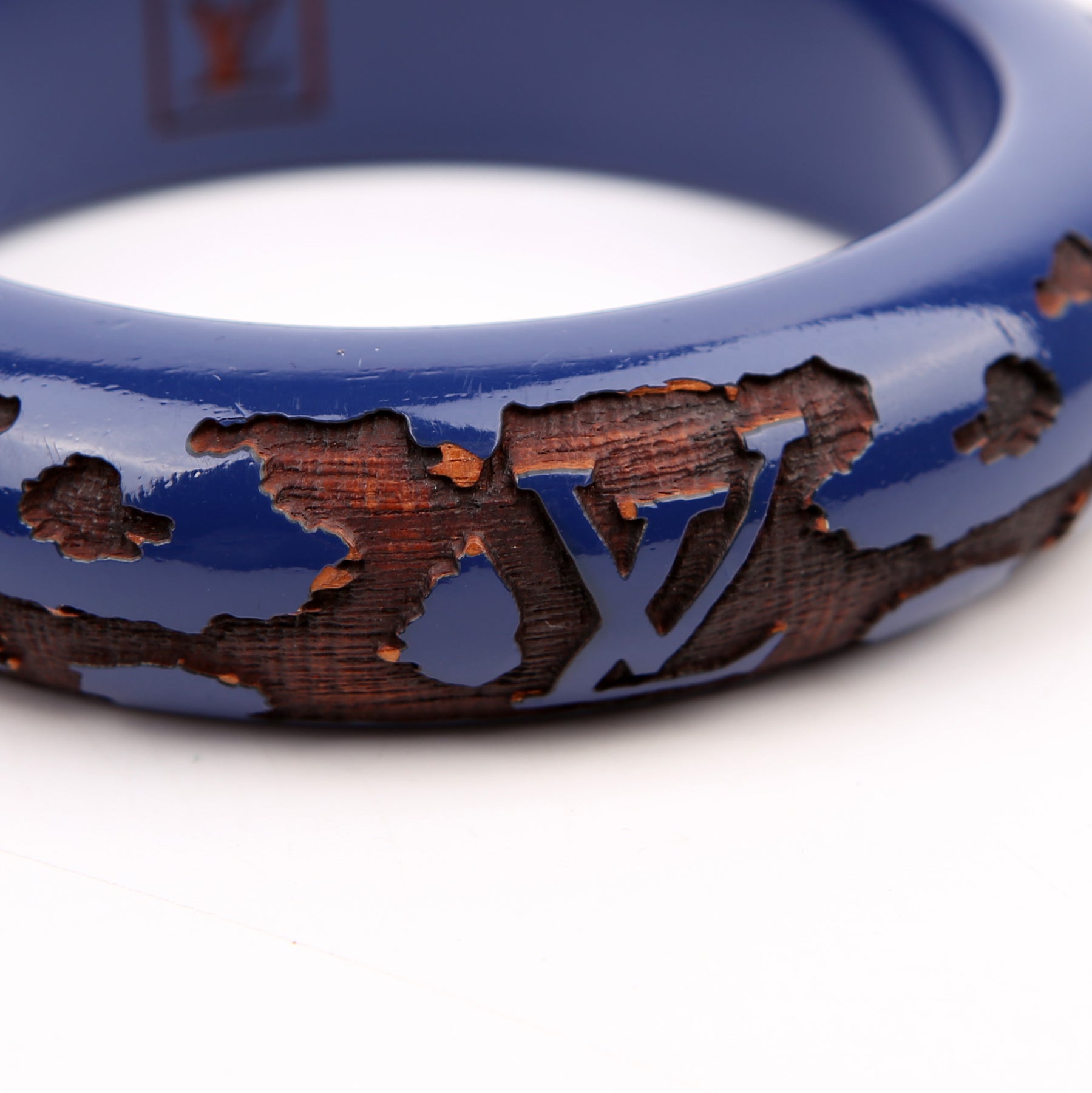 This pre-owned Louis Vuitton Leomonogram Lacquer/Wood Bangle Wide Bracelet is guaranteed 100% authentic.