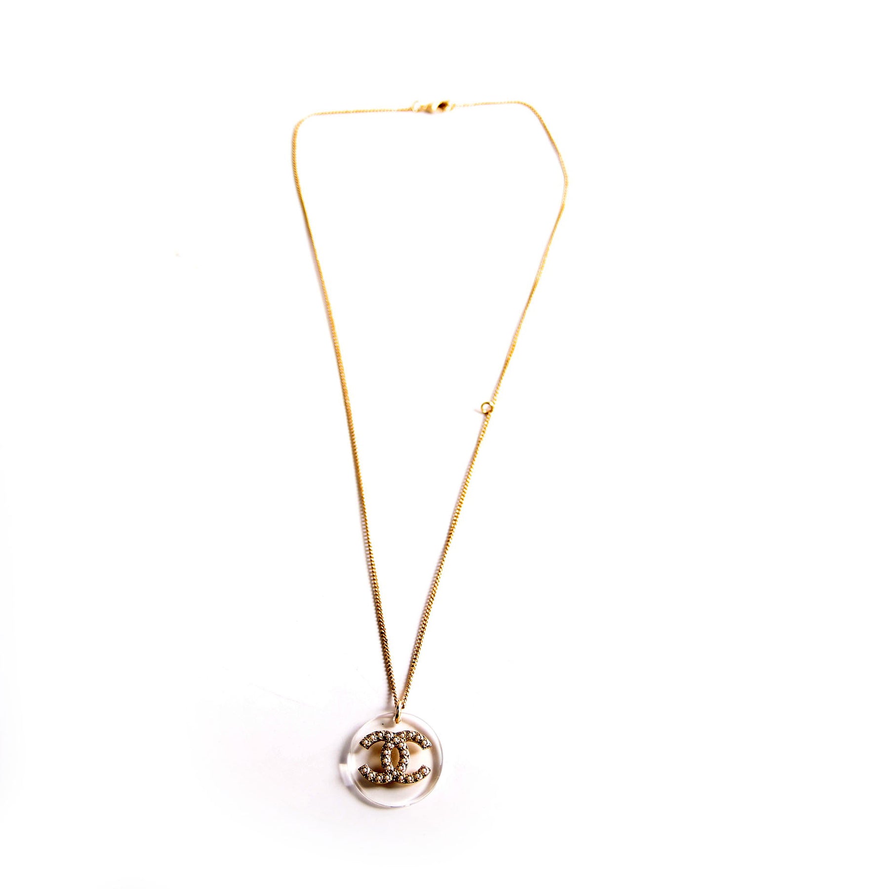 This pre-owned Chanel Clear Resin and Pearl CC Pendant Necklace is guaranteed 100% authentic.