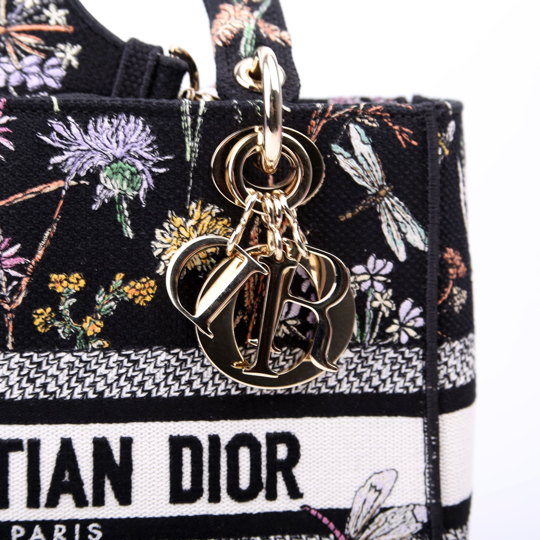 This pre-owned Christian Dior Lady D-Lite Medium is guaranteed 100% authentic. The exterior is in the classic Christian Dior Embroidered canvas.